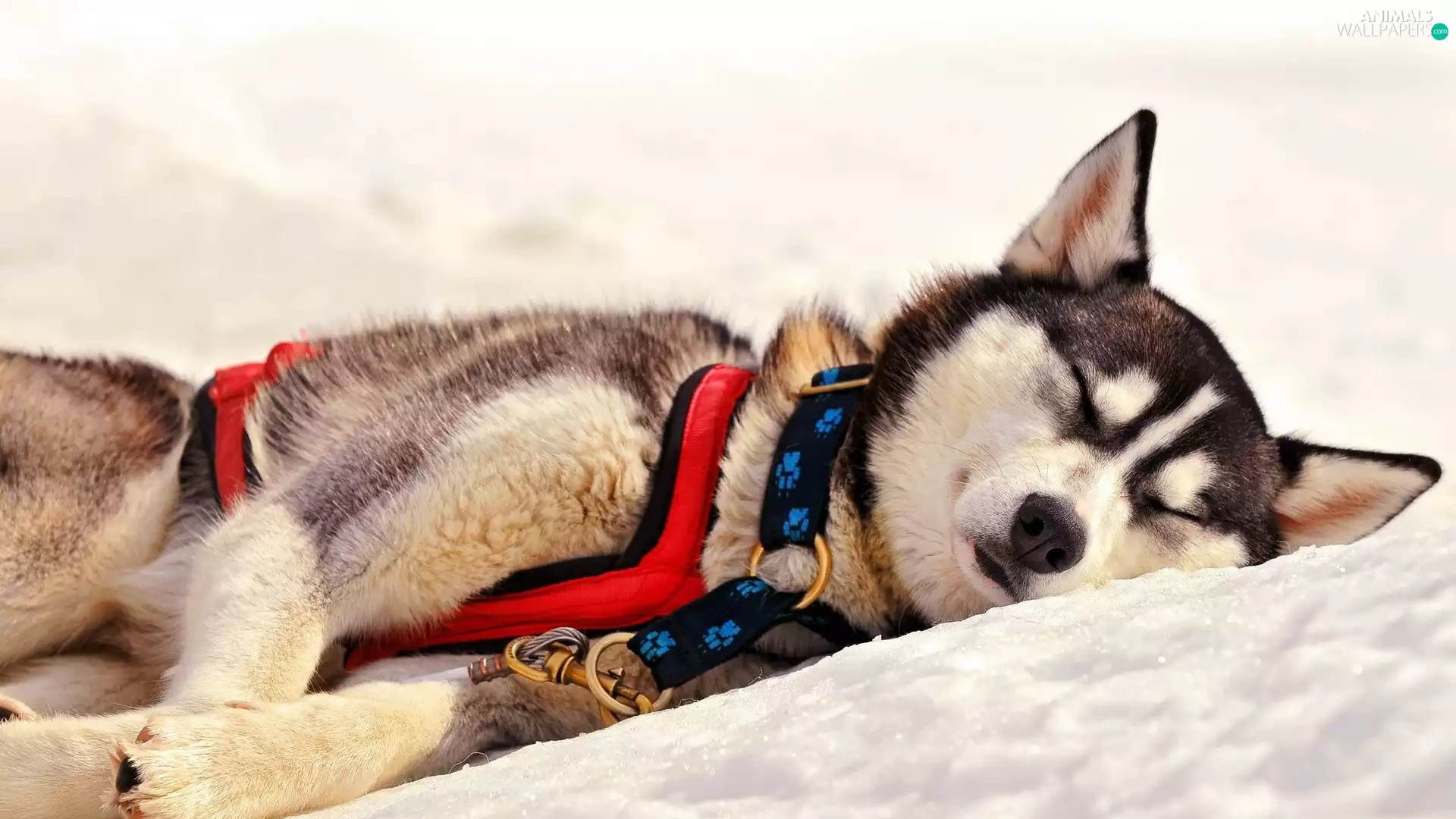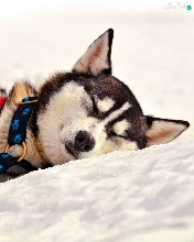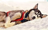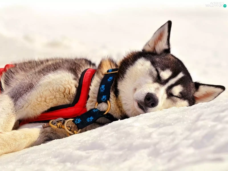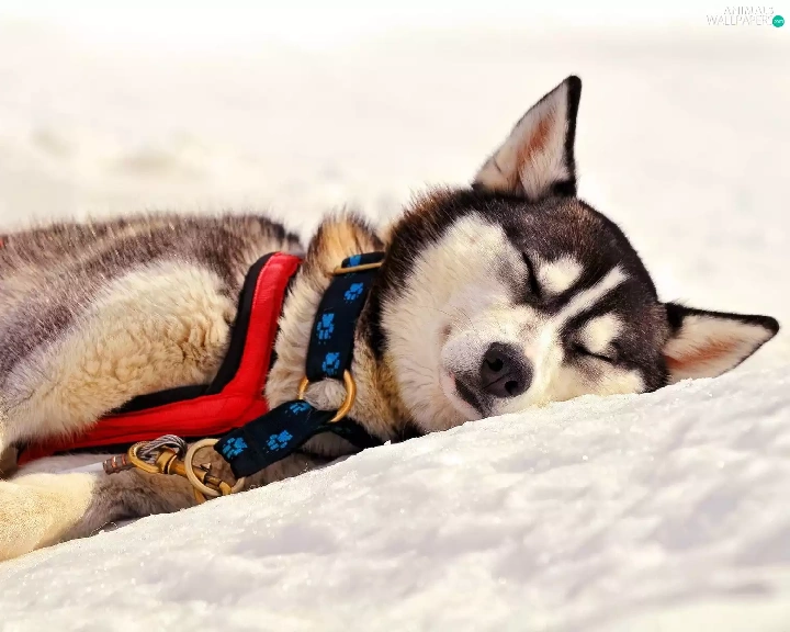 resting, Husky, snow