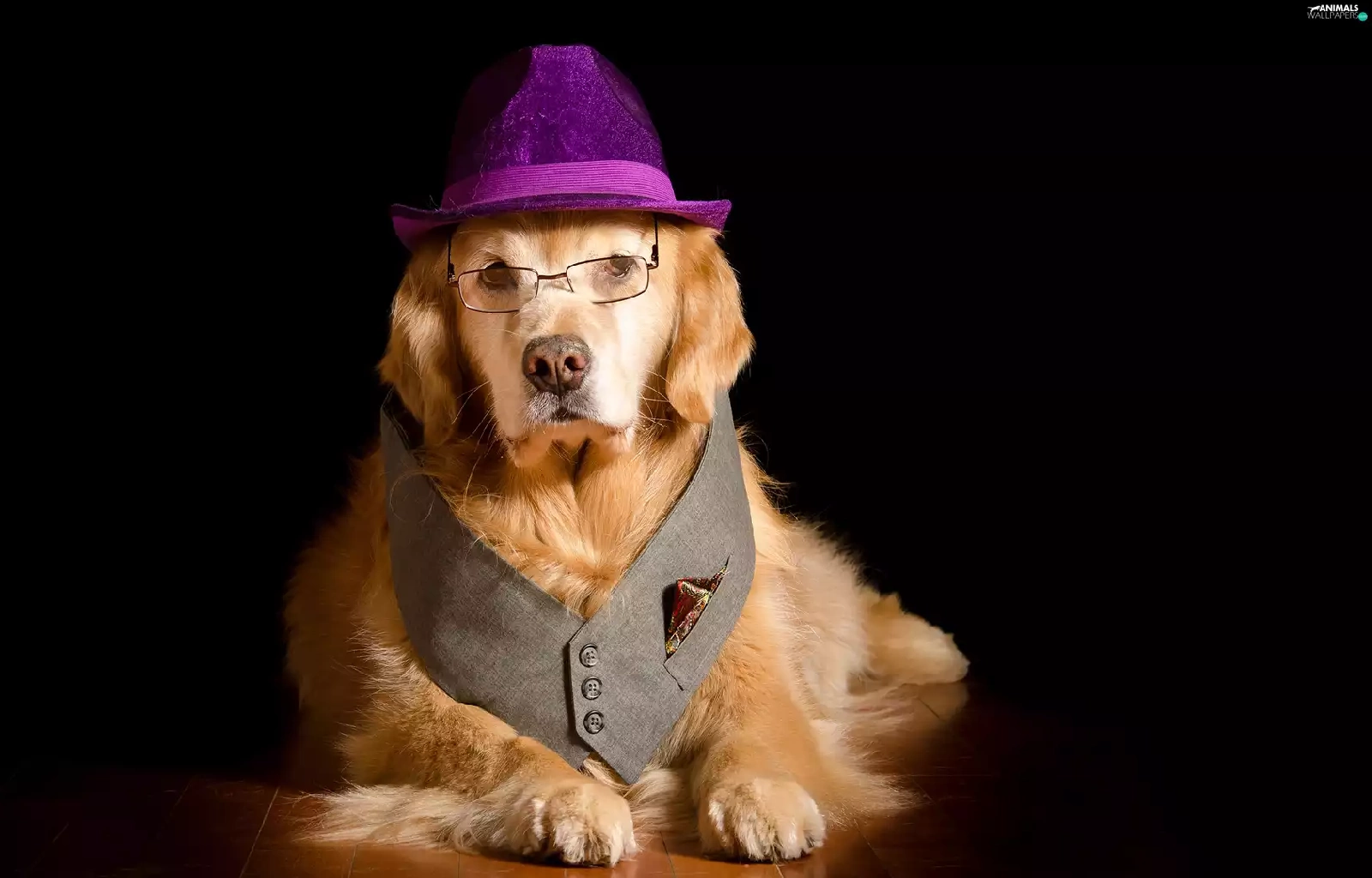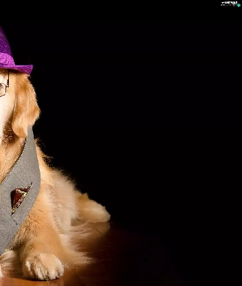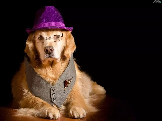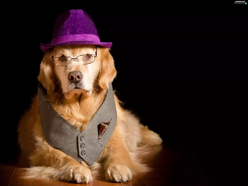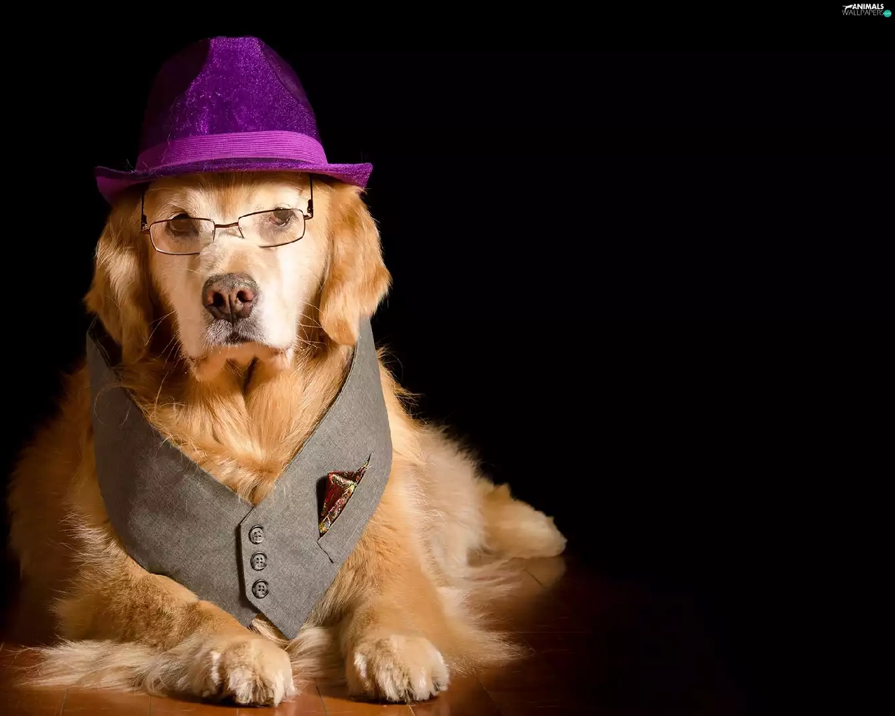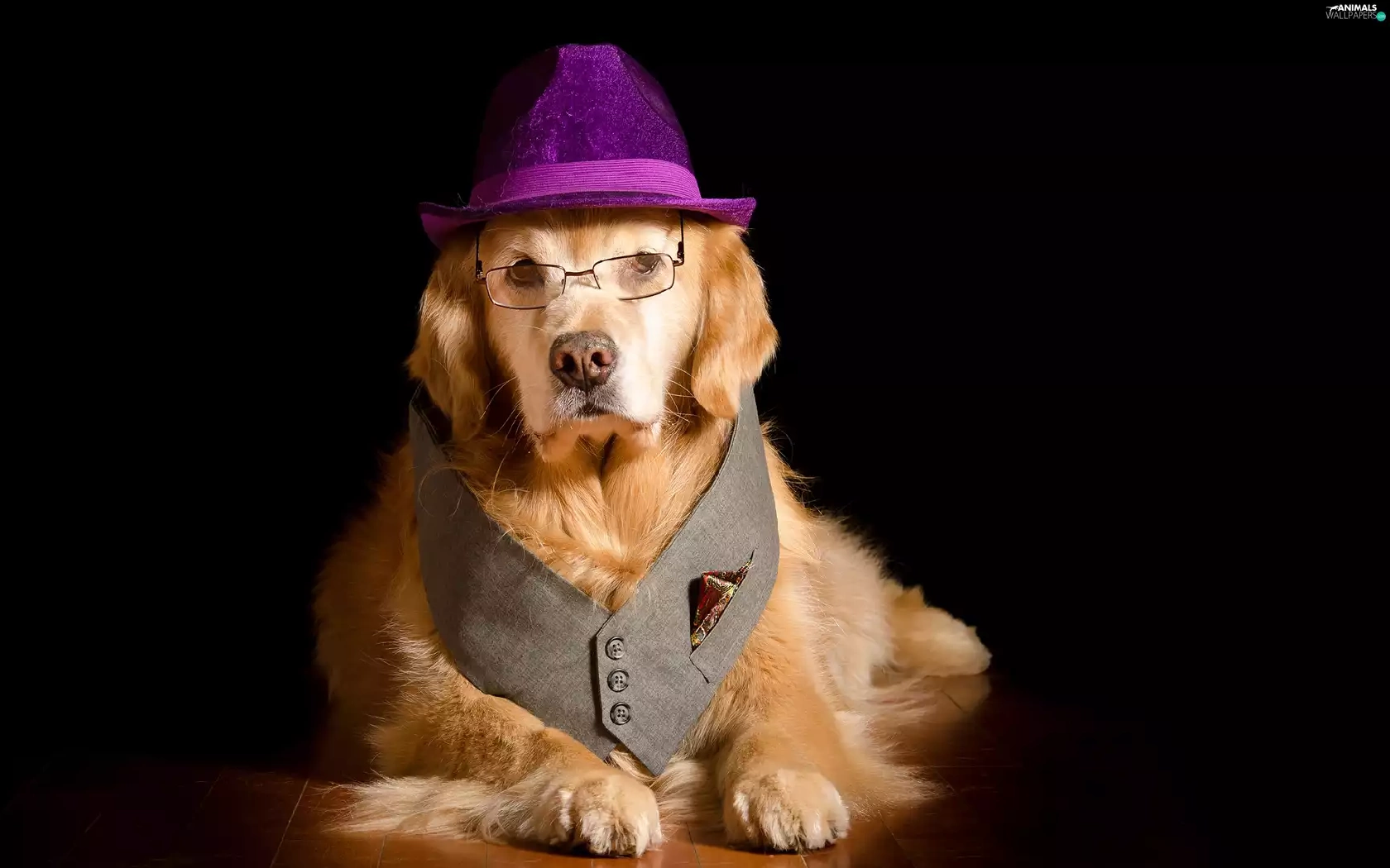 Glasses, waistcoat, Golden Retriever, Hat, dog