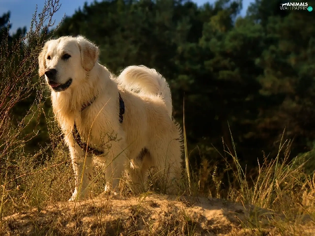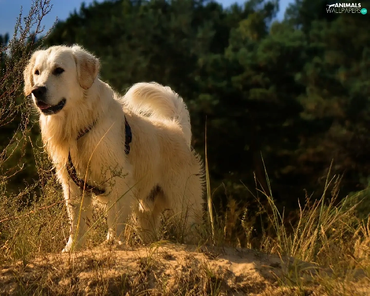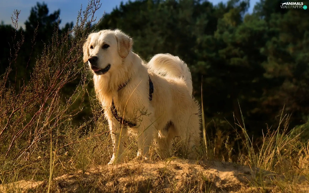 grass, Plants, Golden Retriever, braces, dog