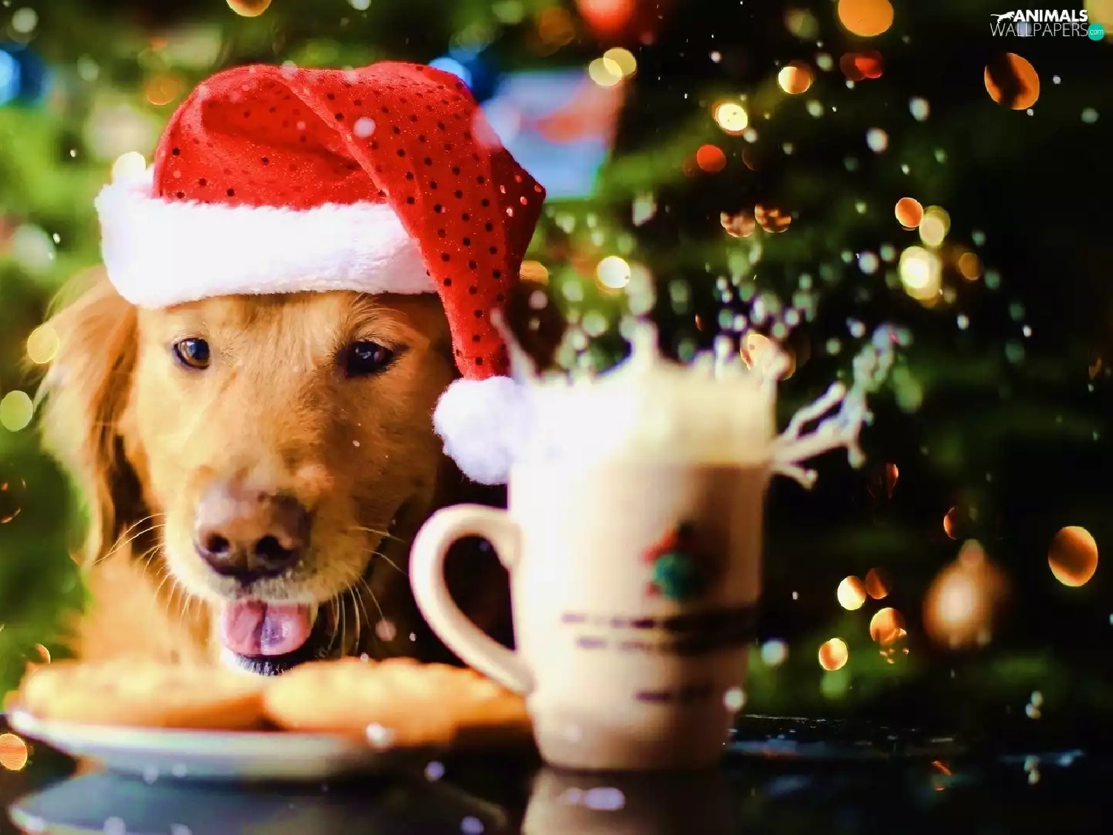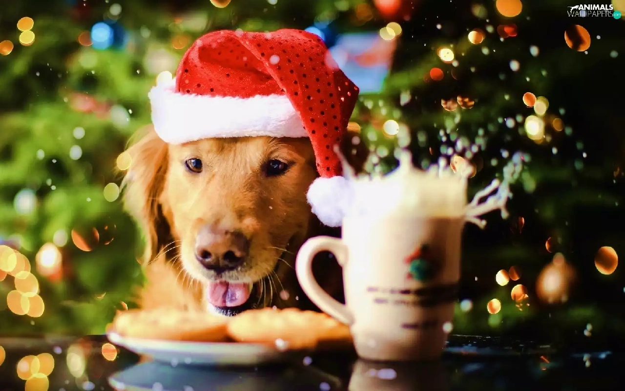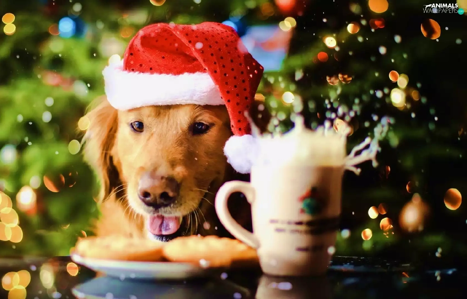 Nicholas, Cup, Golden Retriever, Hat, dog