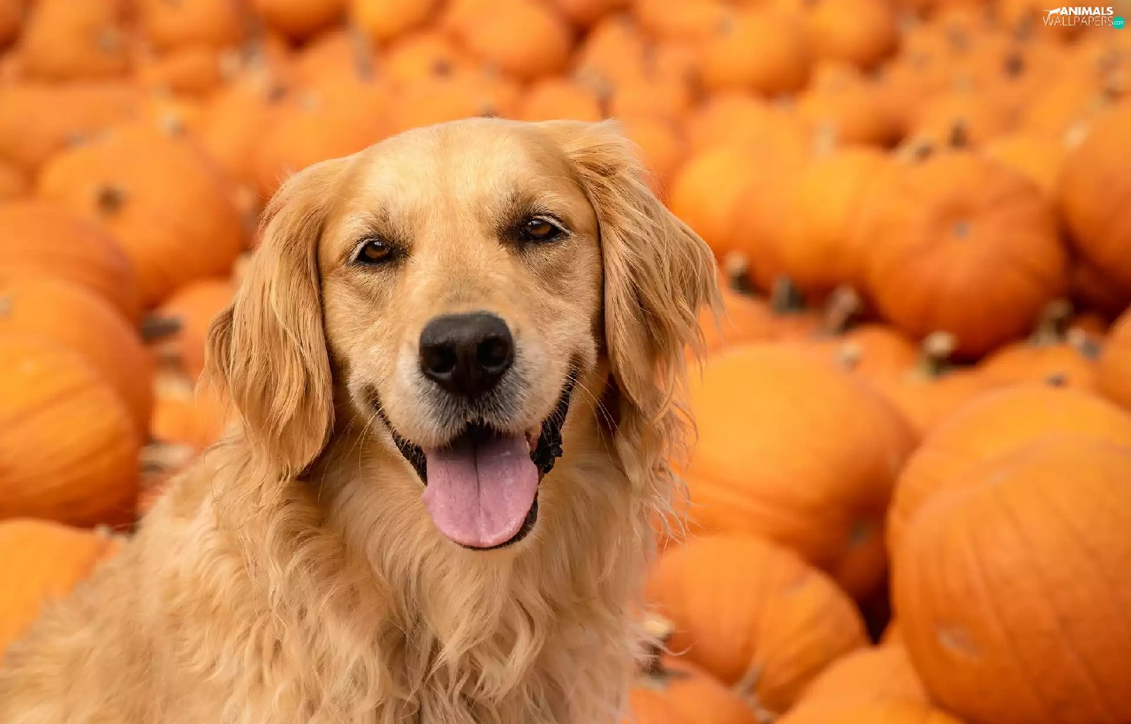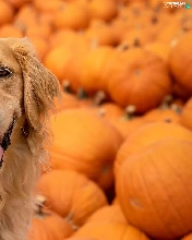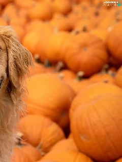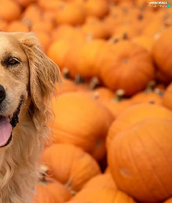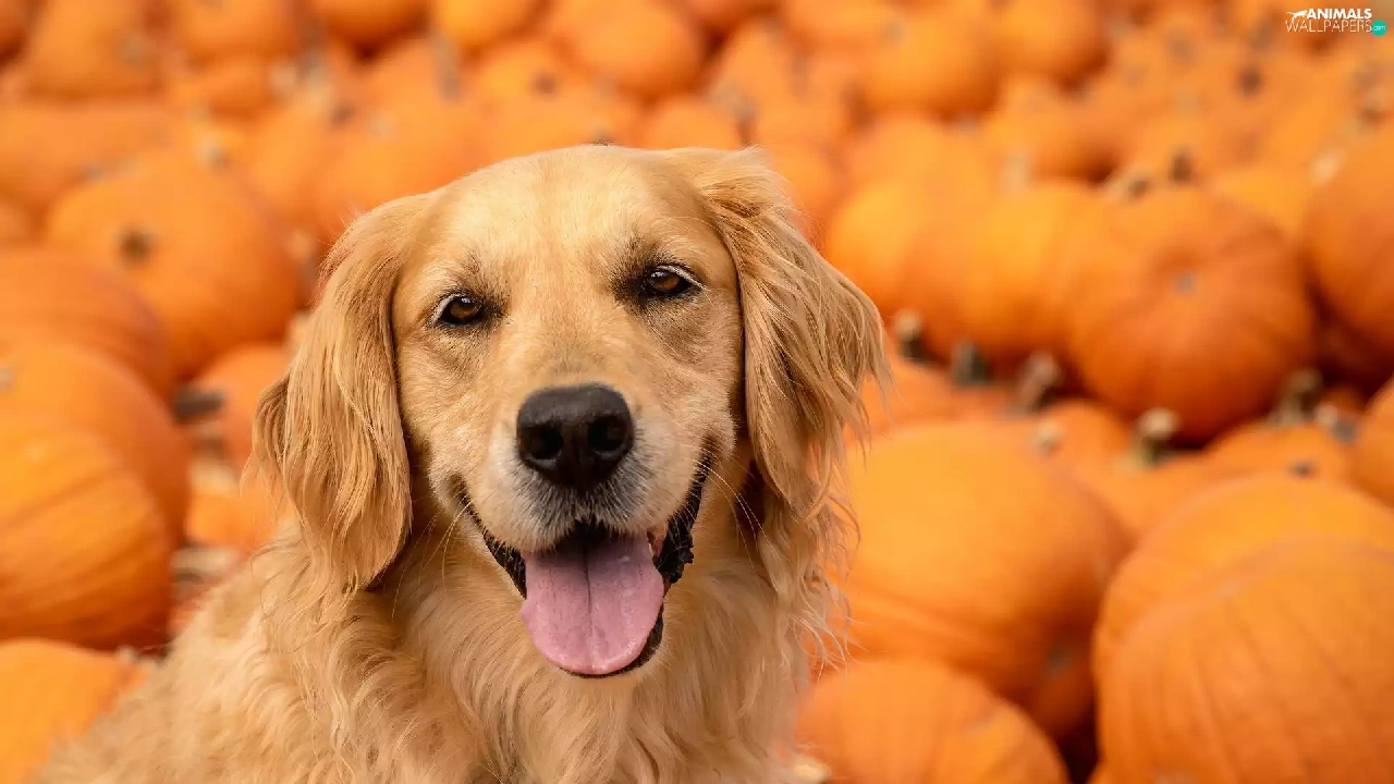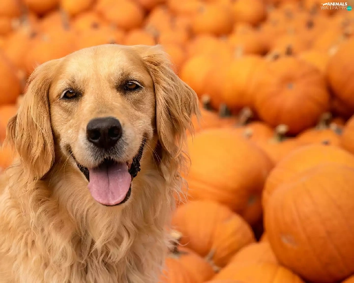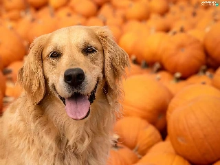 pumpkin, dog, Golden Retriever