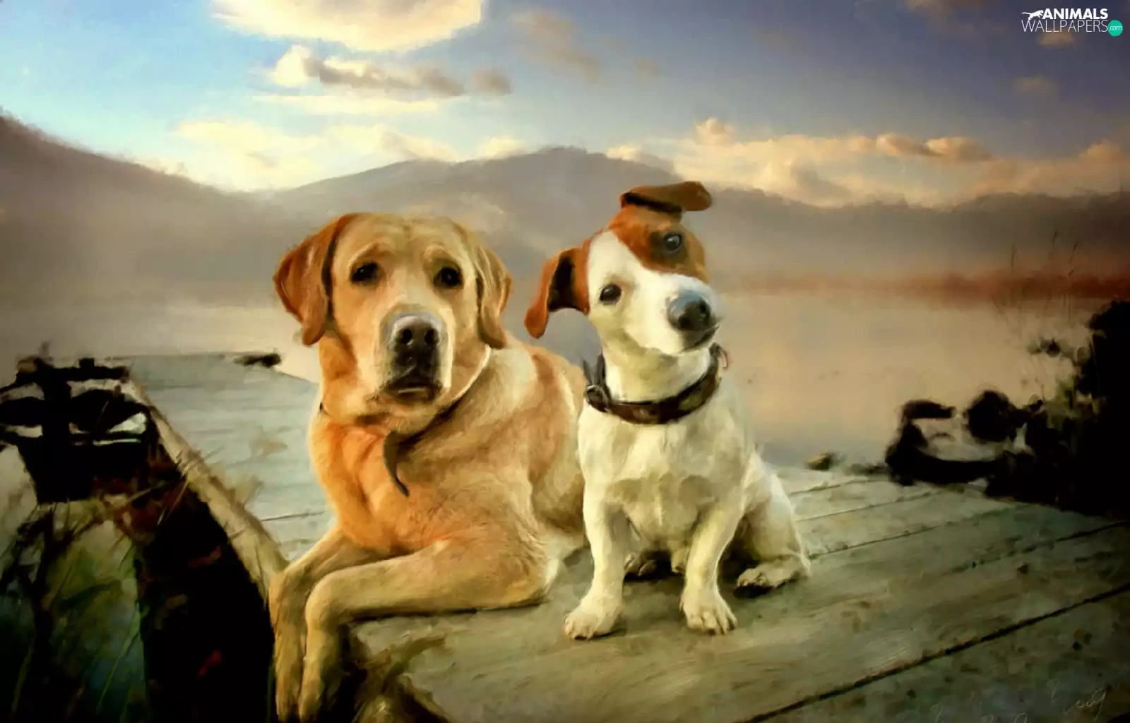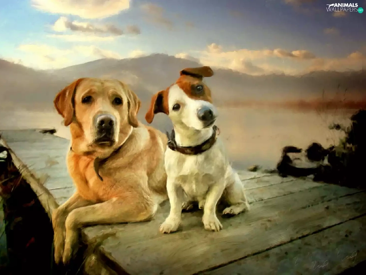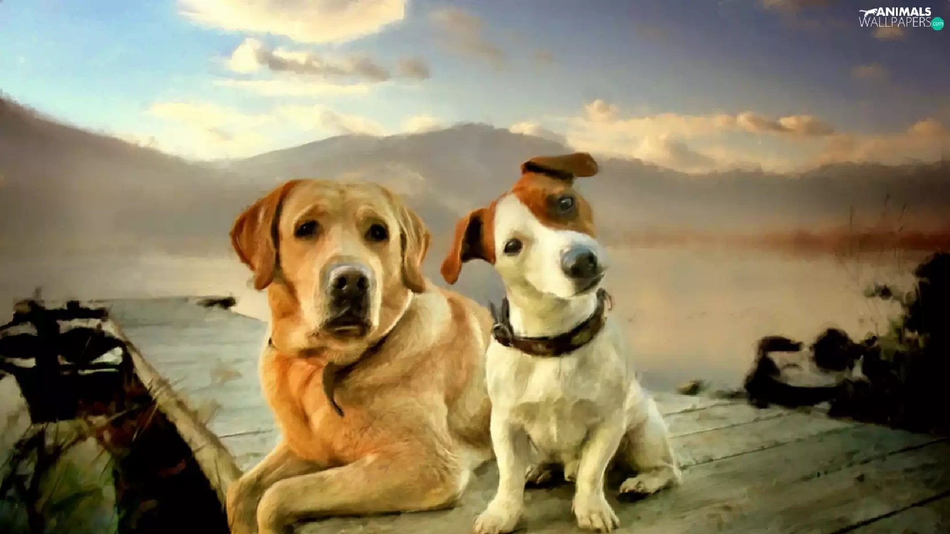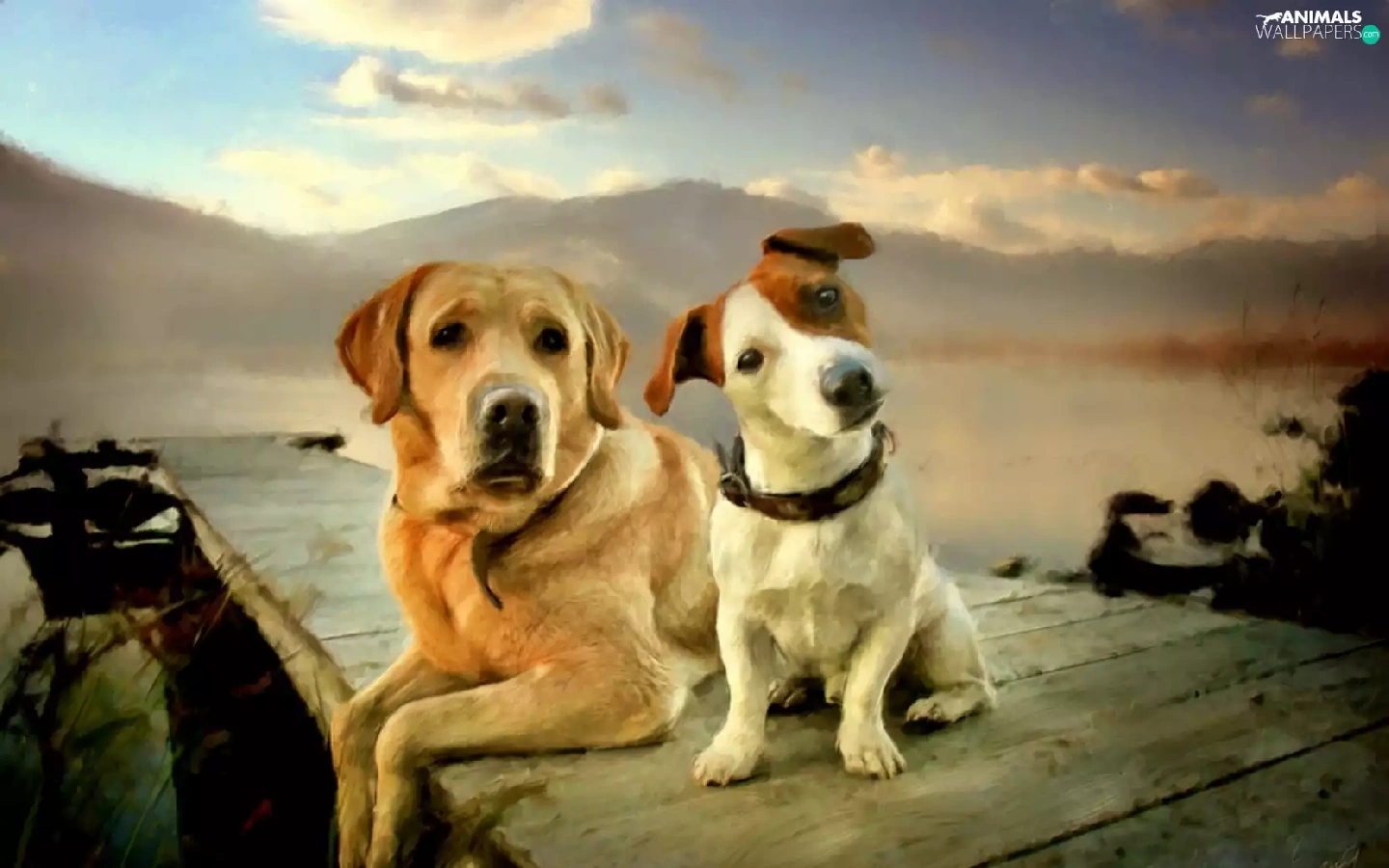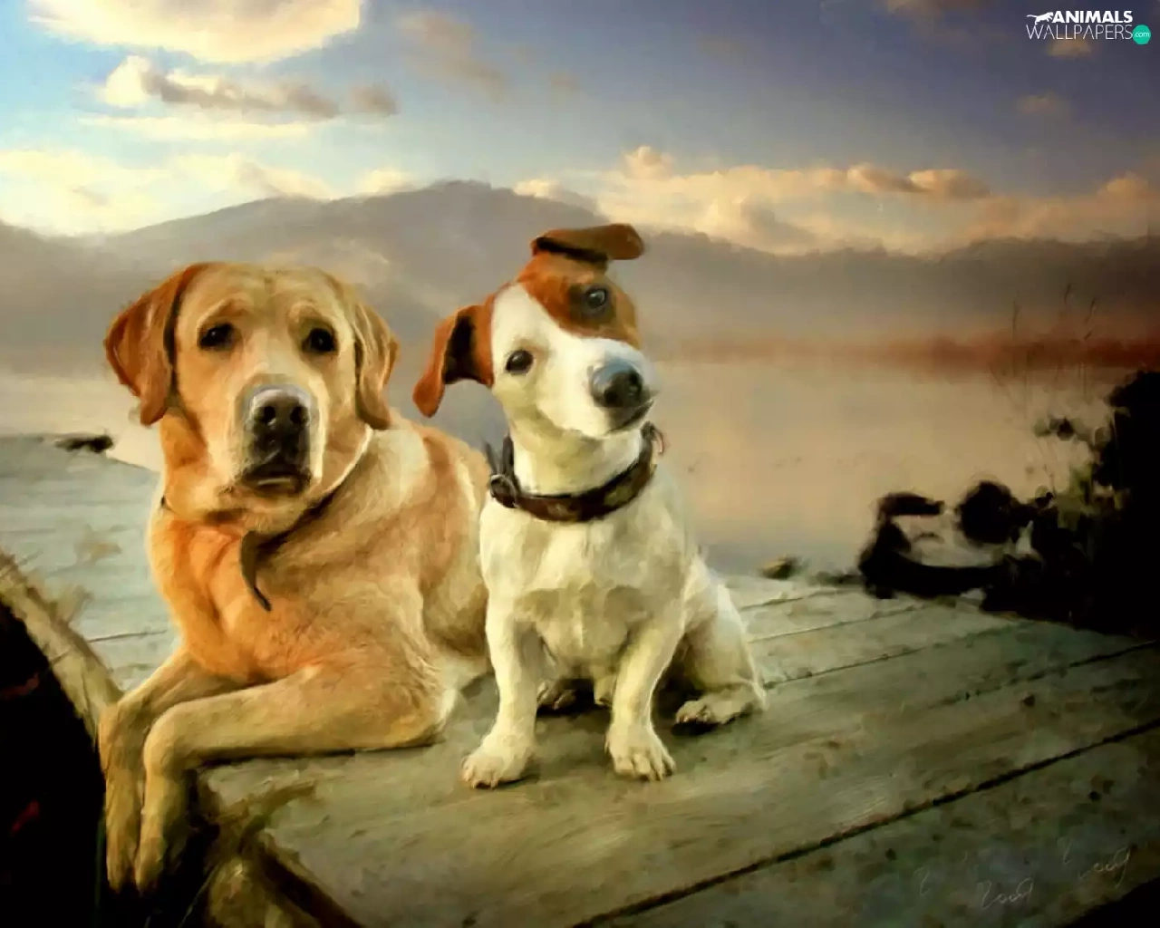 Labrador Retriever, Two cars, Dogs