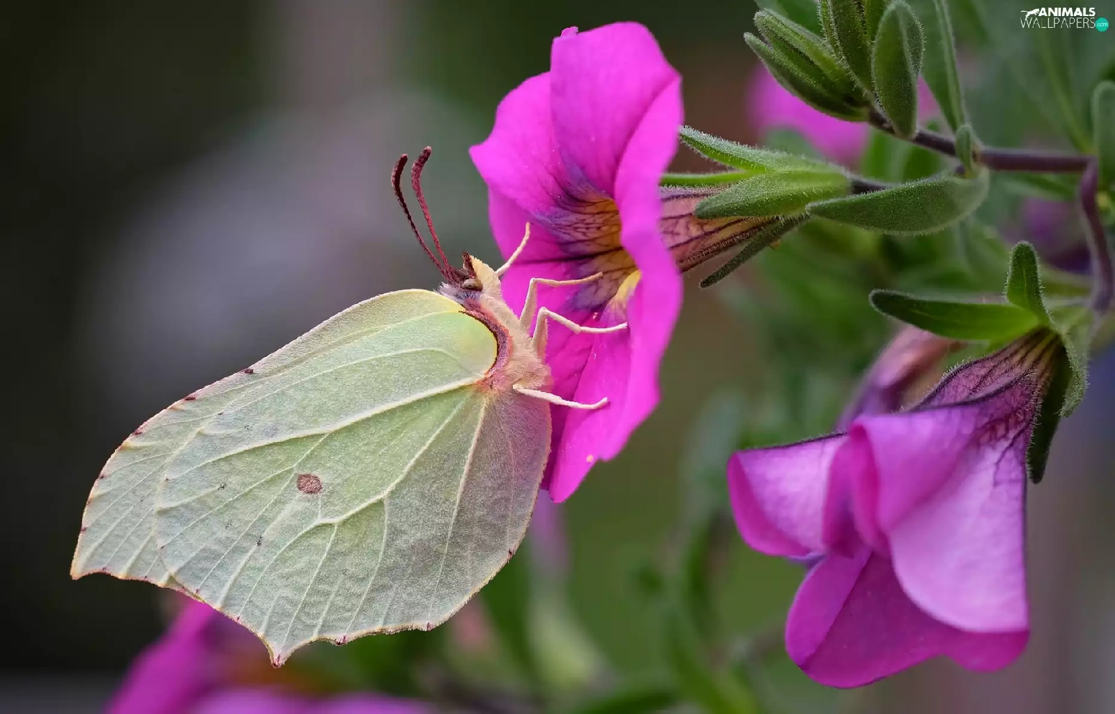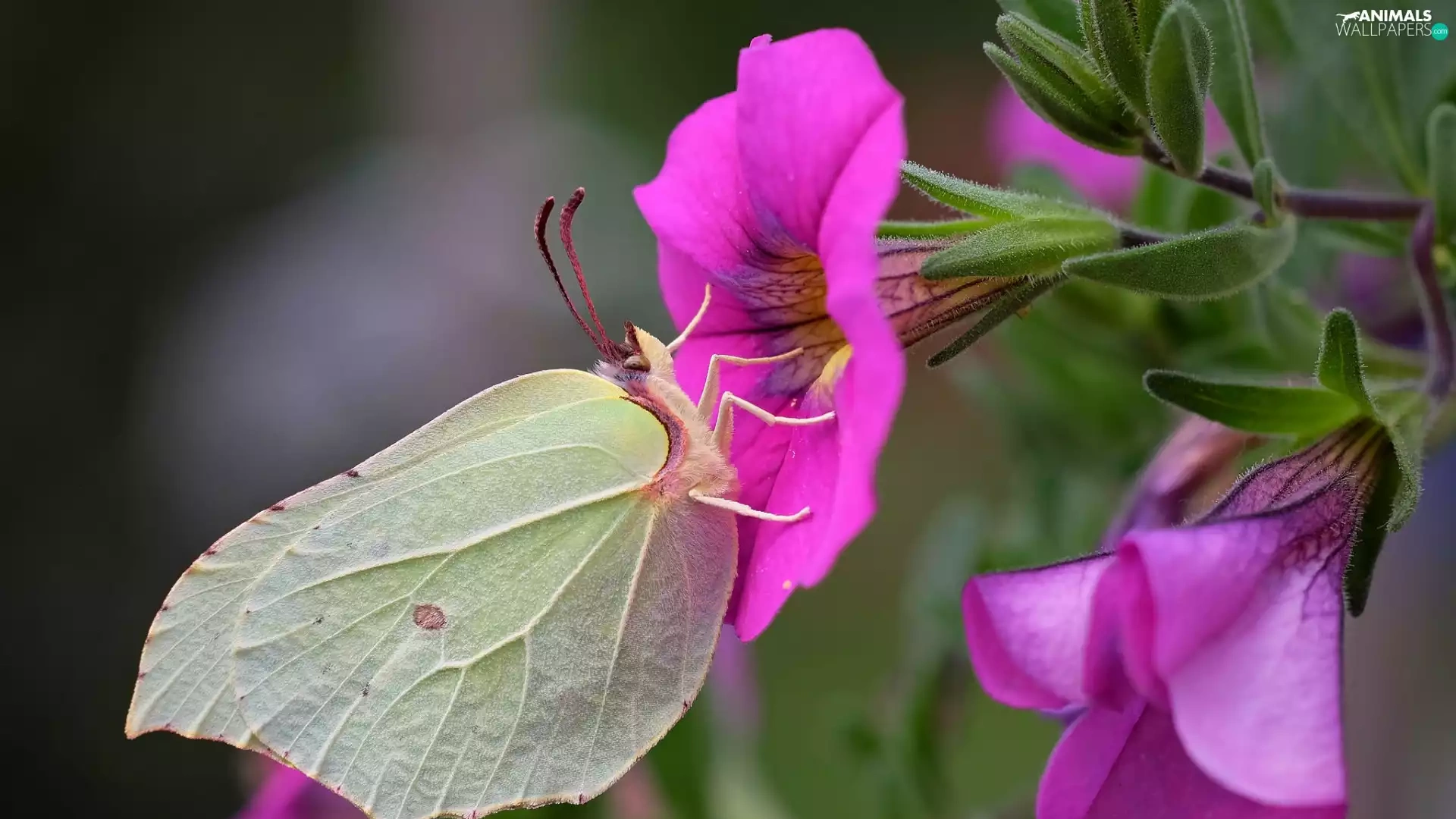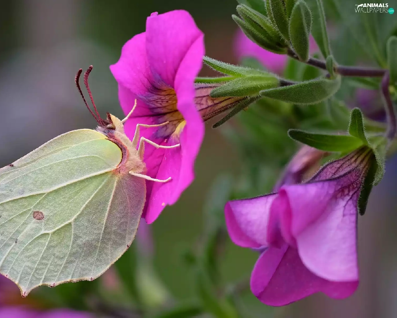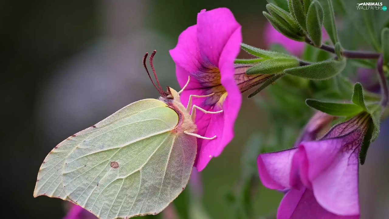 Pink, petunias, Gonepteryx rhamni, Flowers, butterfly