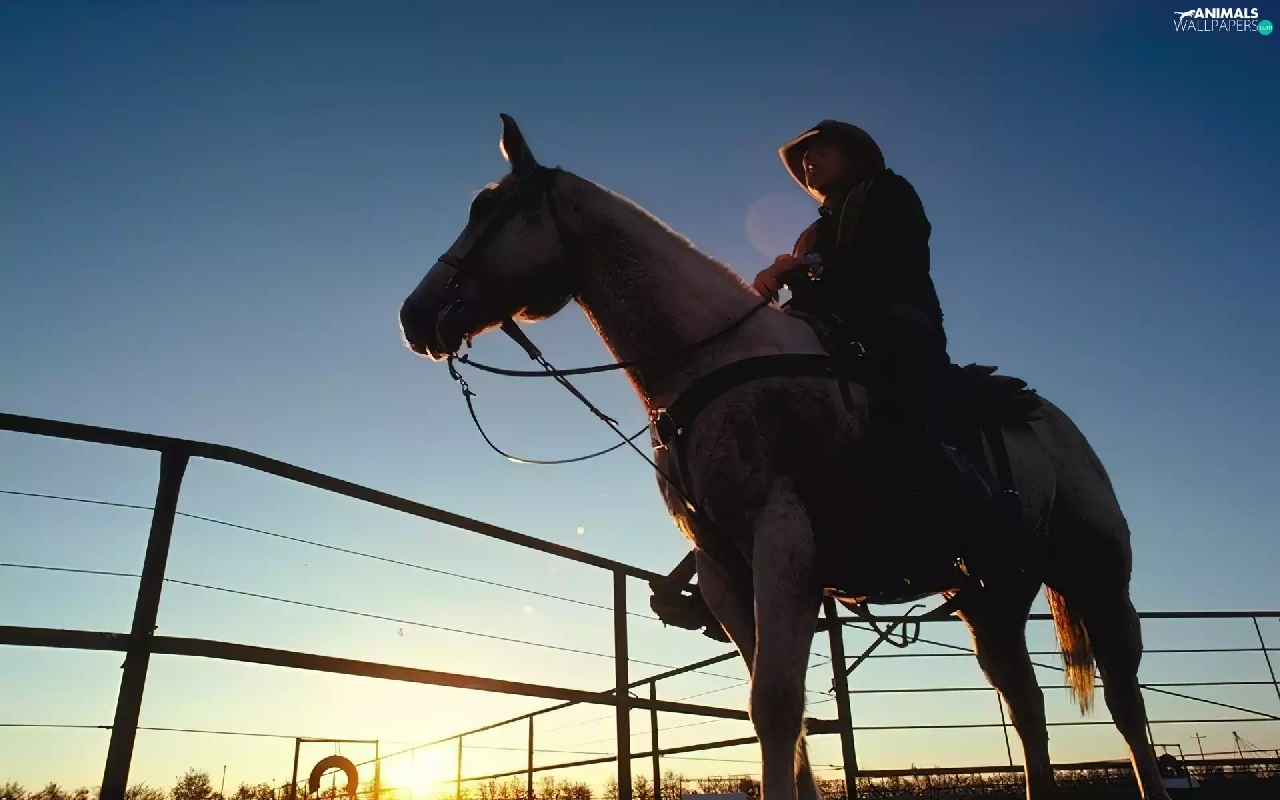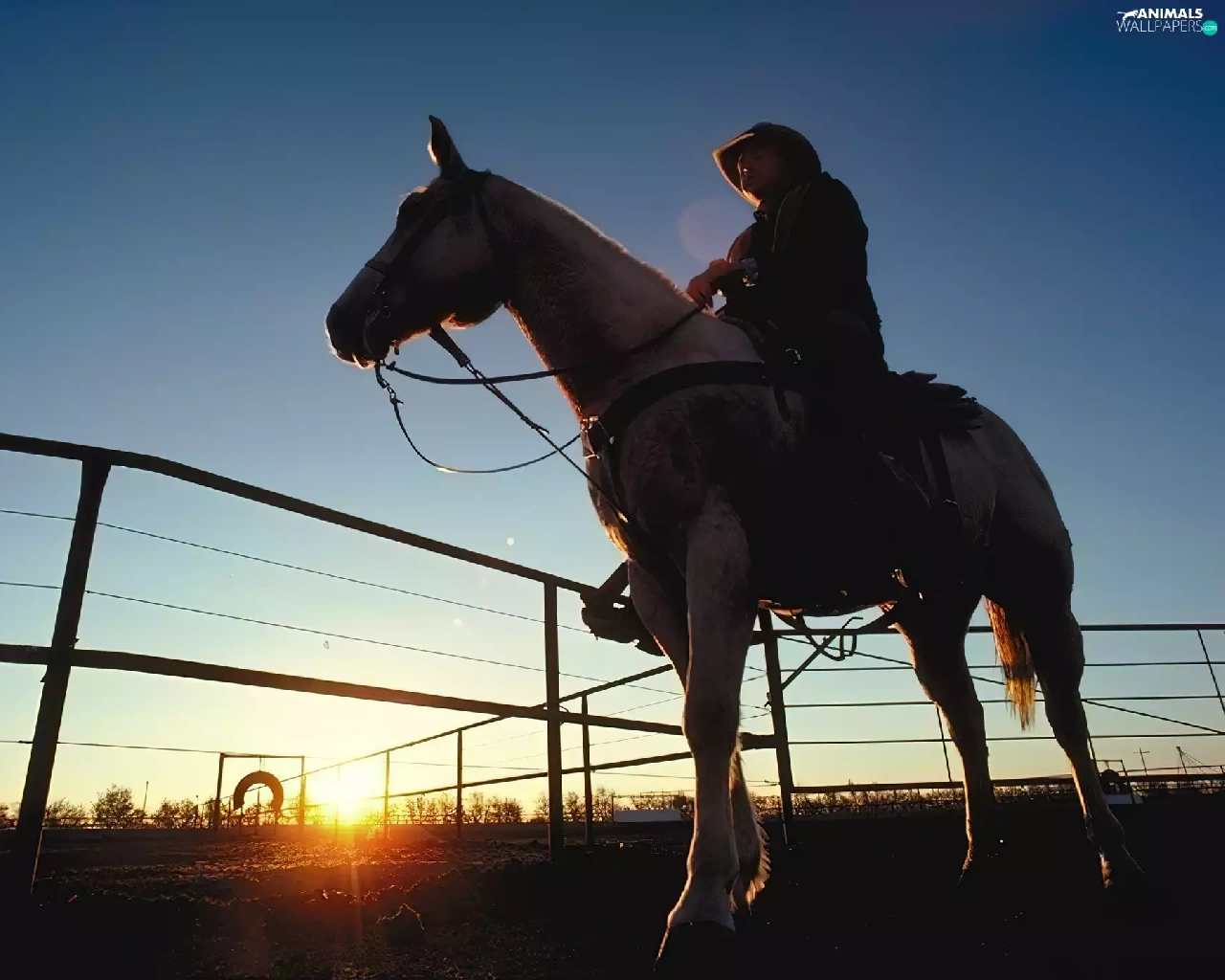 Horse, sun, west, rider