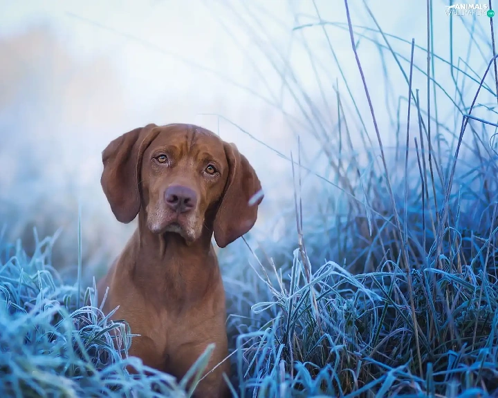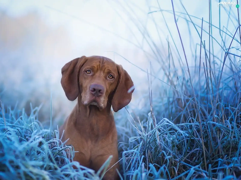 rime, Vizsla, grass