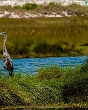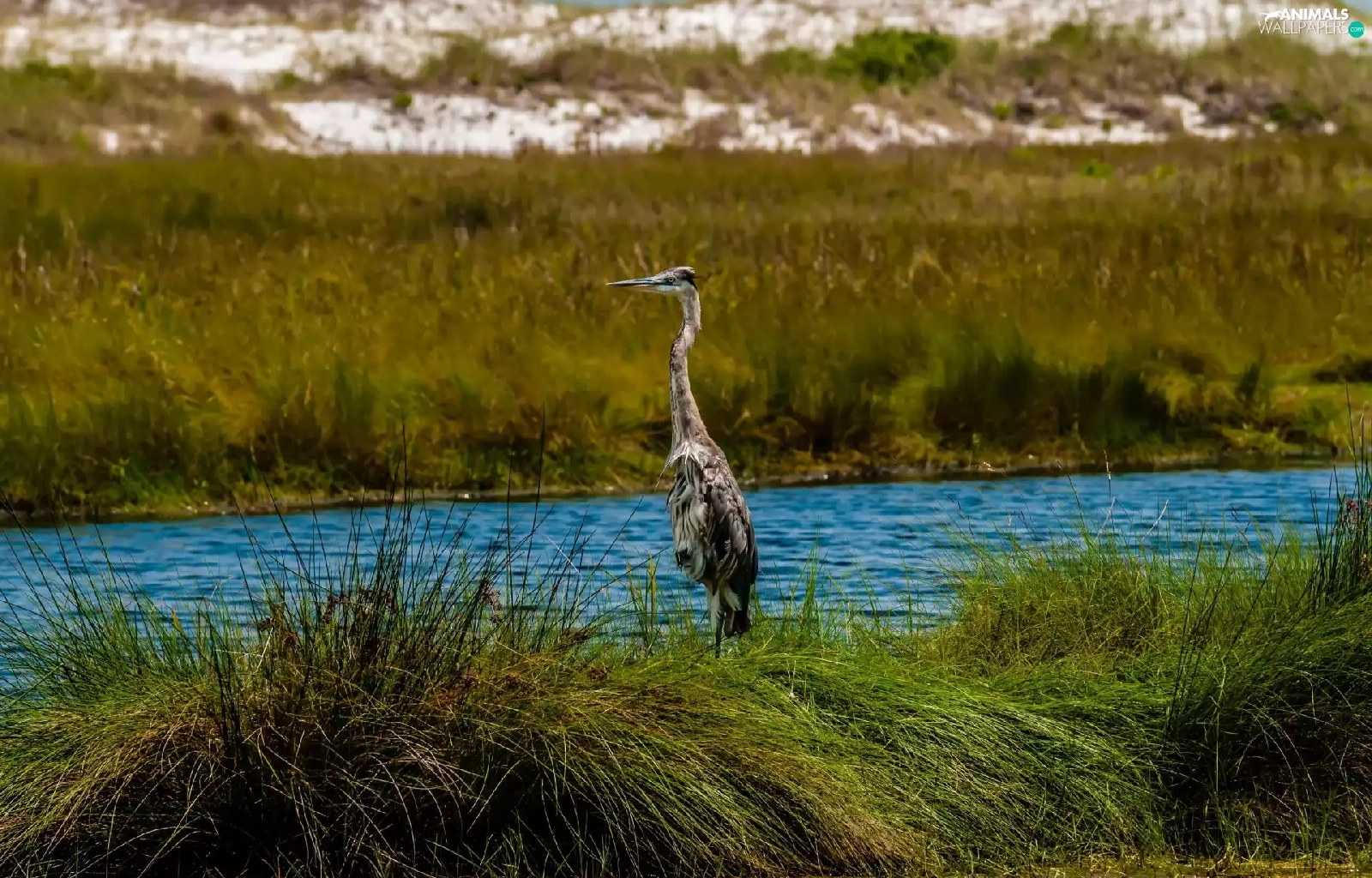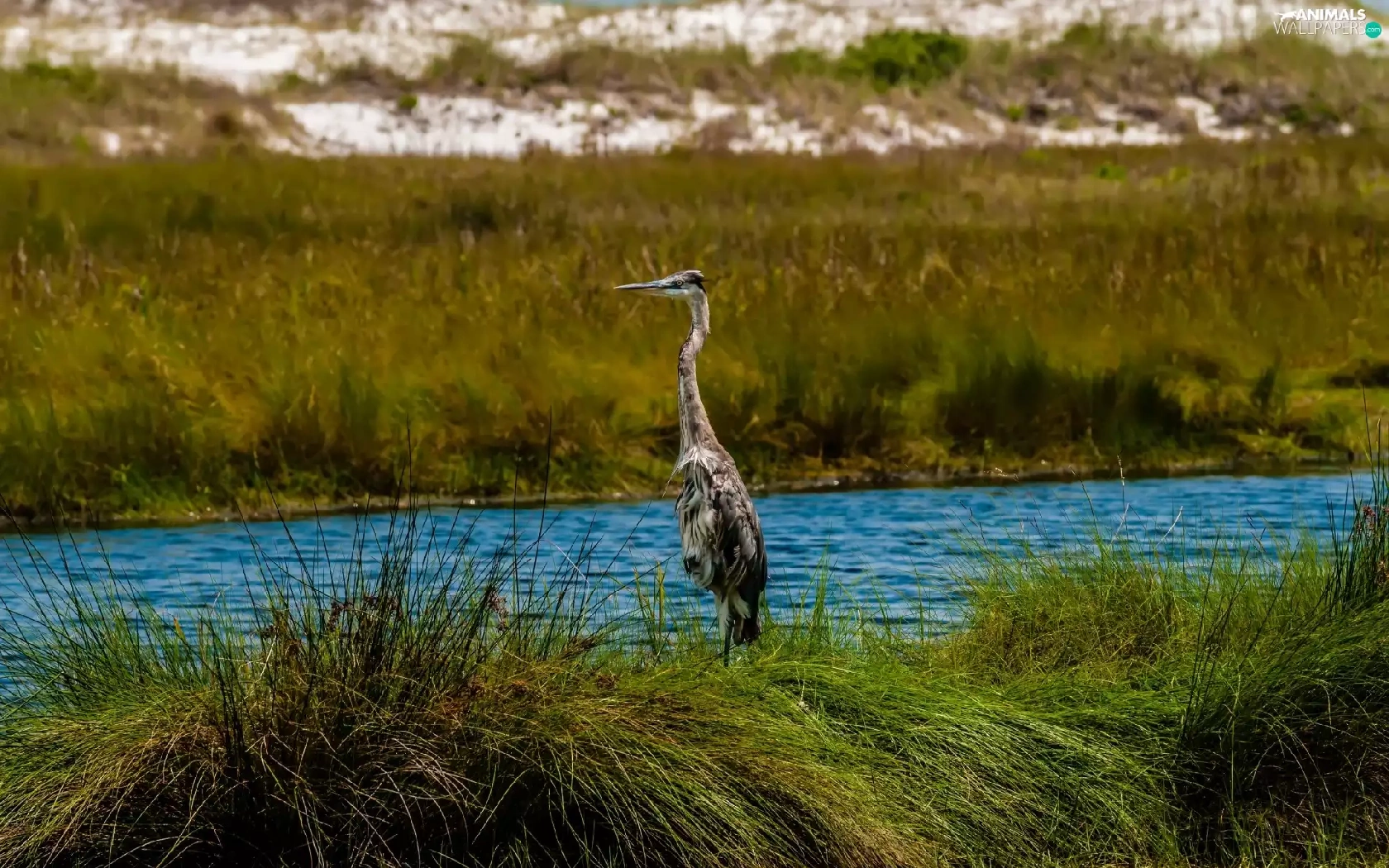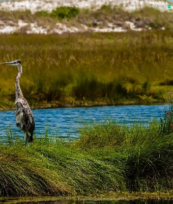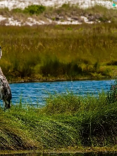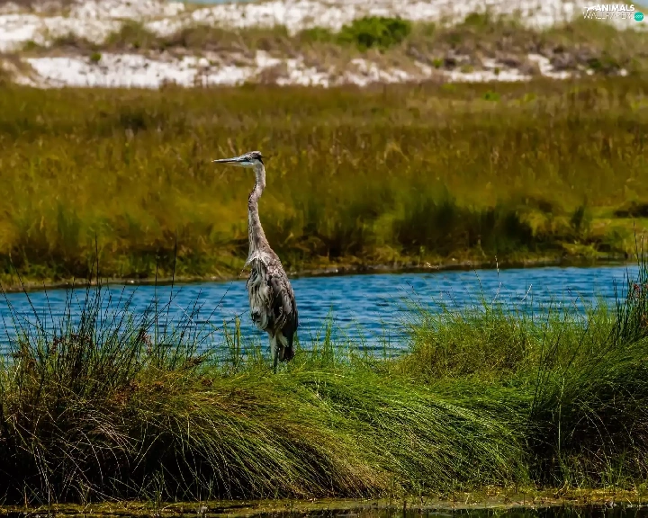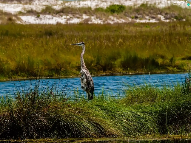 River, heron, grass