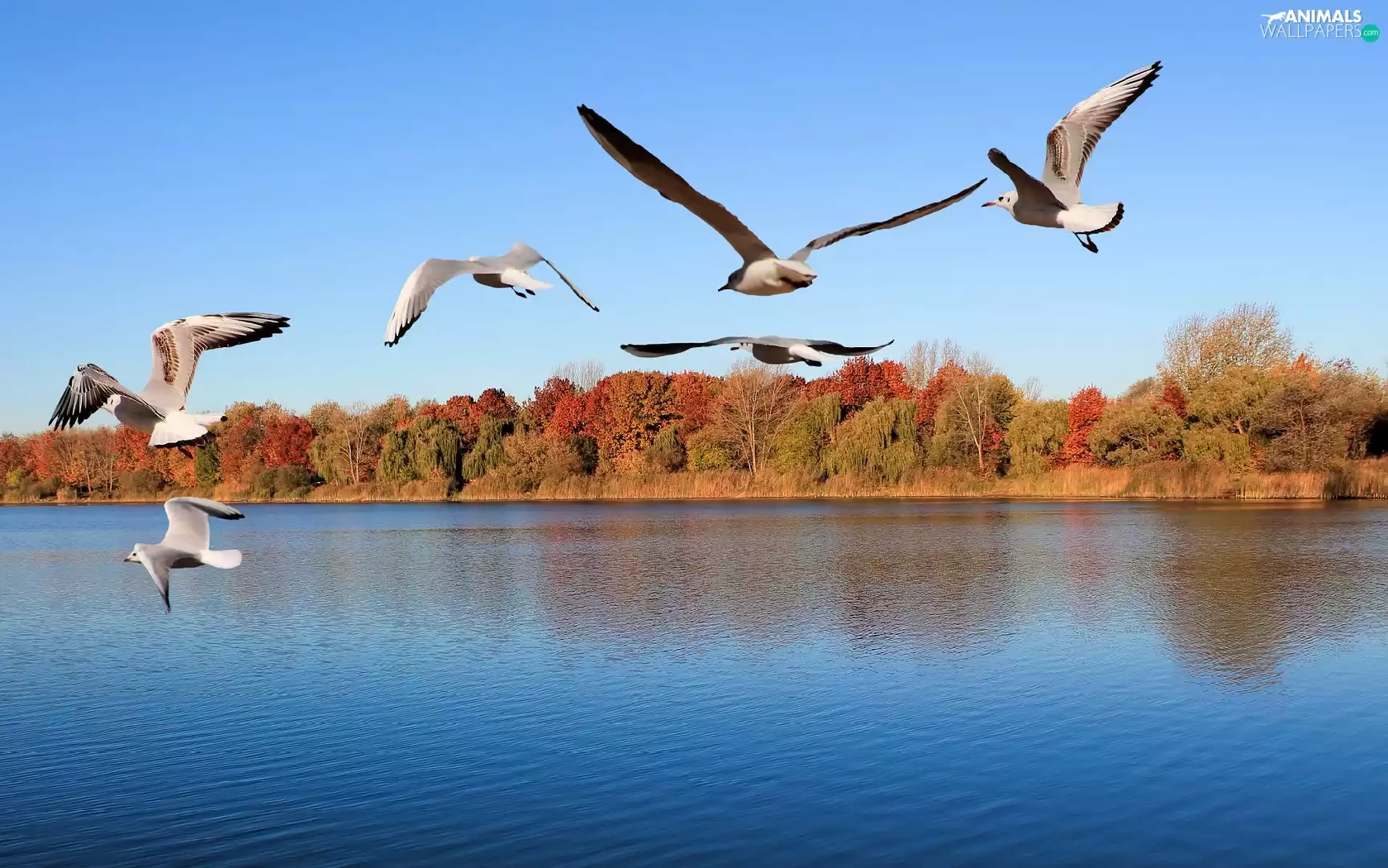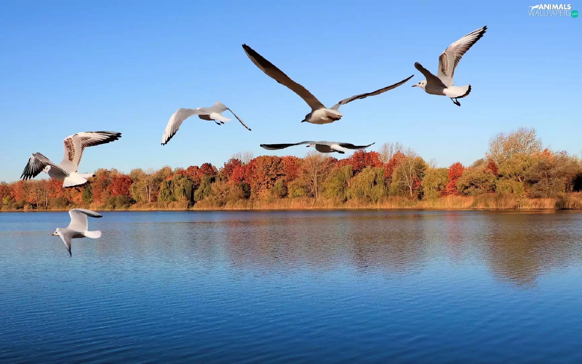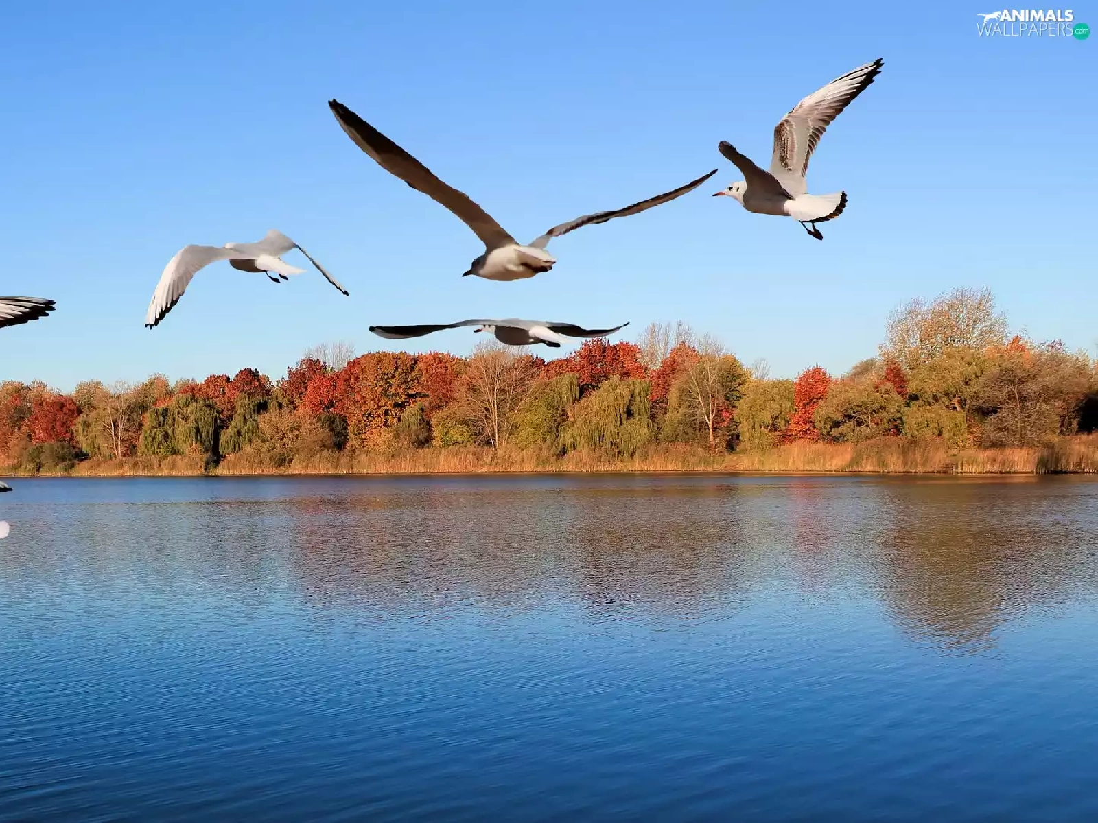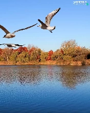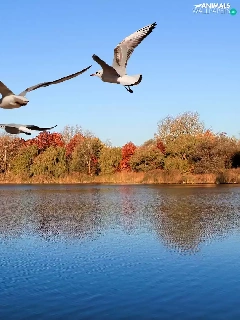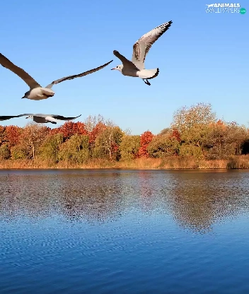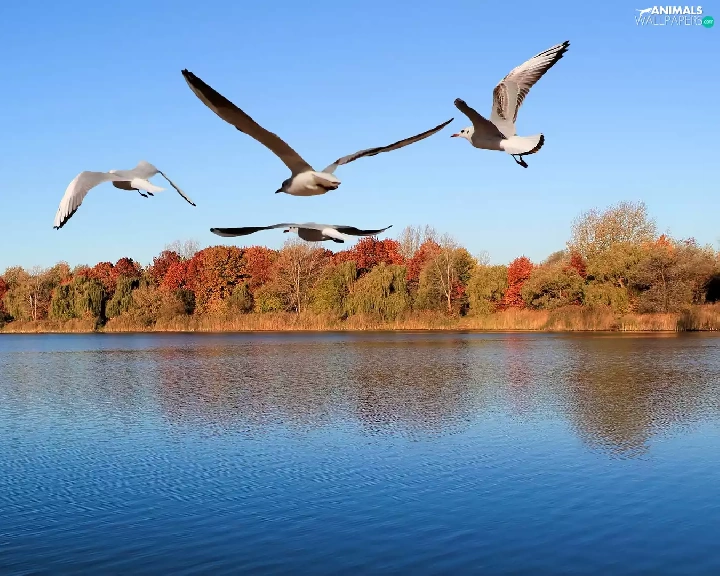 gulls, trees, viewes, River