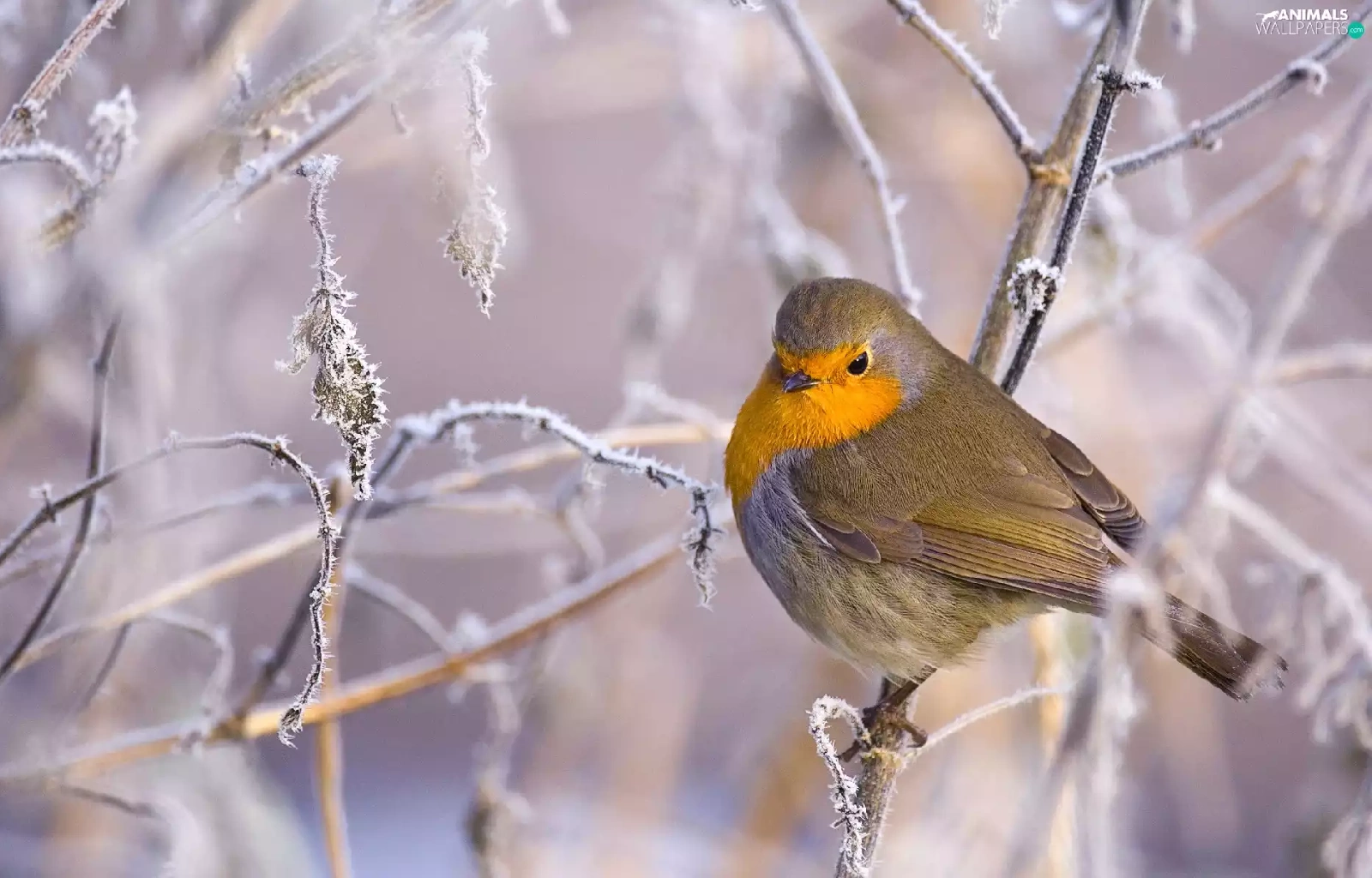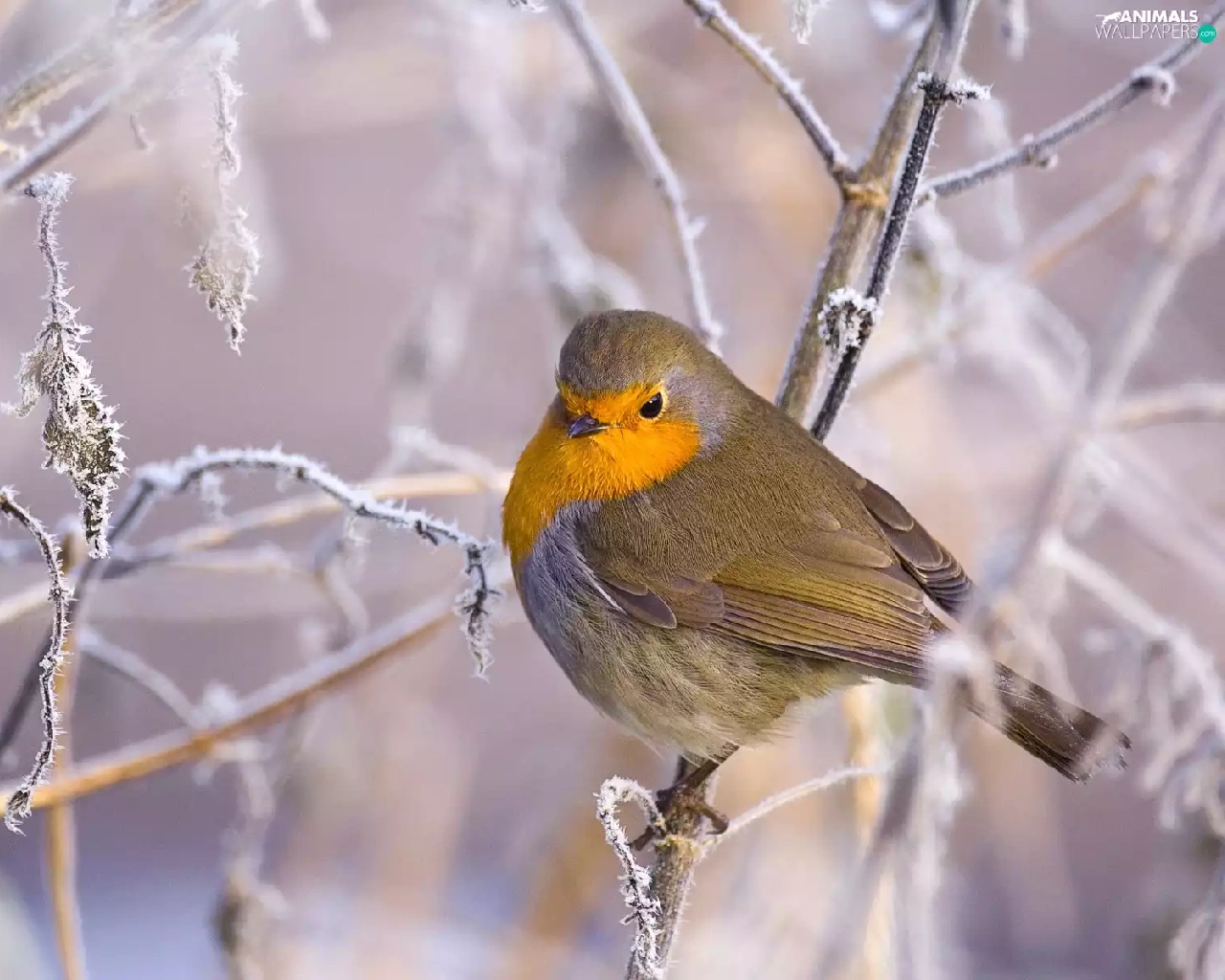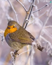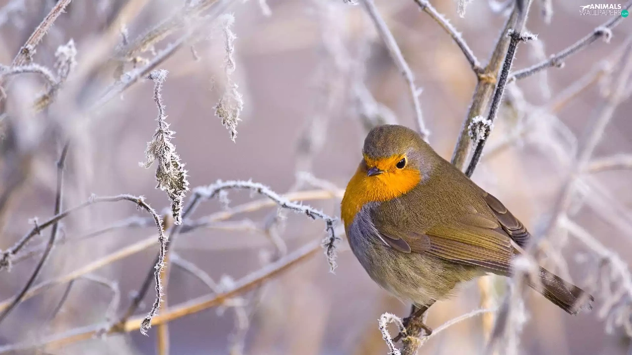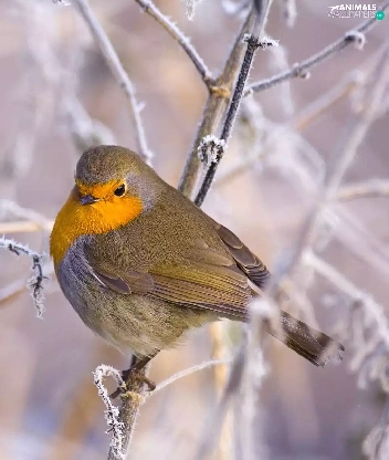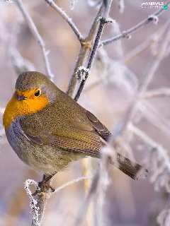 Bird, frosty, Twigs, robin