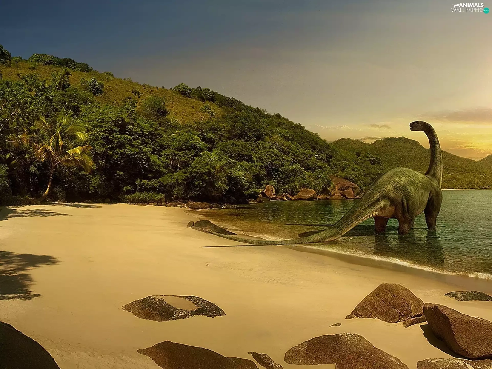 rocks, Coast, dinosaur