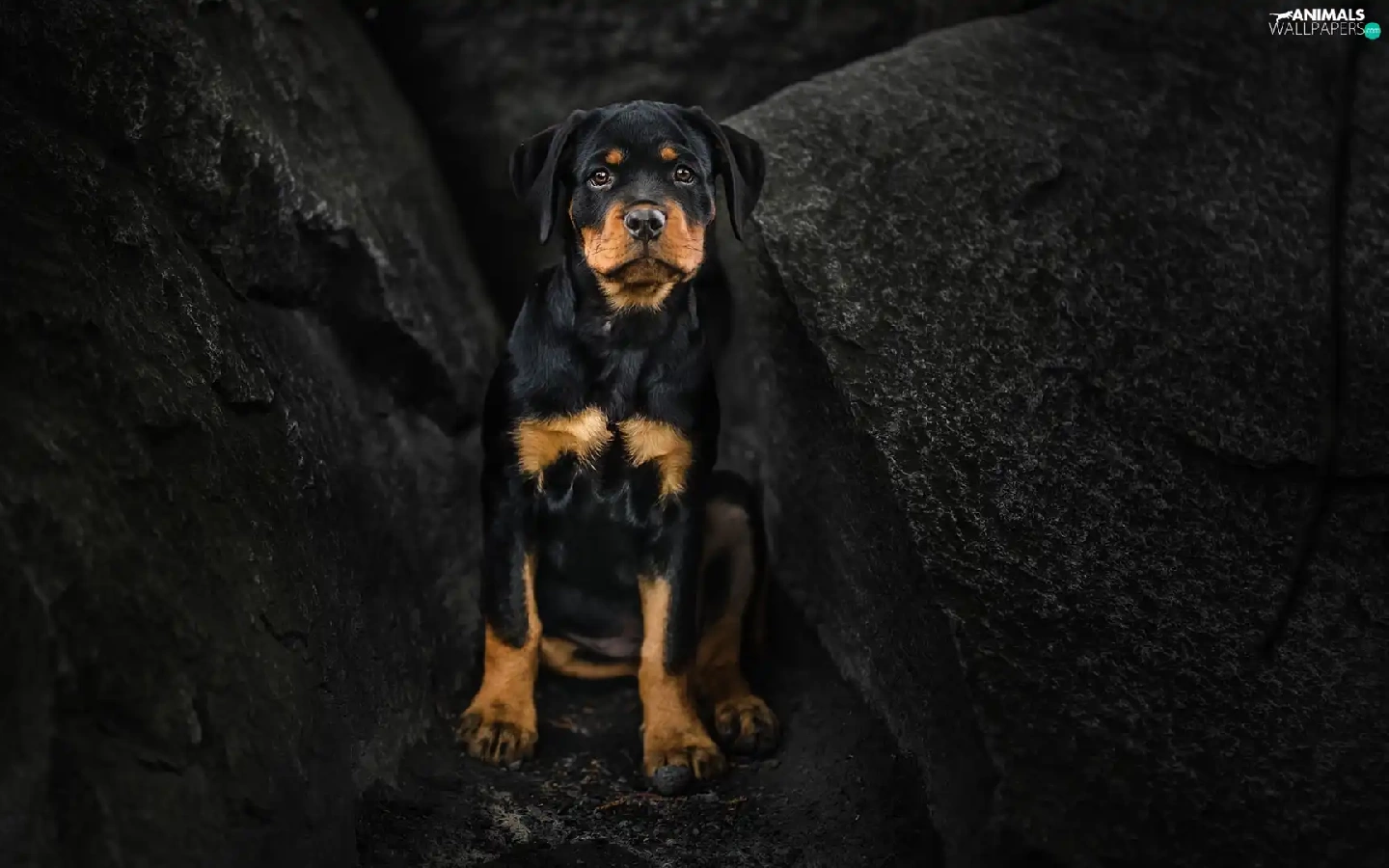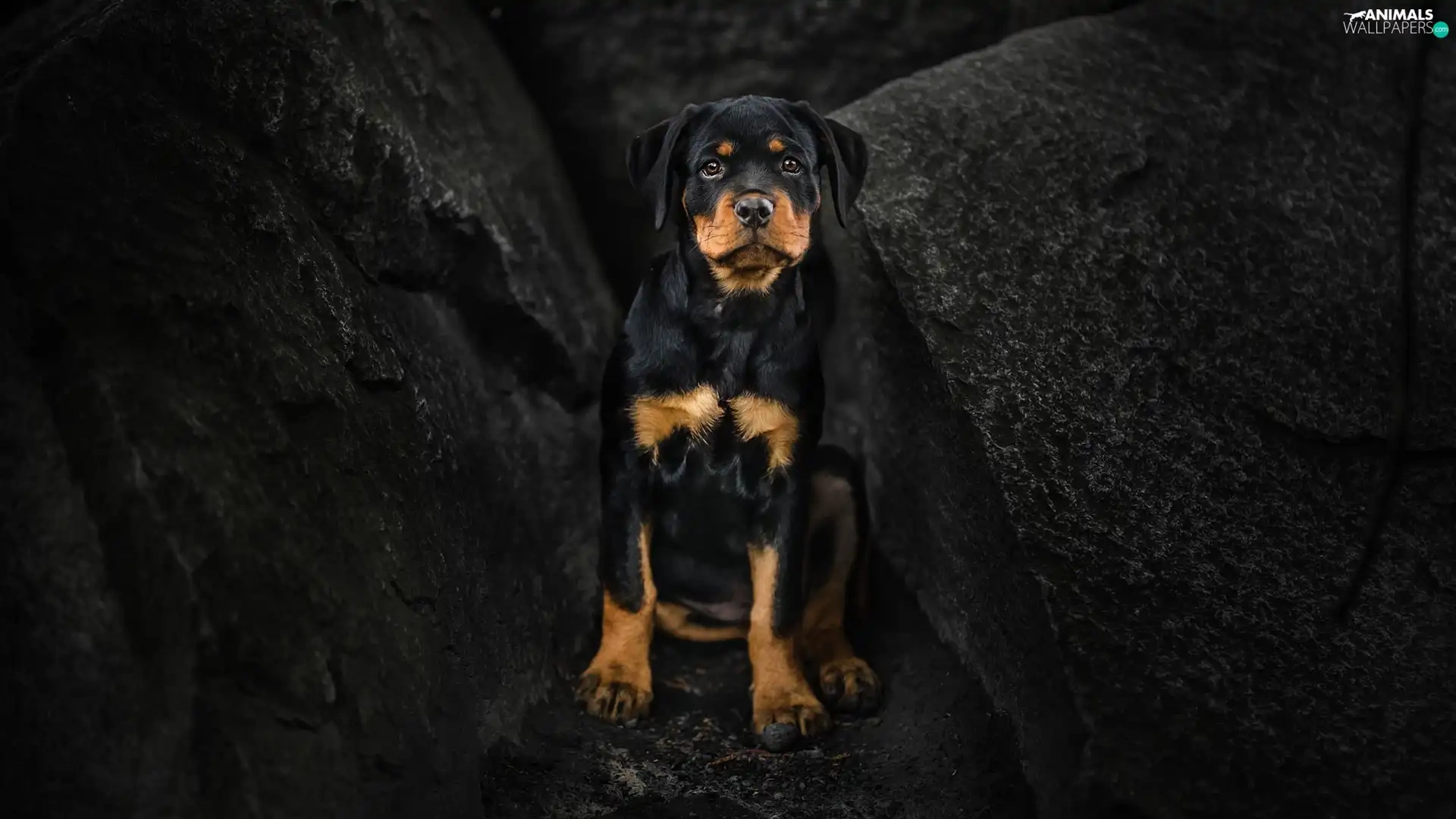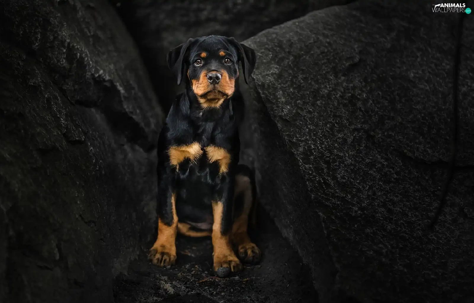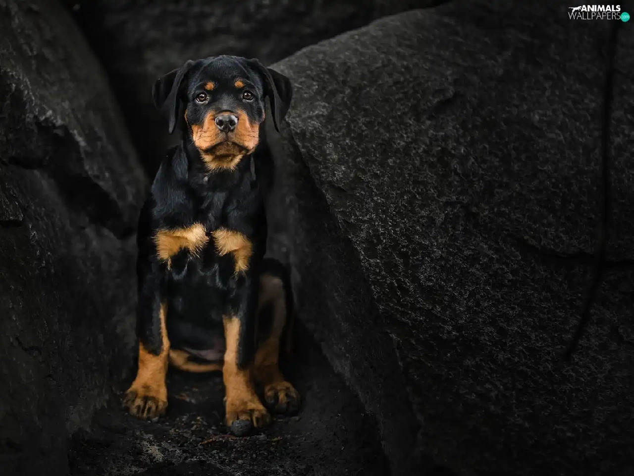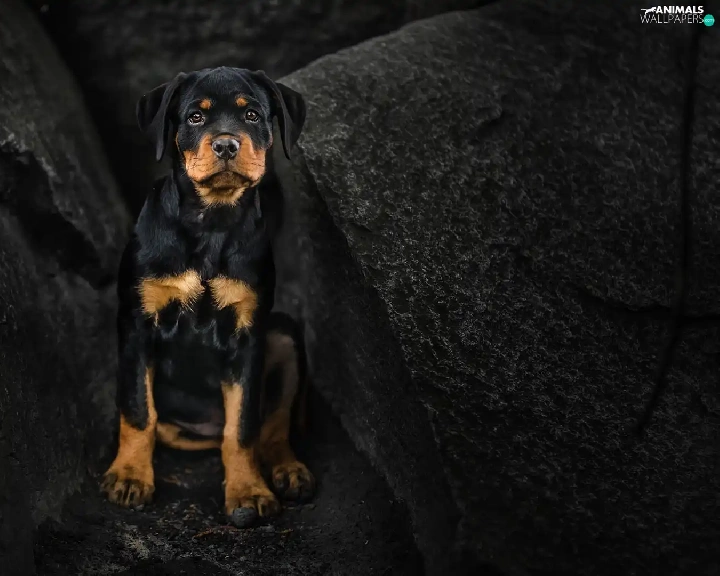 dog, Rottweiler, rocks, Puppy