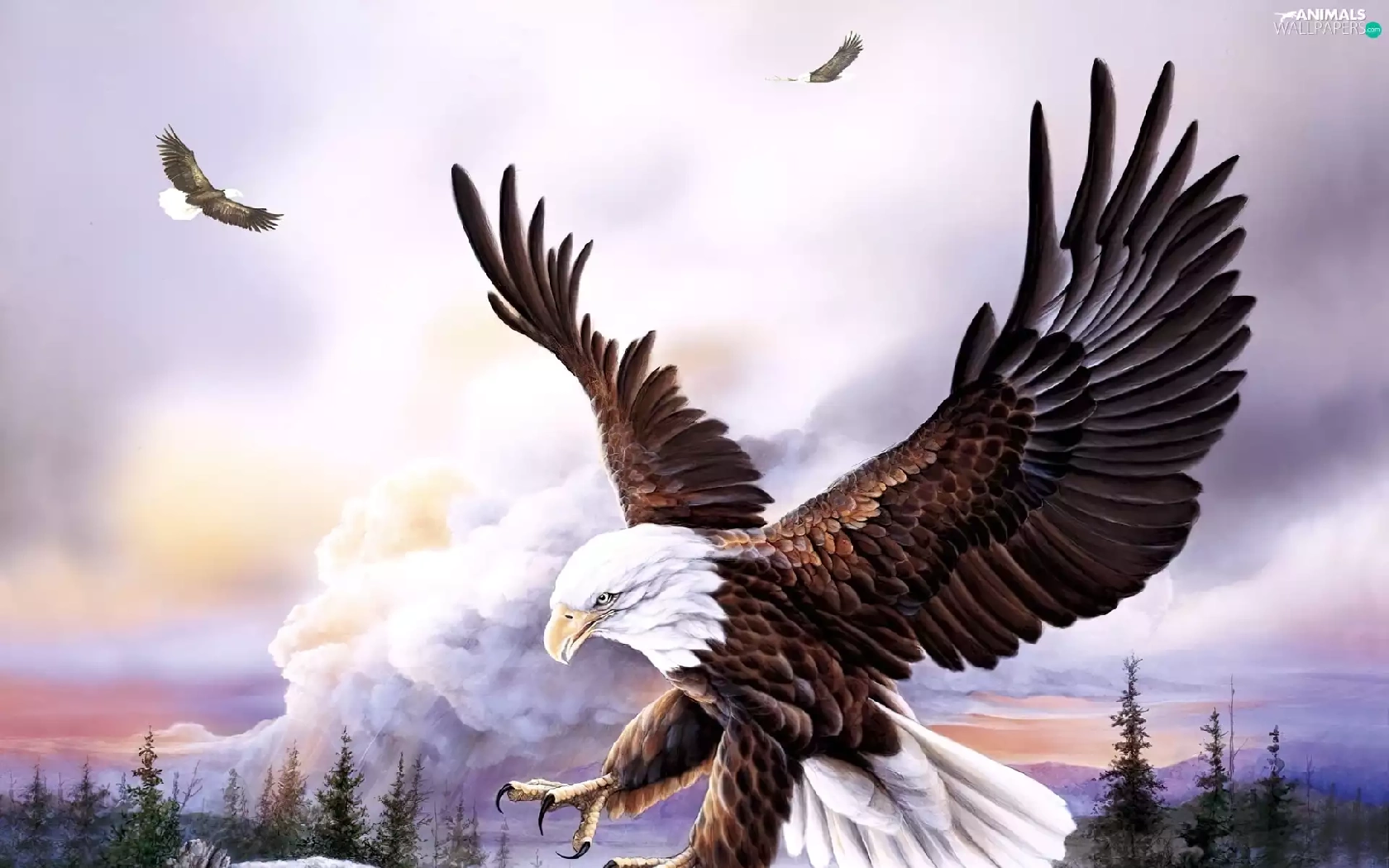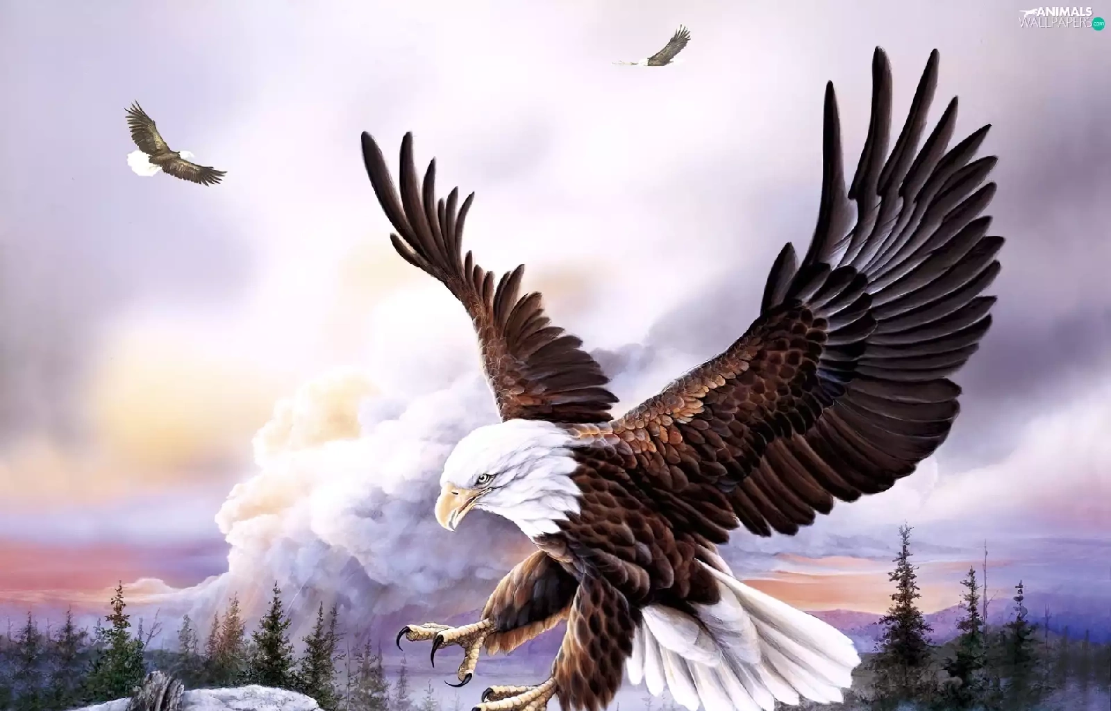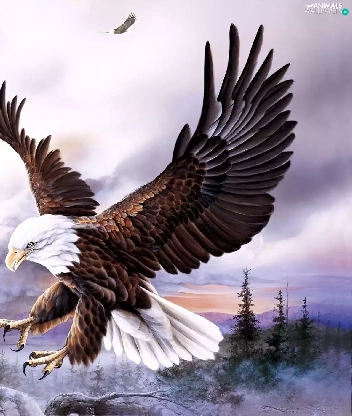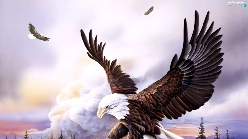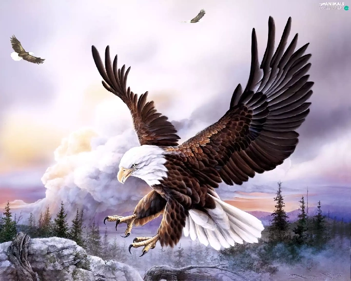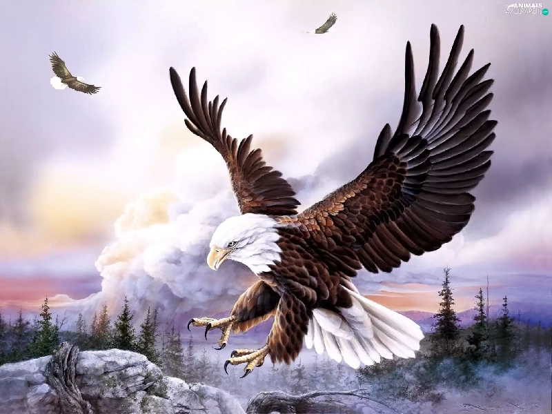 rocks, Eagles, forest