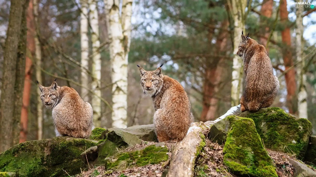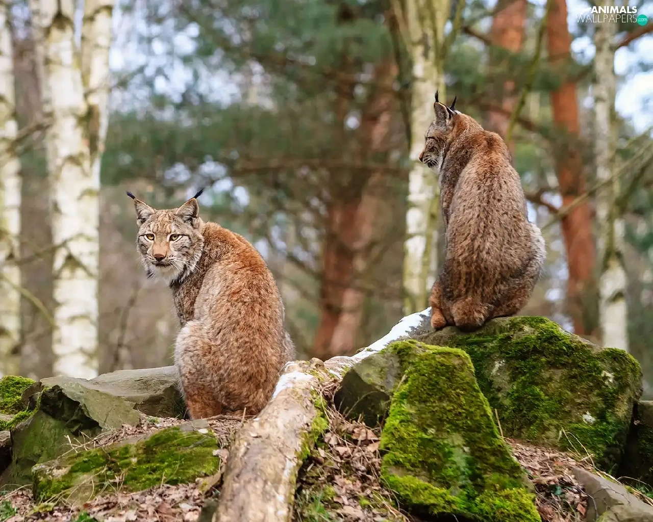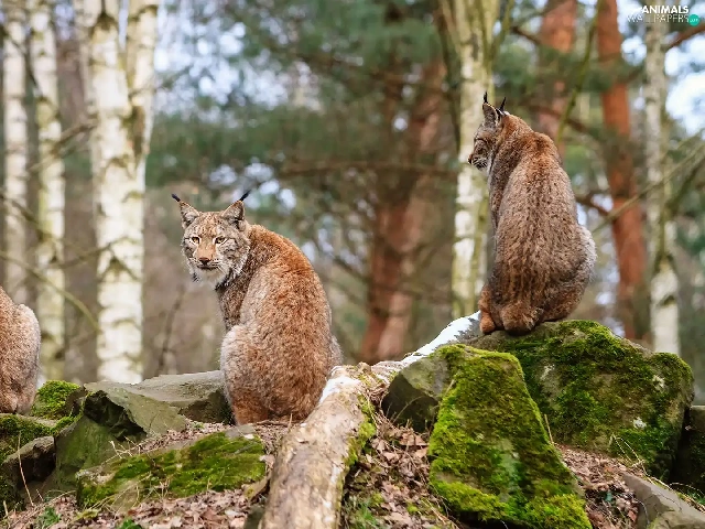 rocks, lynx, forest