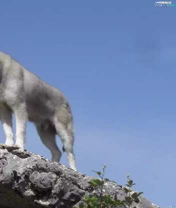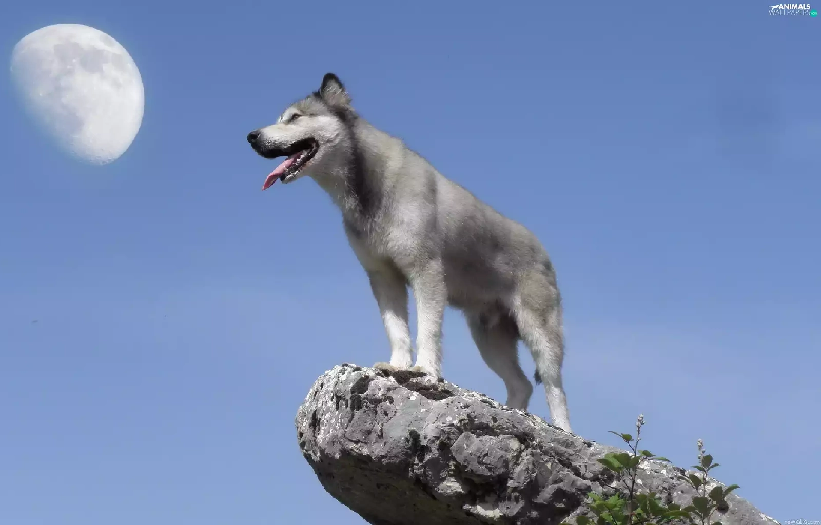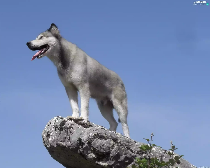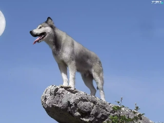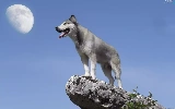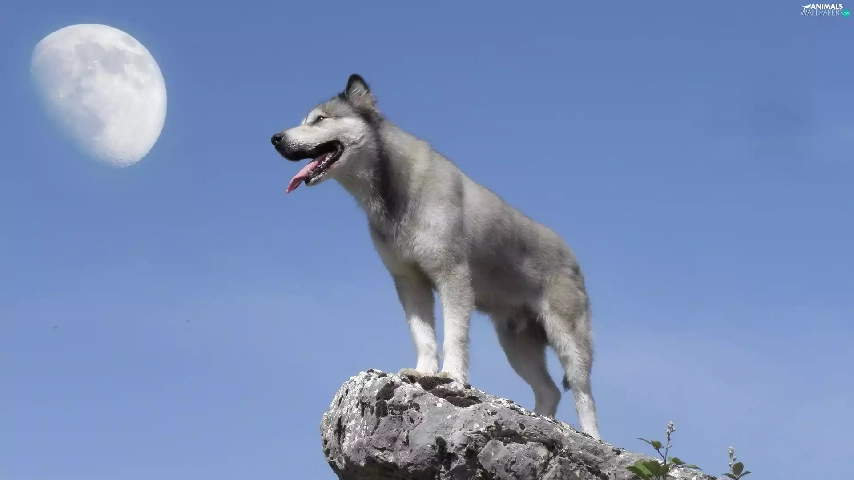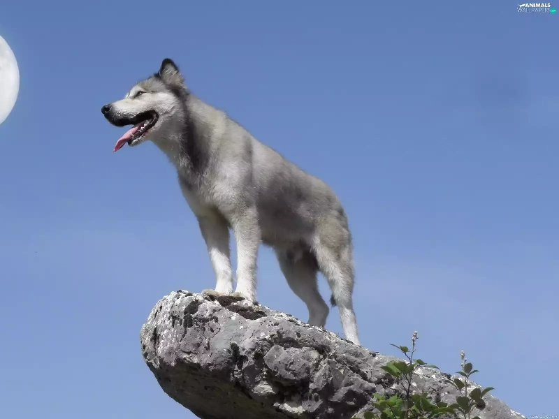 Husky, moon, Sky, Rocks