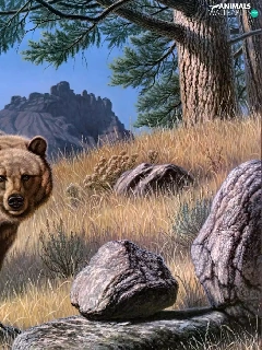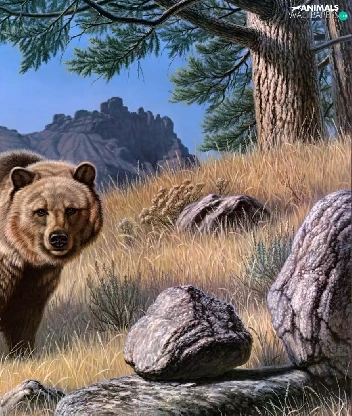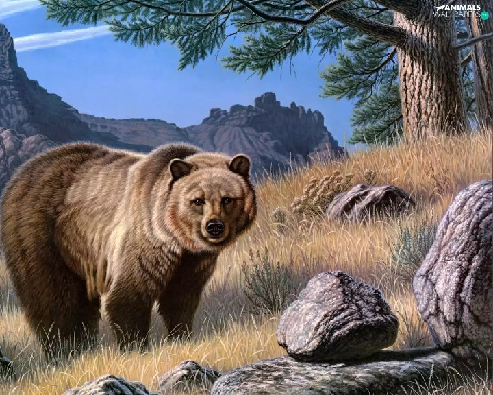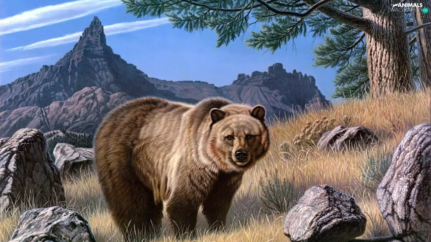 rocks, Bear, Mountains