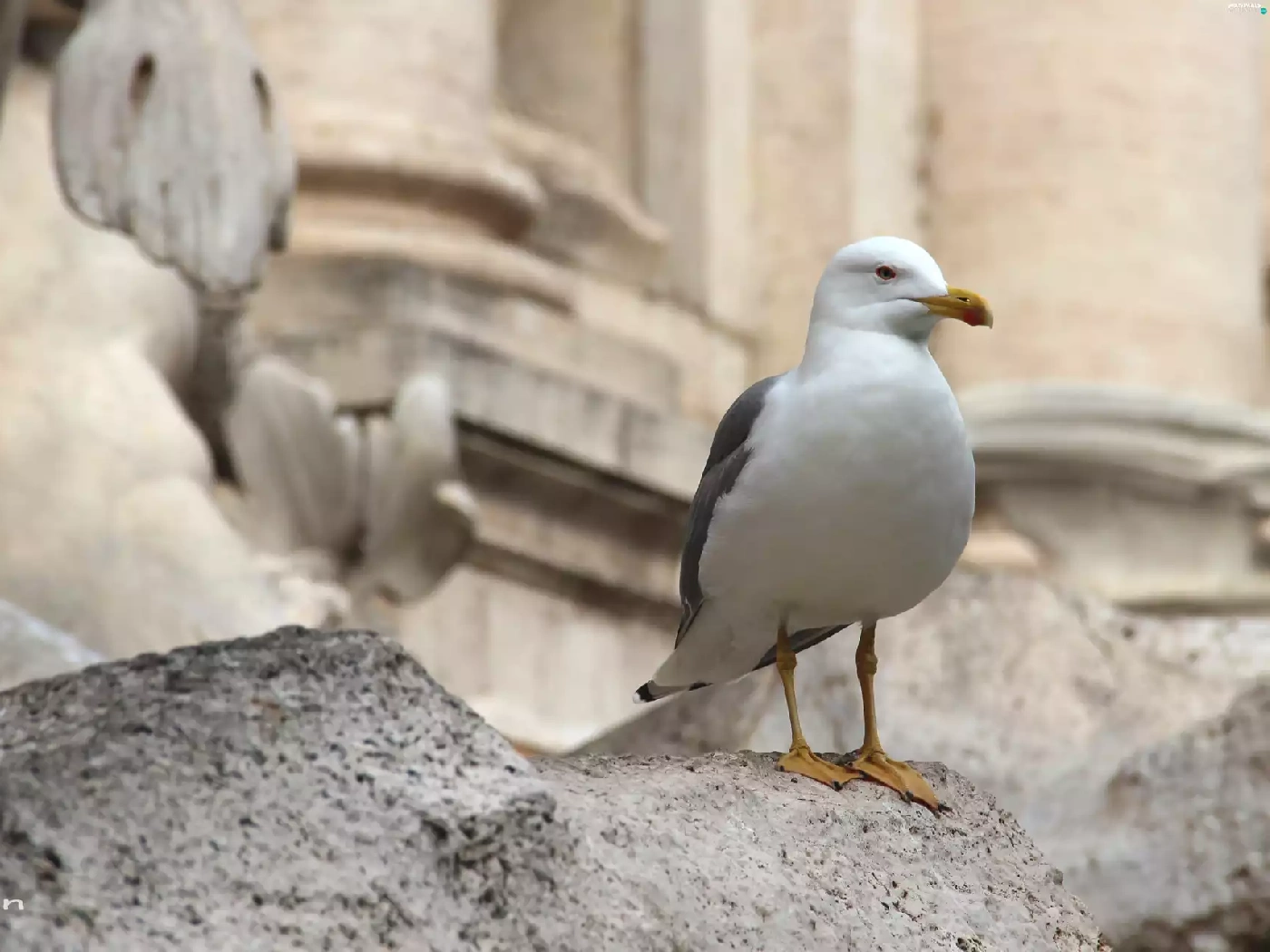 Rocks, Bird, seagull