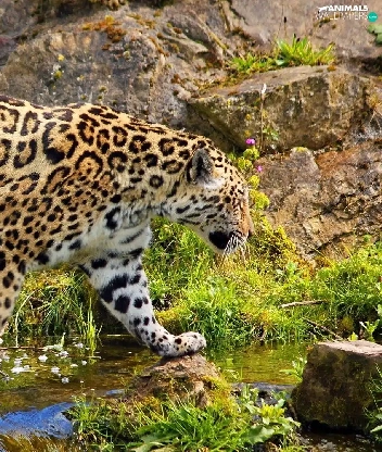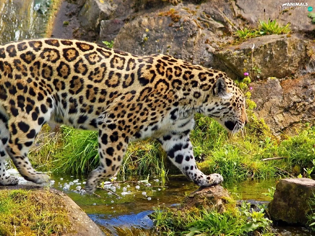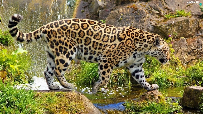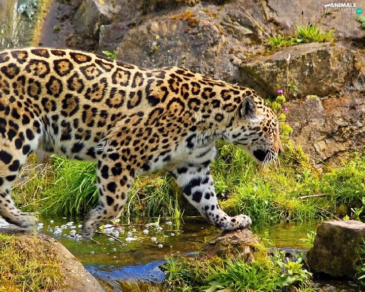 rocks, Jaguar, water