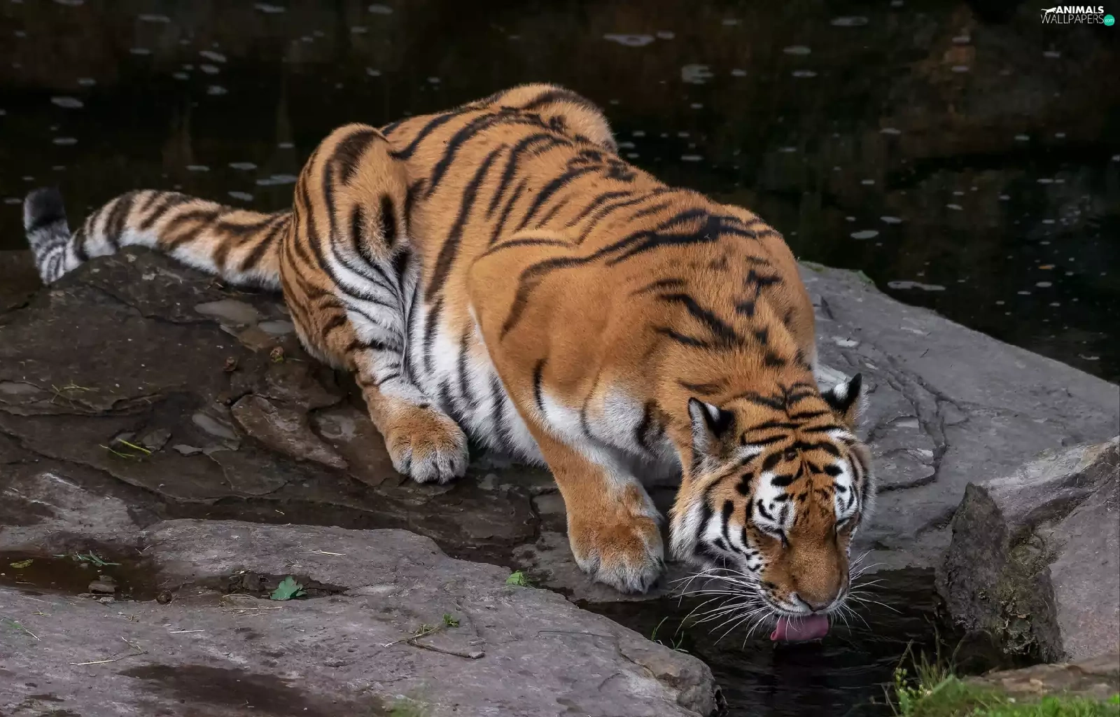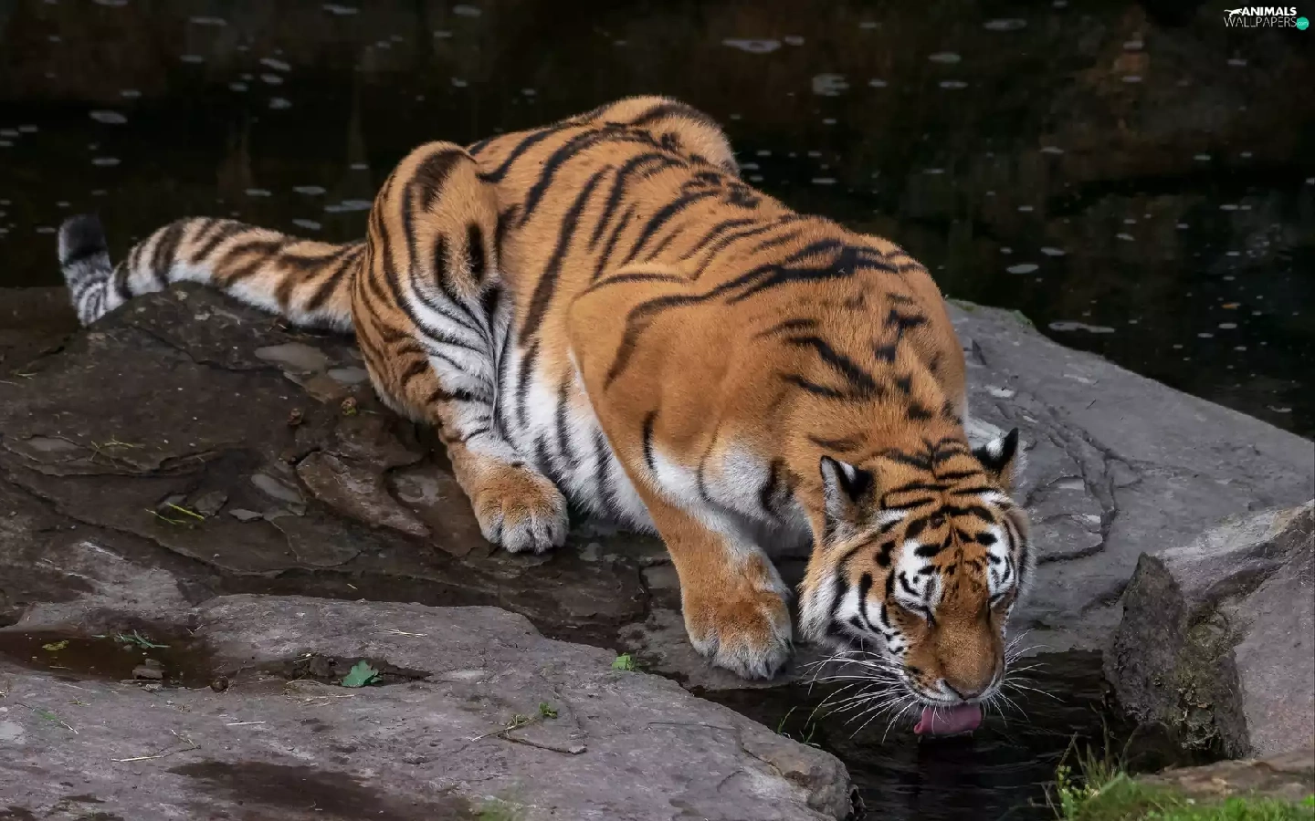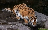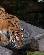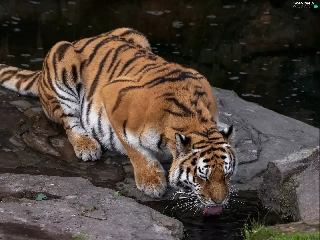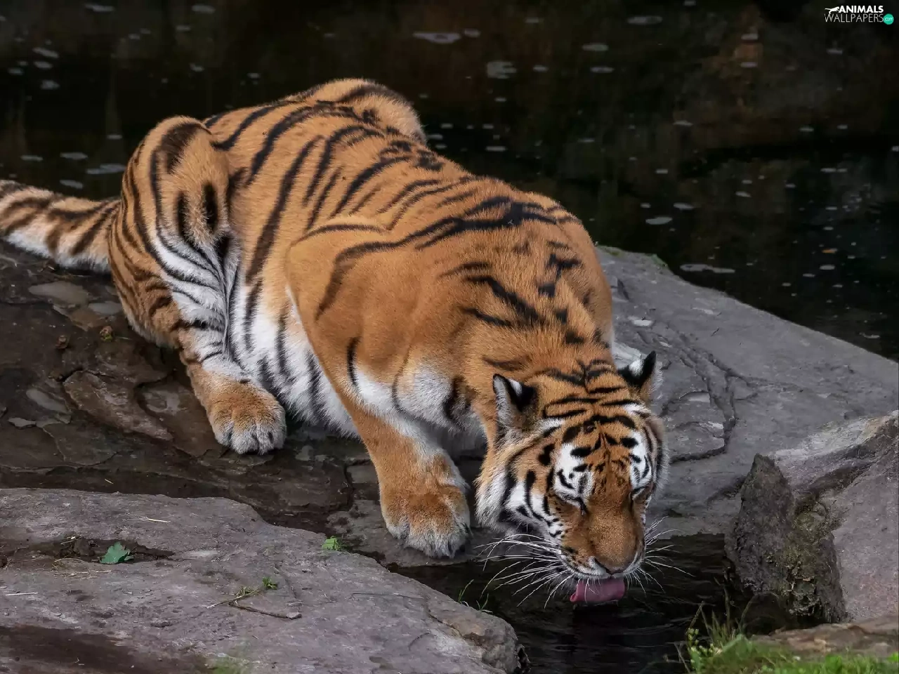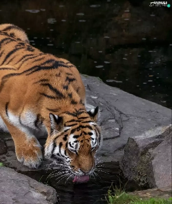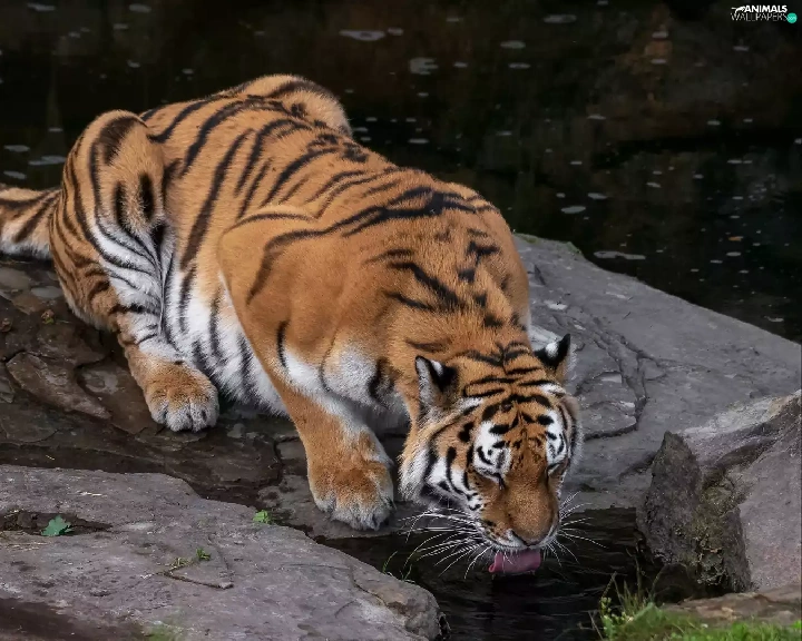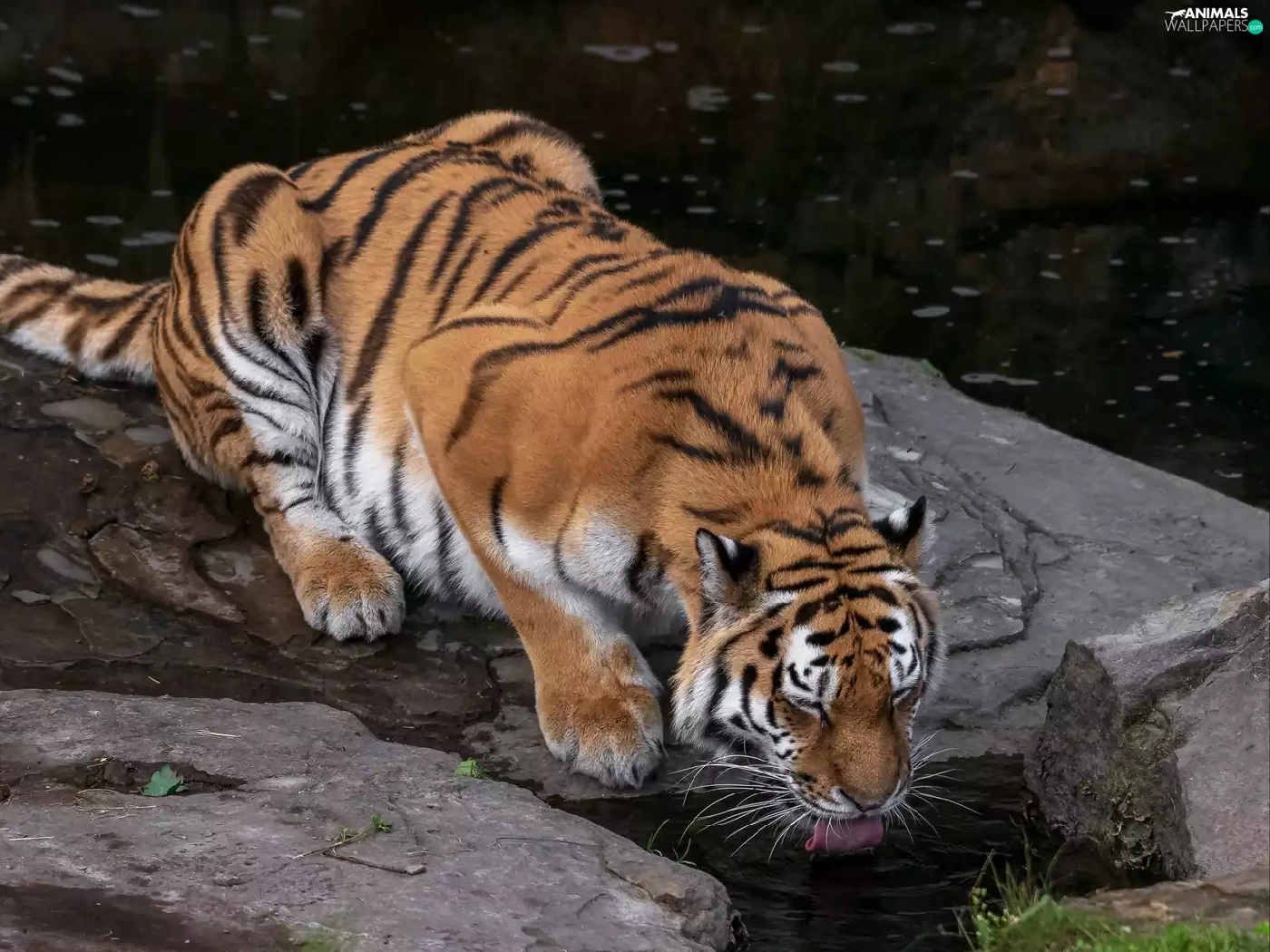 watering place, tiger, Rocks