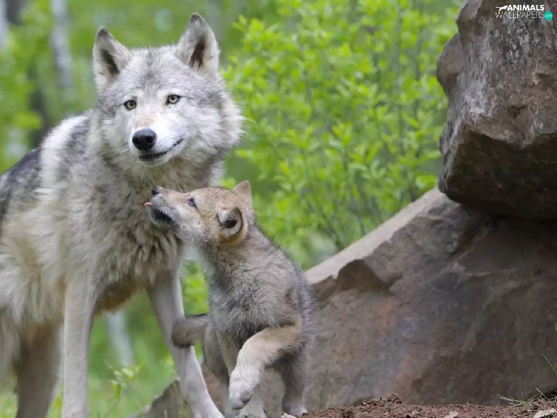 Rocks, Wolf, young