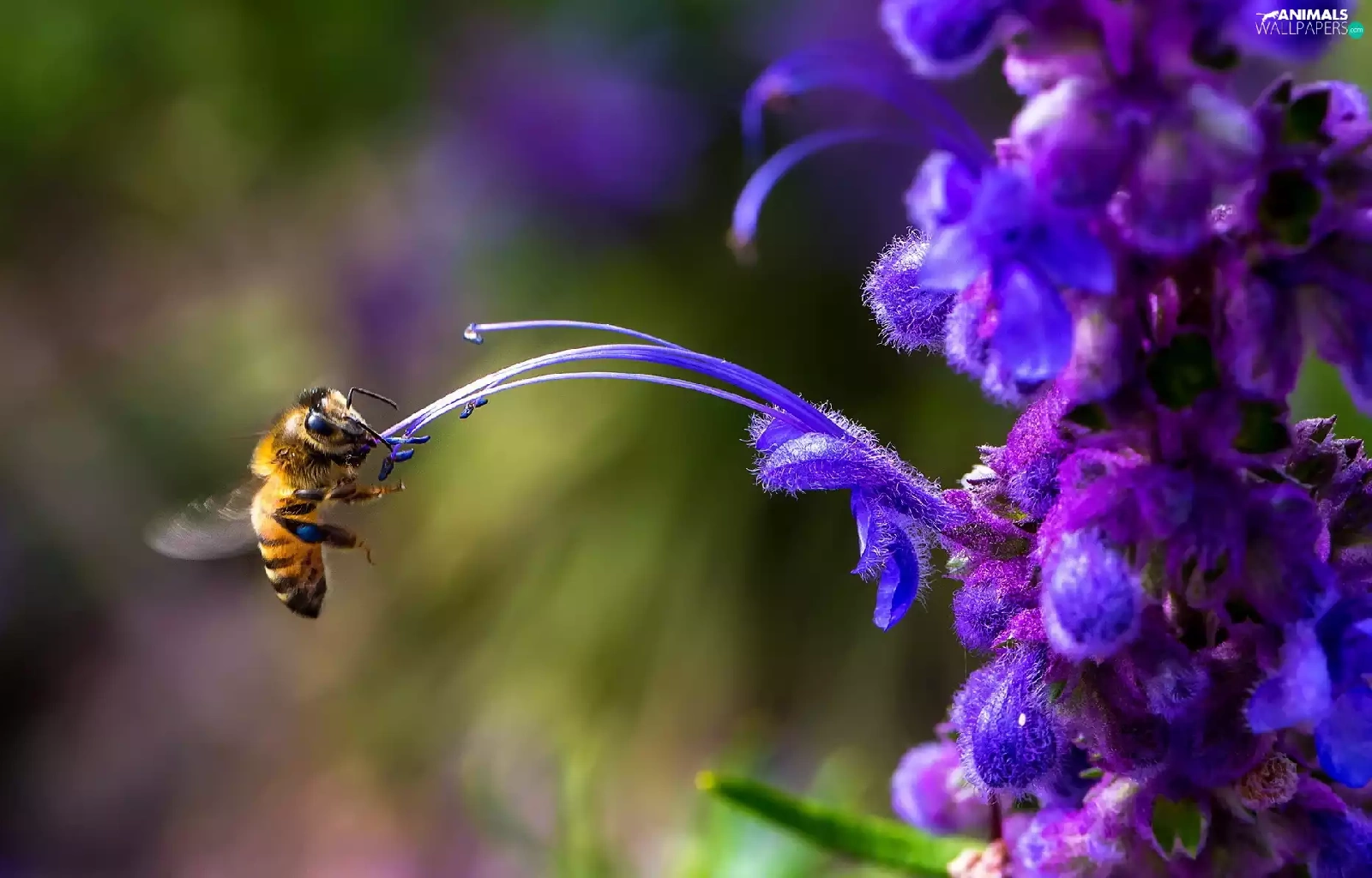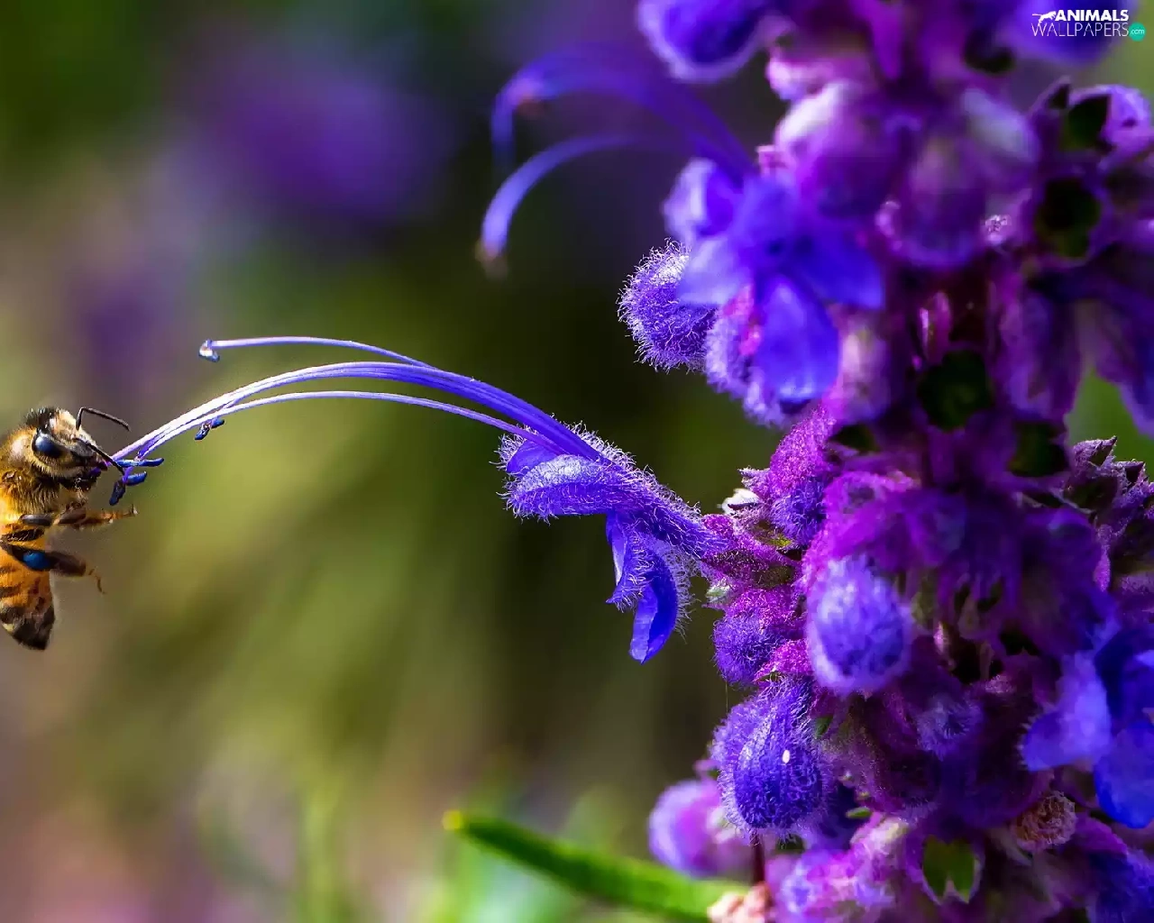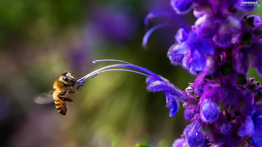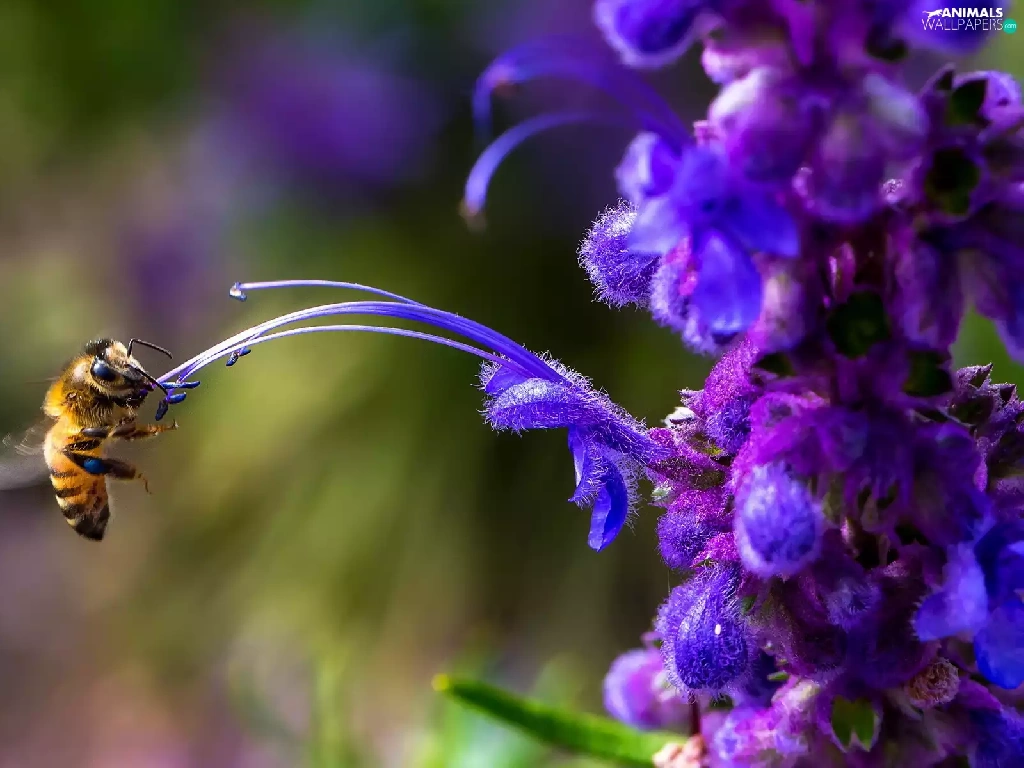 Violet, rods, bee, Colourfull Flowers