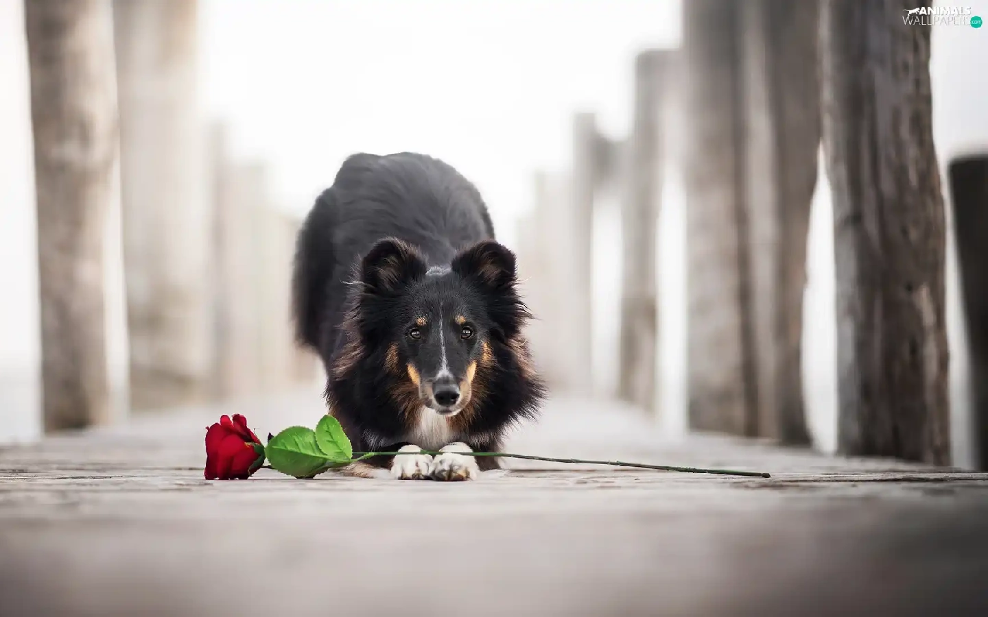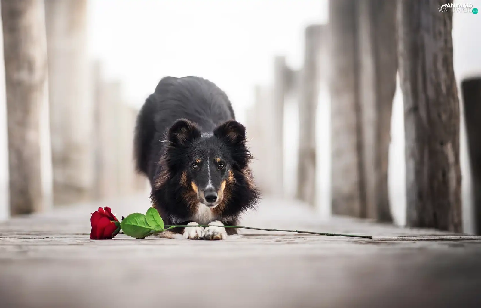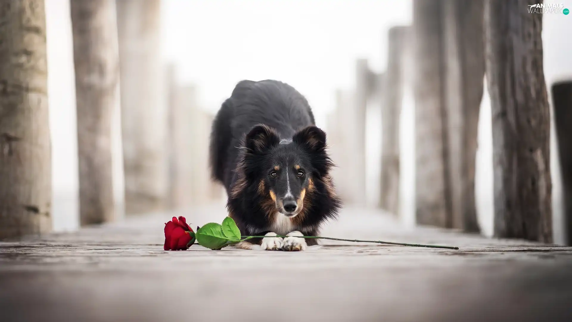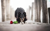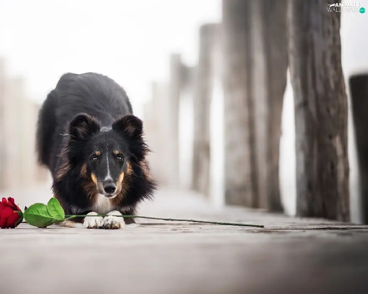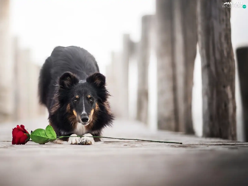 dog, Colourfull Flowers, rose, shetland Sheepdog