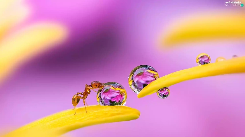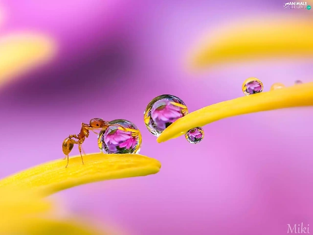 drops, Rosy, flakes, flowers, ant