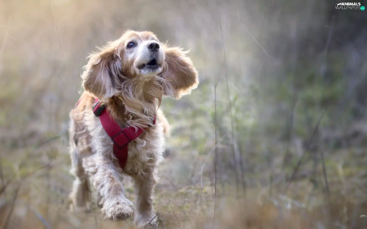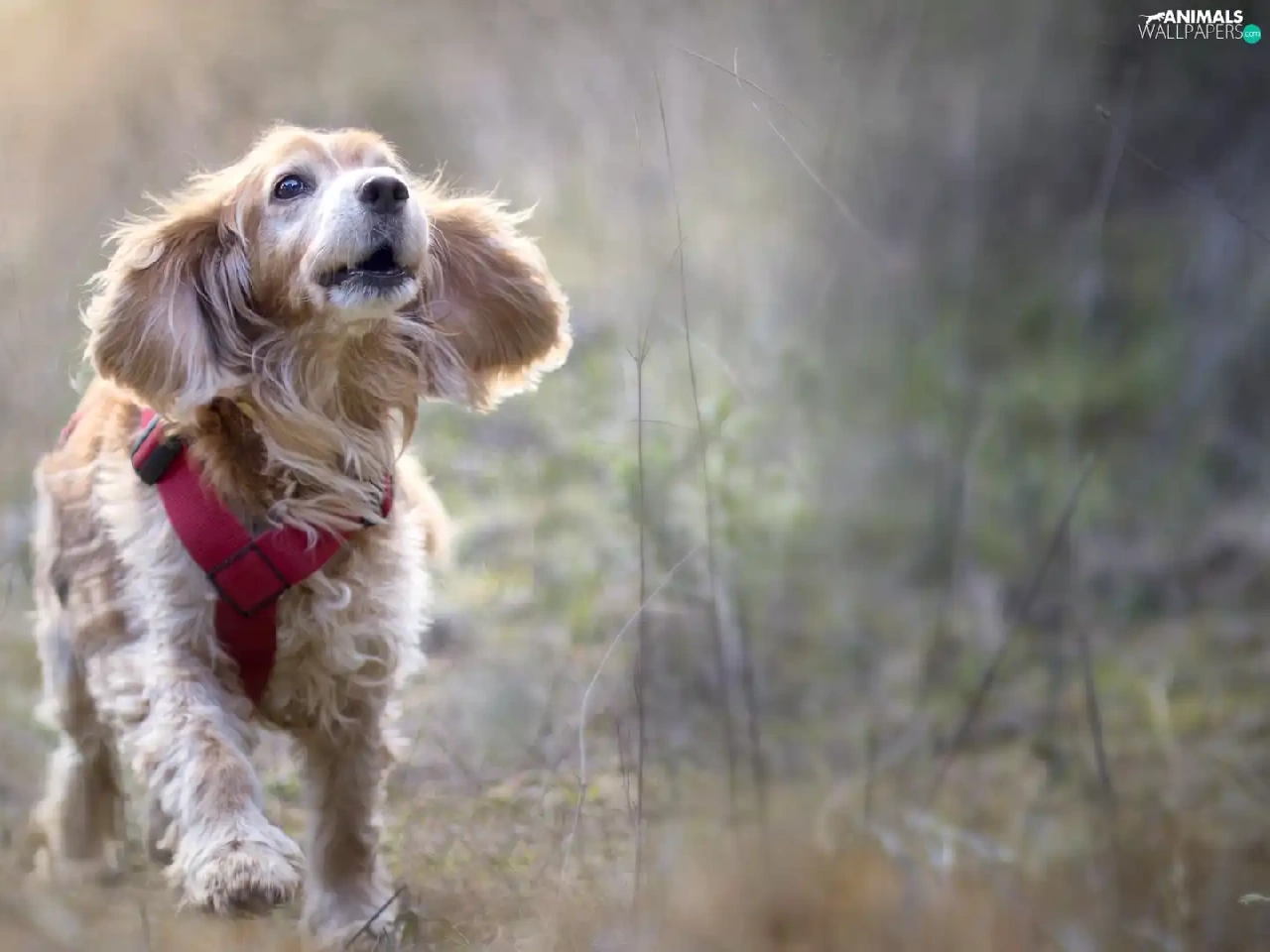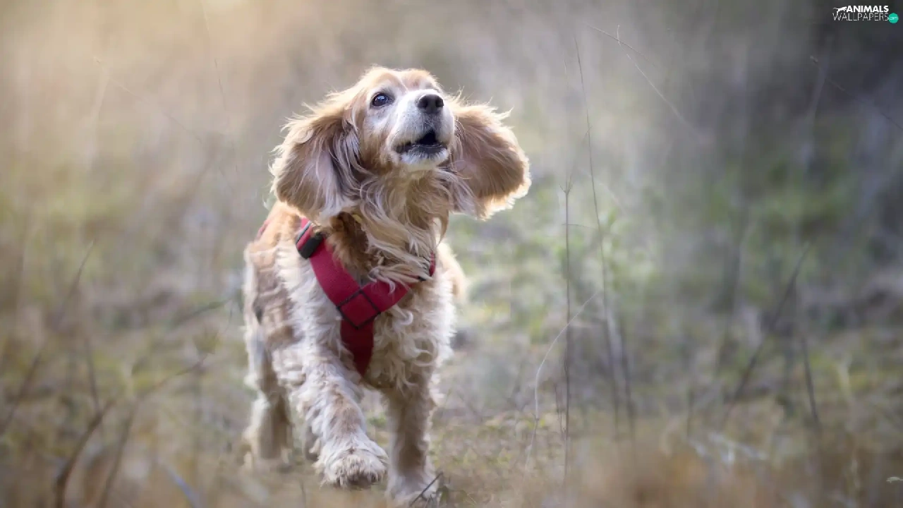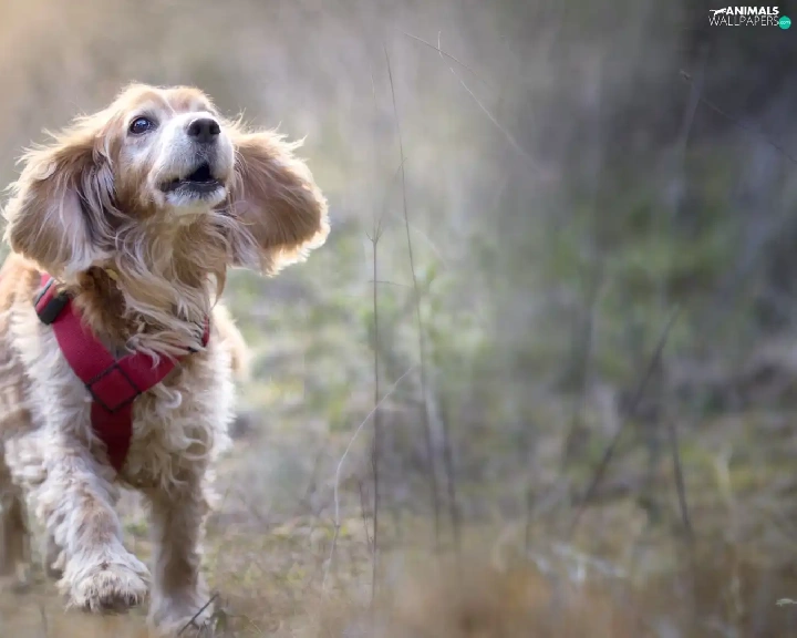 English Cocker Spaniel, dog, fuzzy, Meadow, braces, running