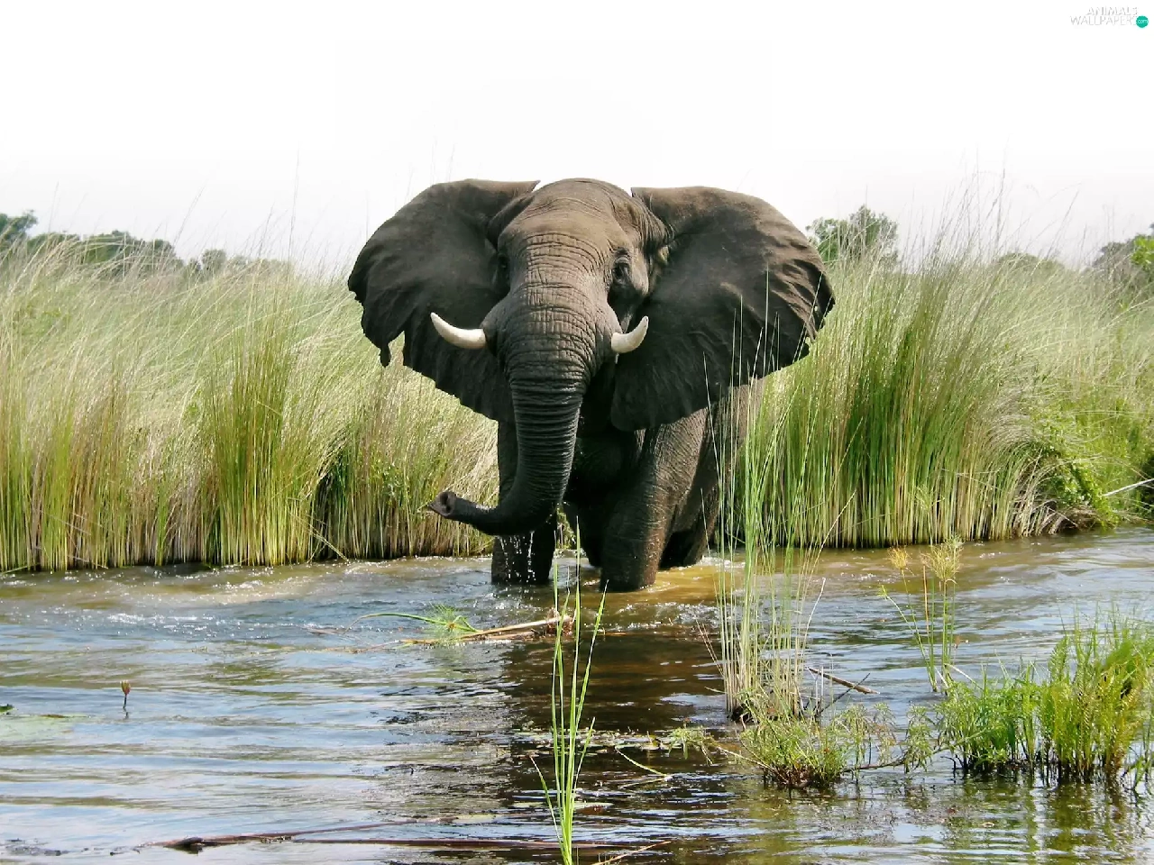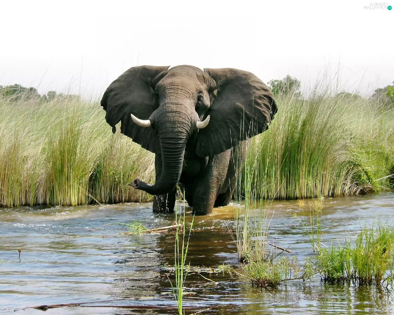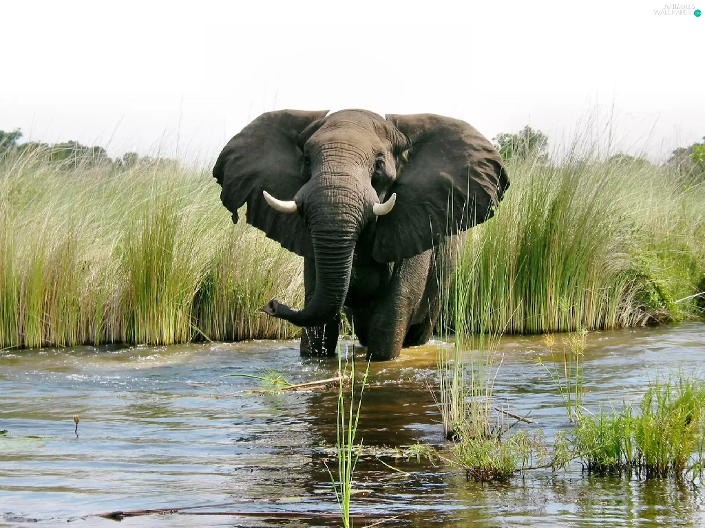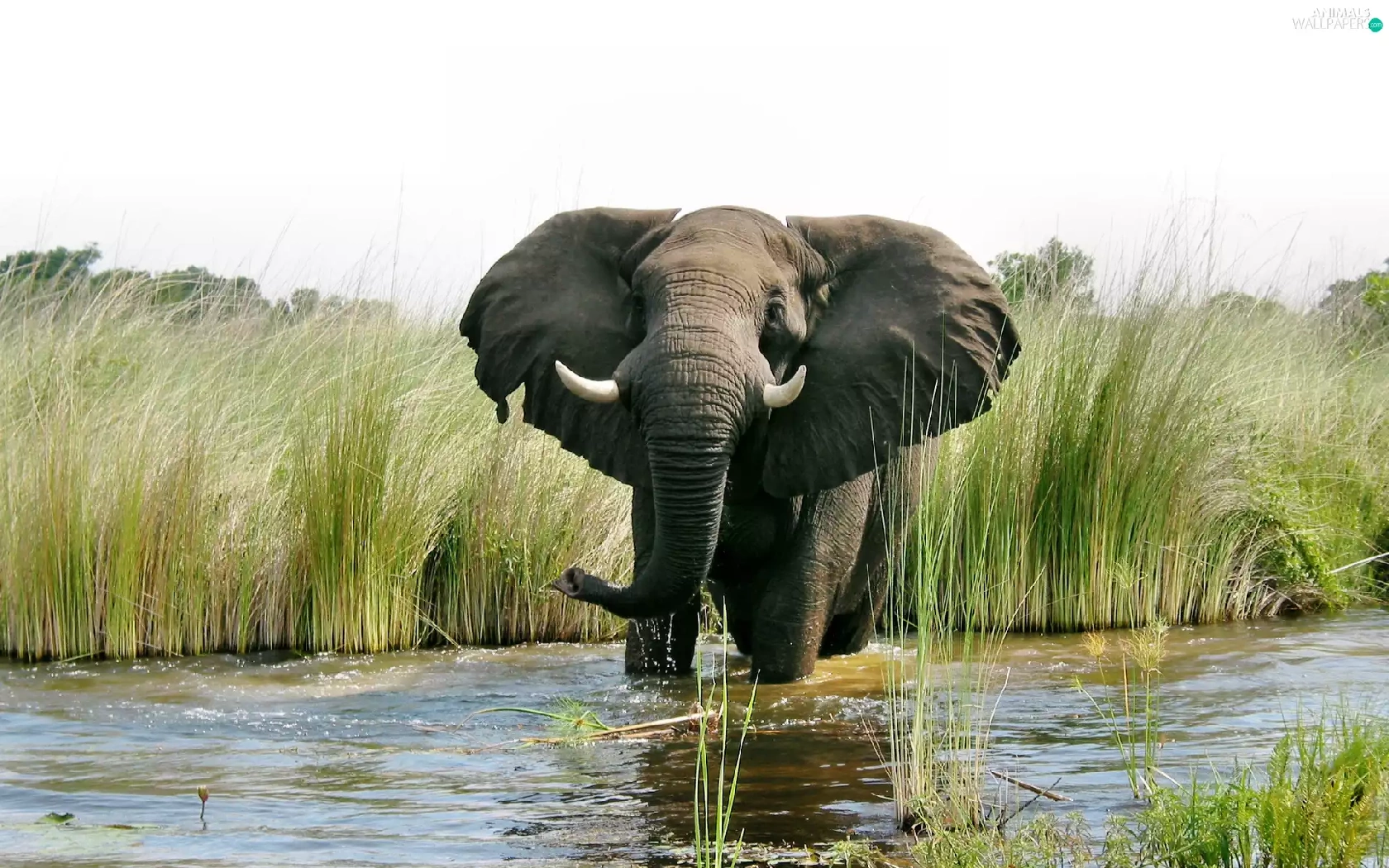 rushes, Elephant, water