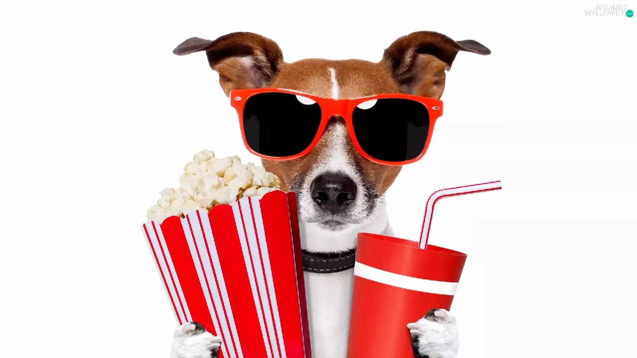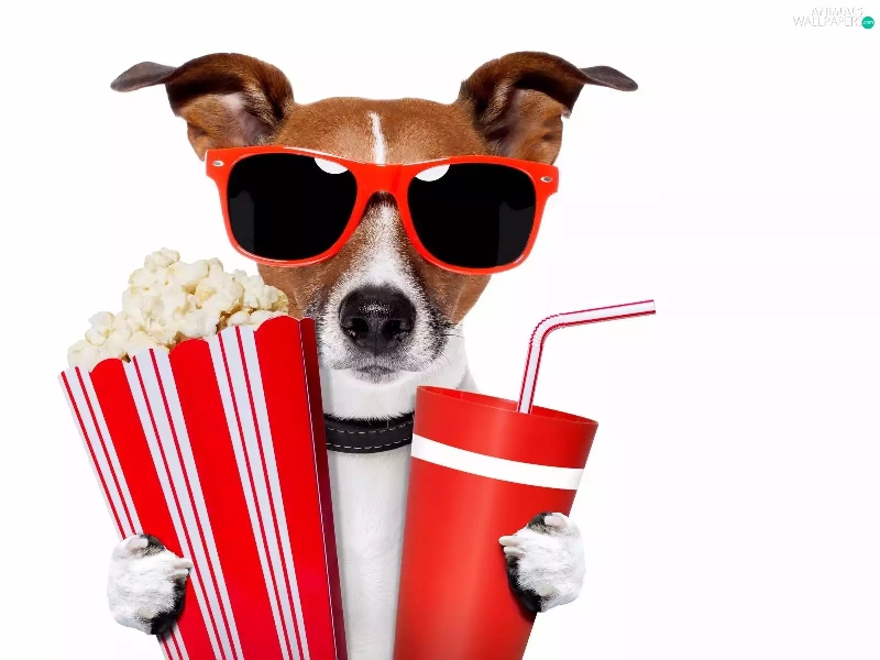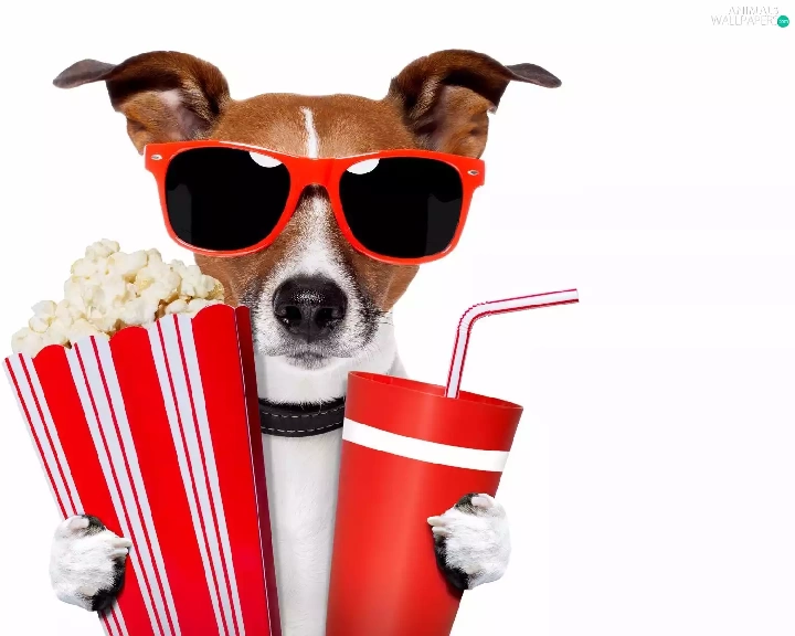 drink, Popcorn, Jack Russell Terrier, Glasses, dog