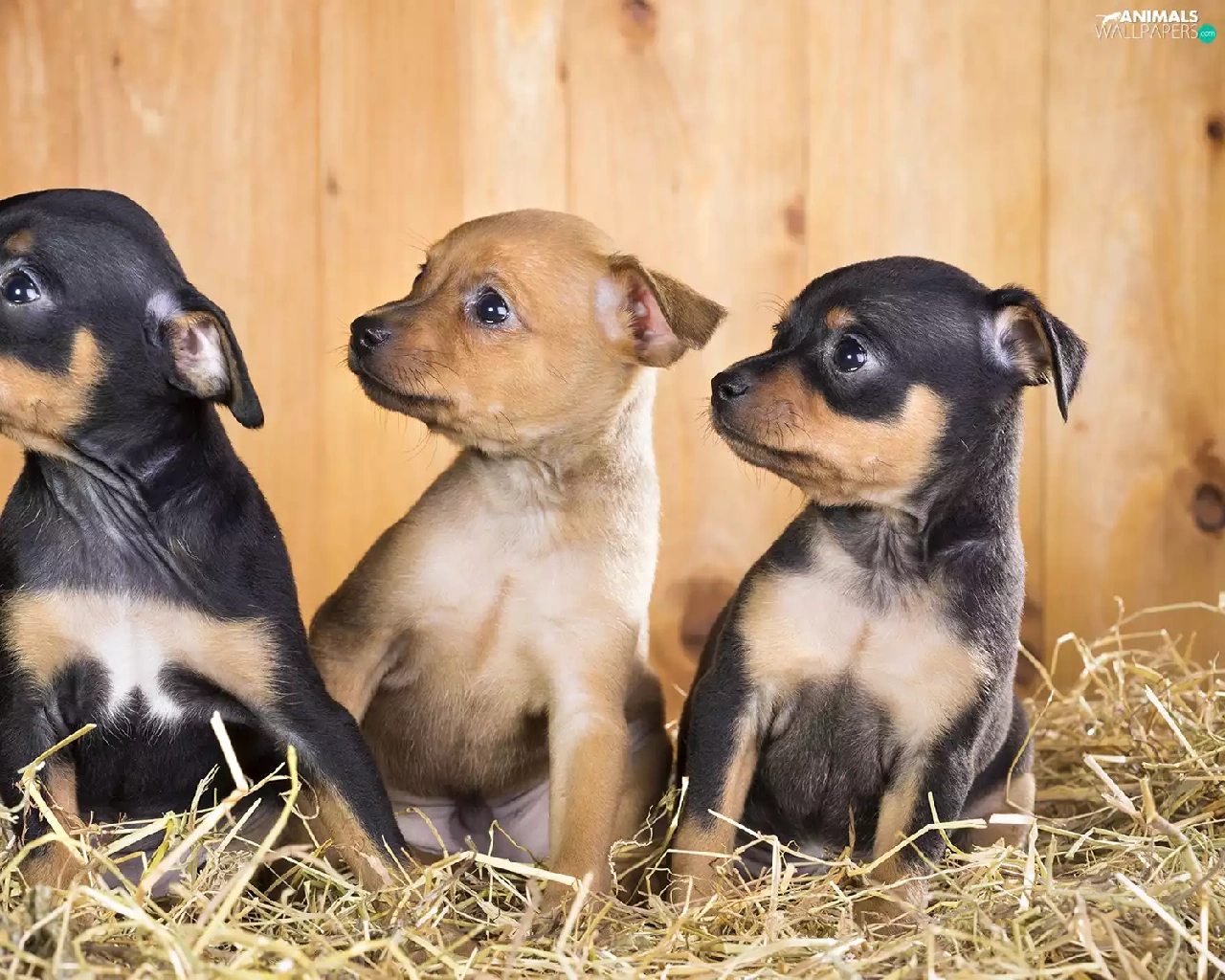 Dogs, Russian Toy, straw, puppies