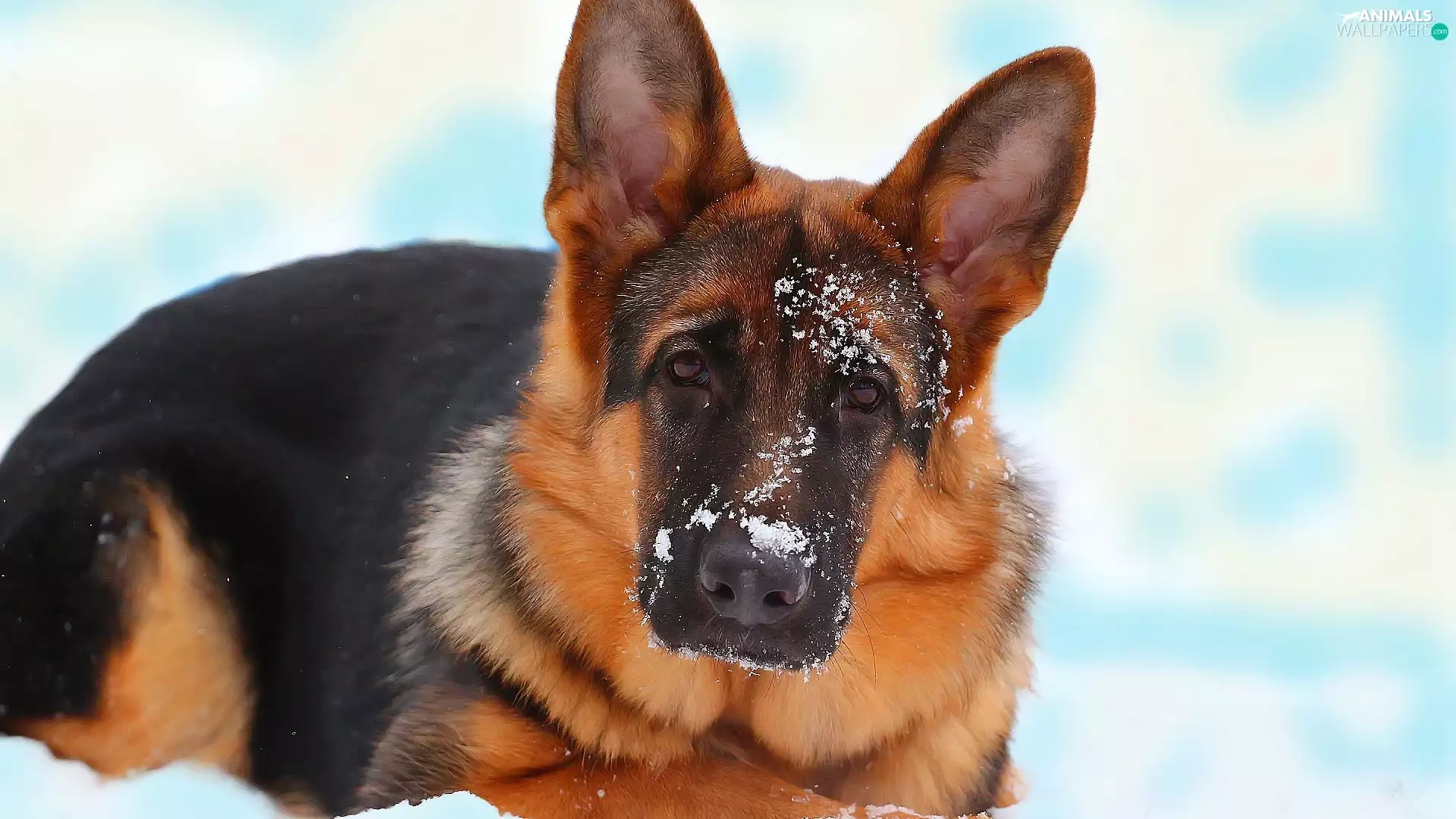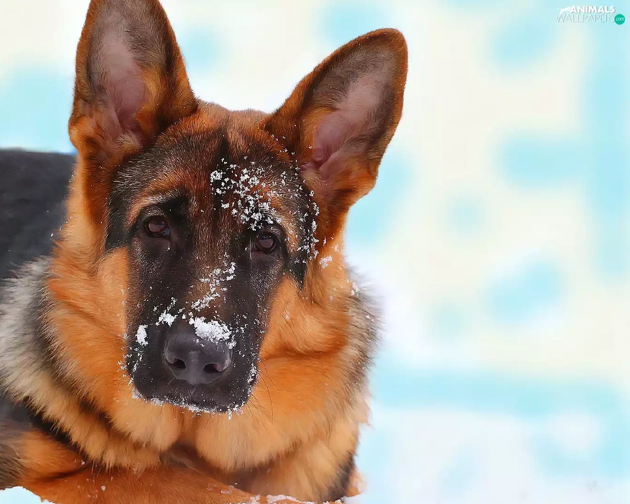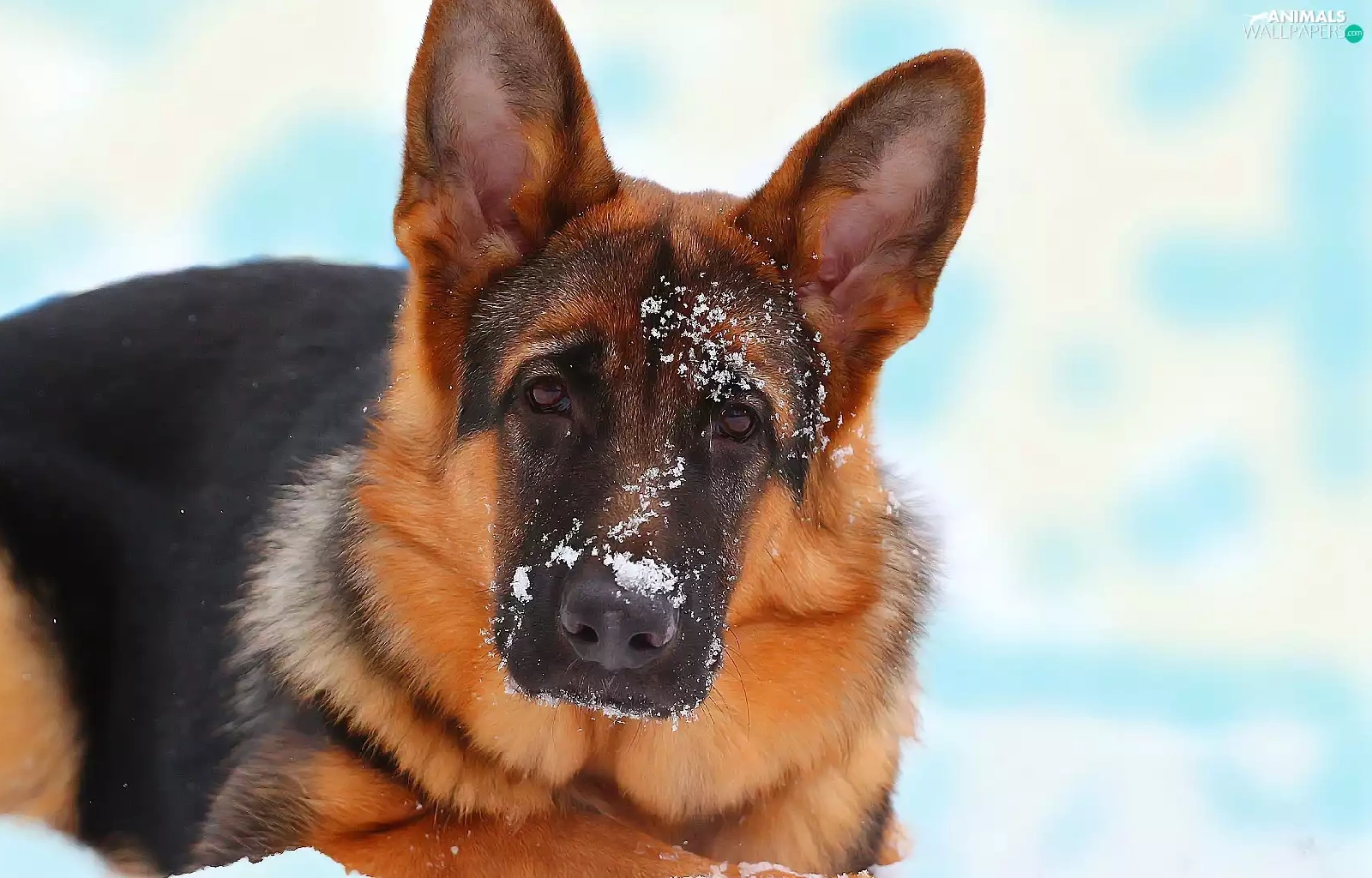German Shepherd, dog, sadness, Eyes, snow, muzzle