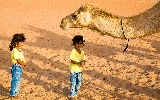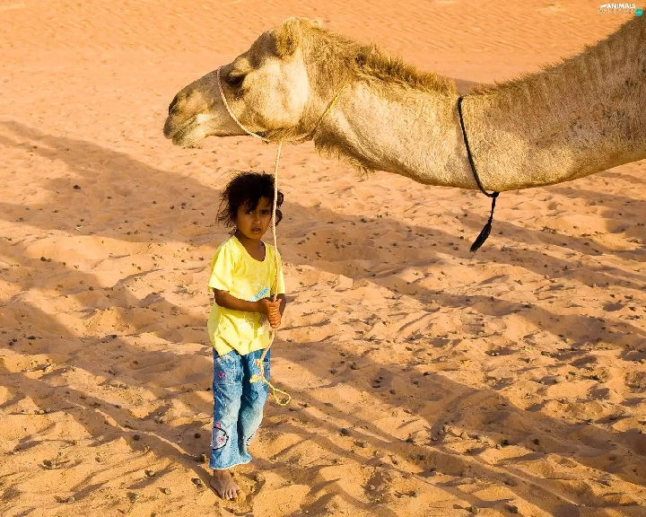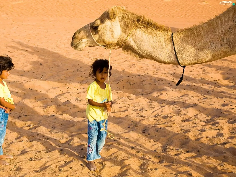Desert, Sand, Camel, Head, Kids