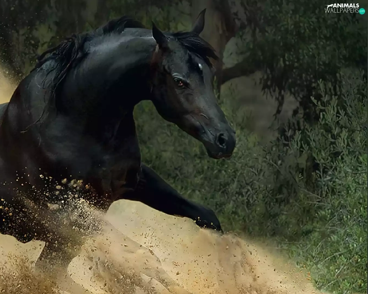 sand, Horse, gallop