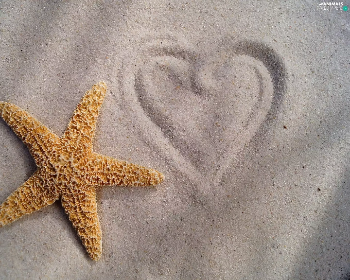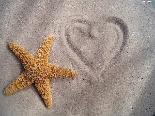 Sand, starfish, Heart