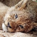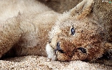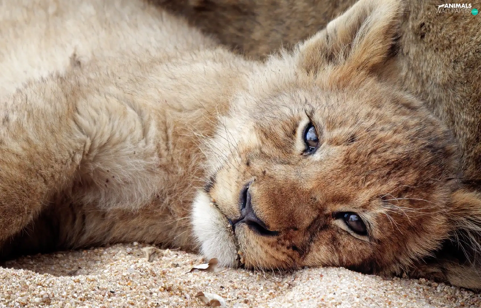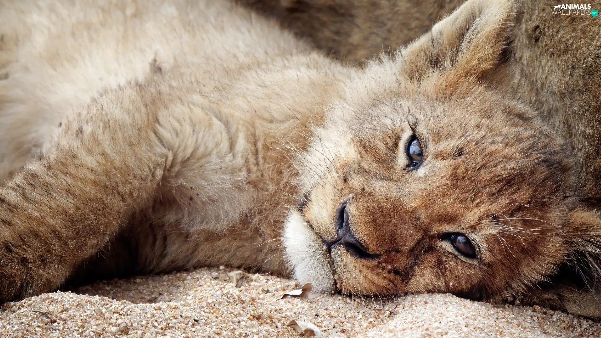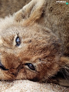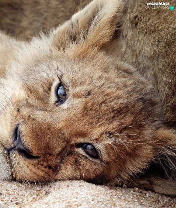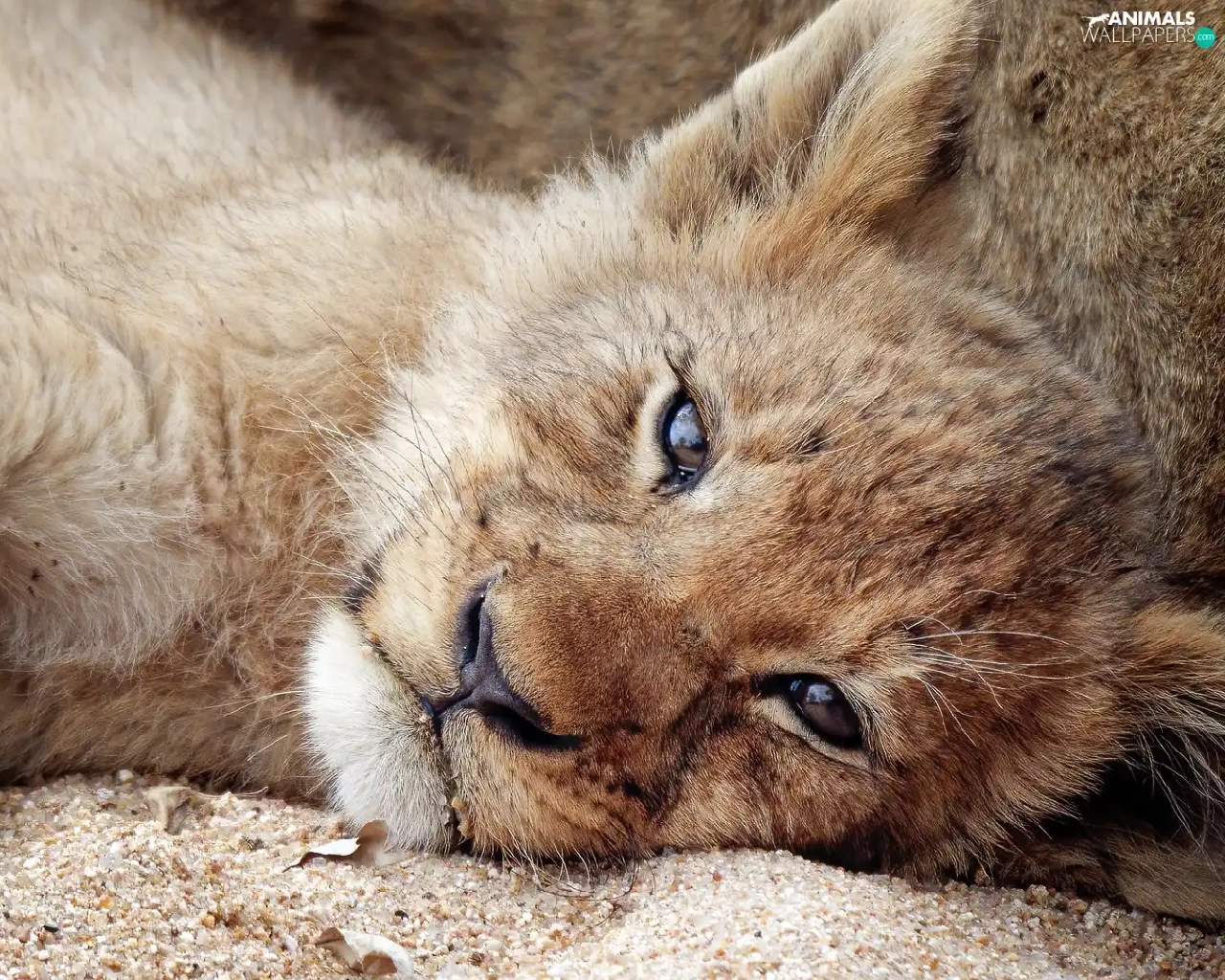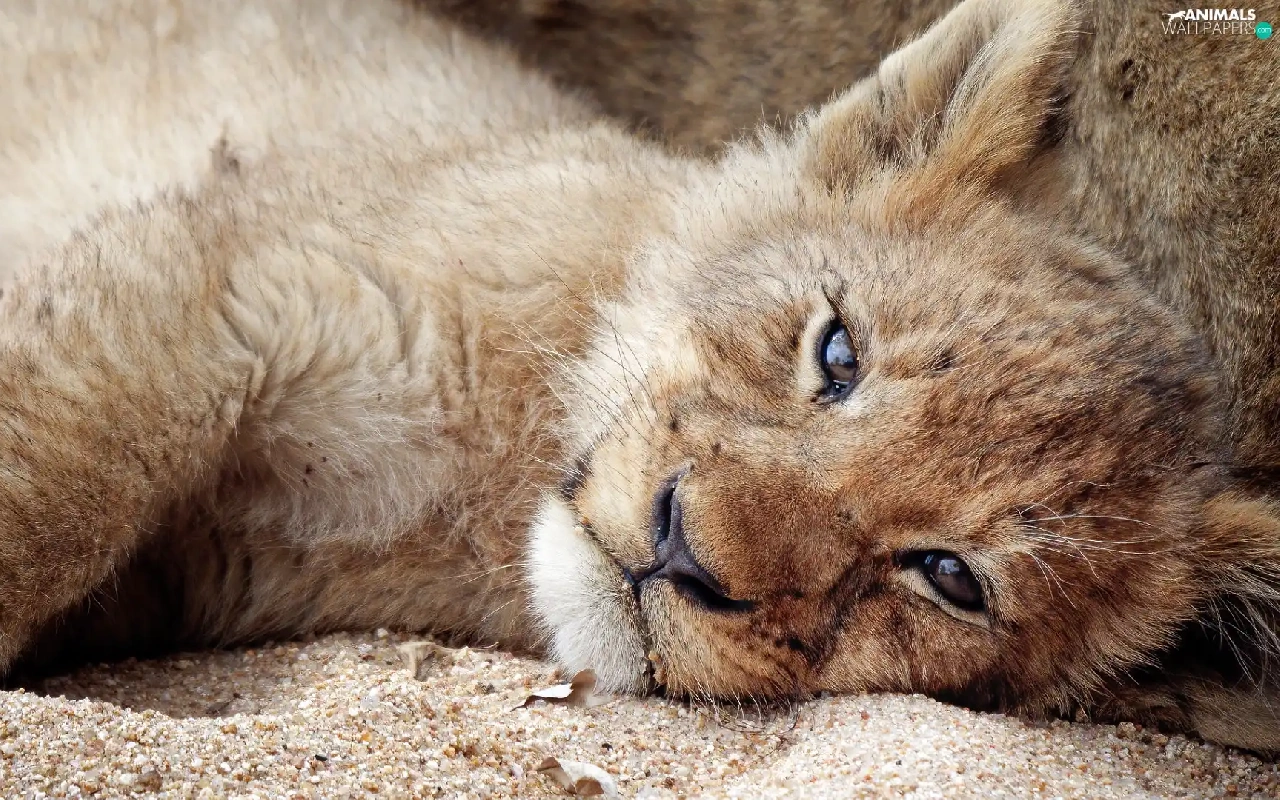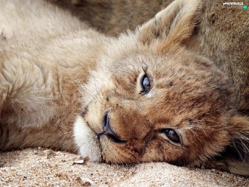 lion, Sand, Lion, lying, small