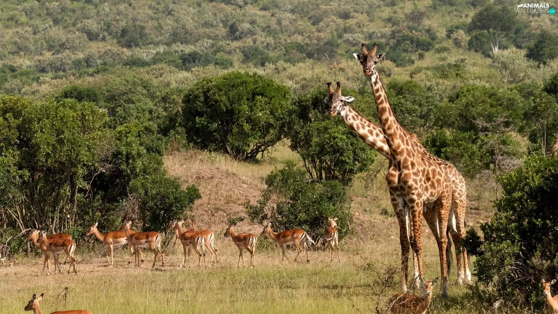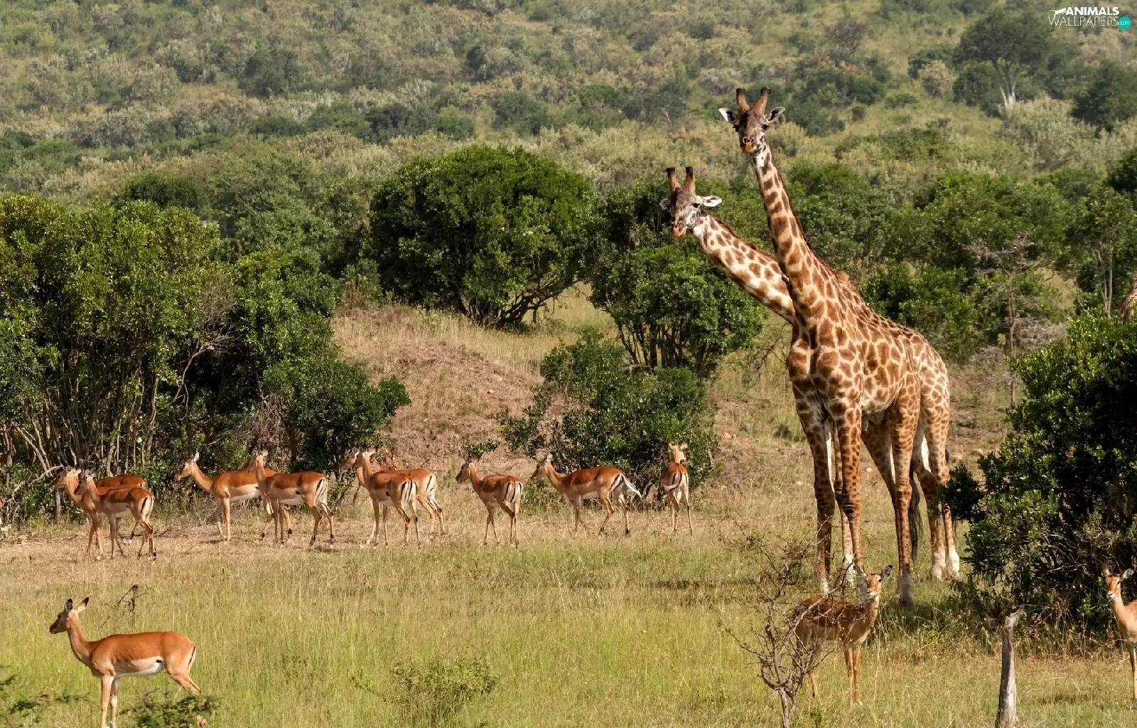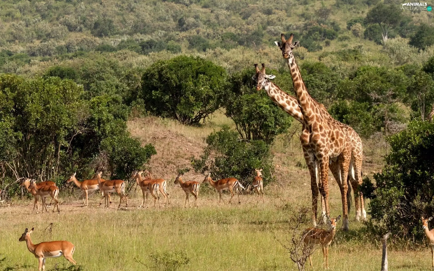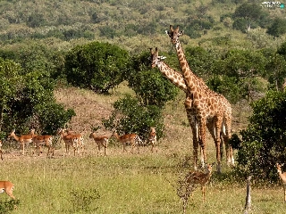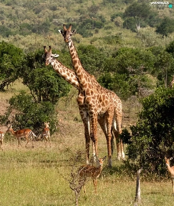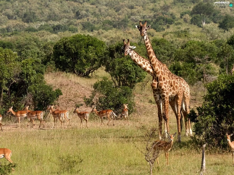 savanna, giraffe, Antelope