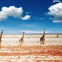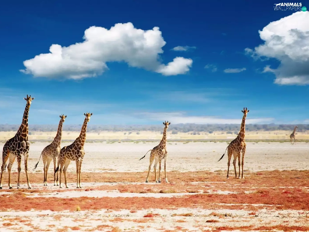 giraffe, Sky, clouds, savanna
