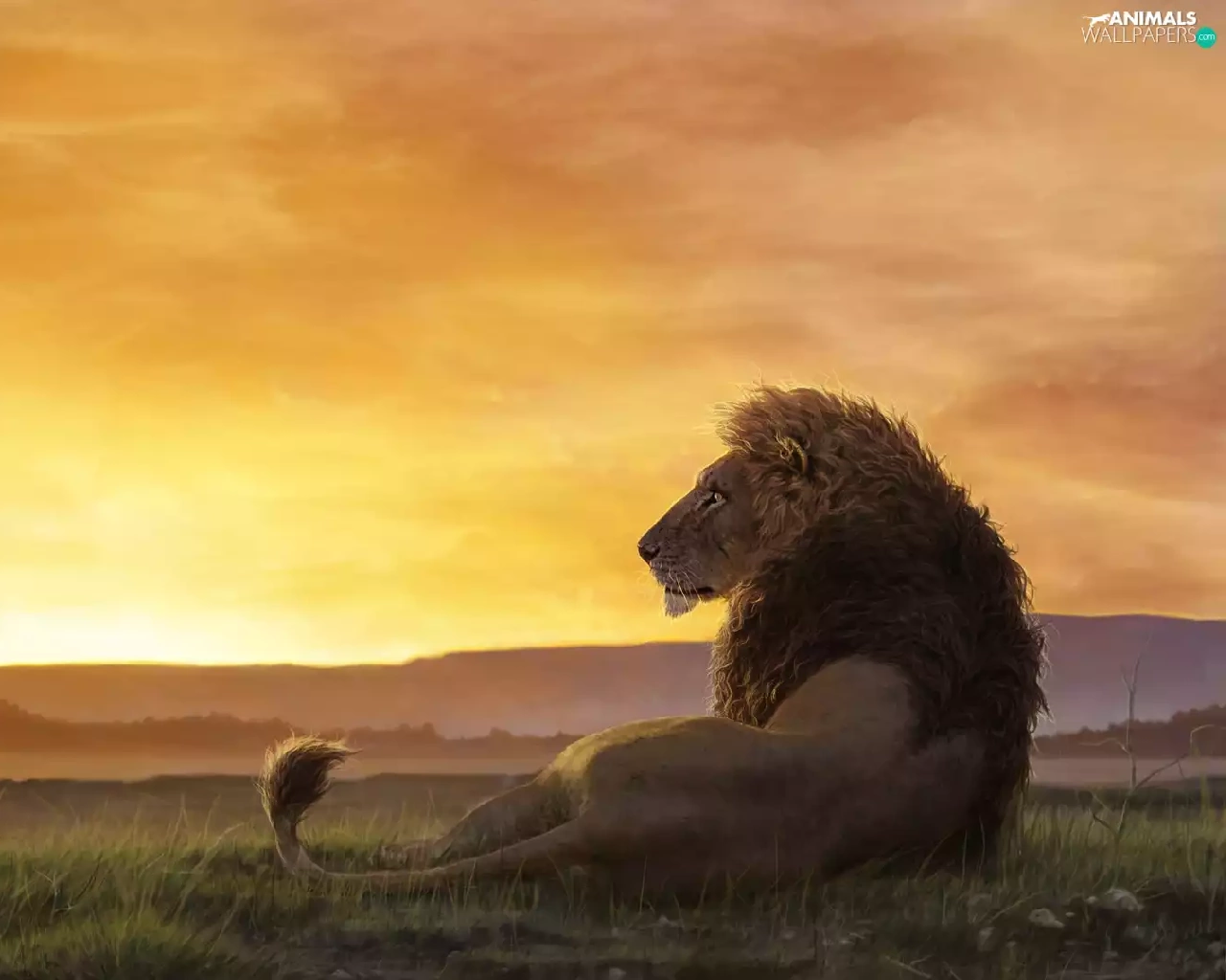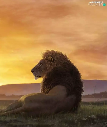 savanna, graphics, Lion