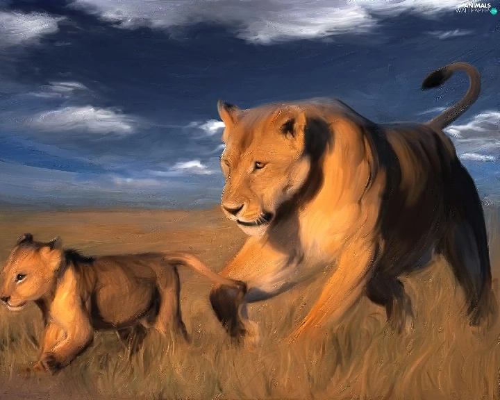 savanna, stretching, lions
