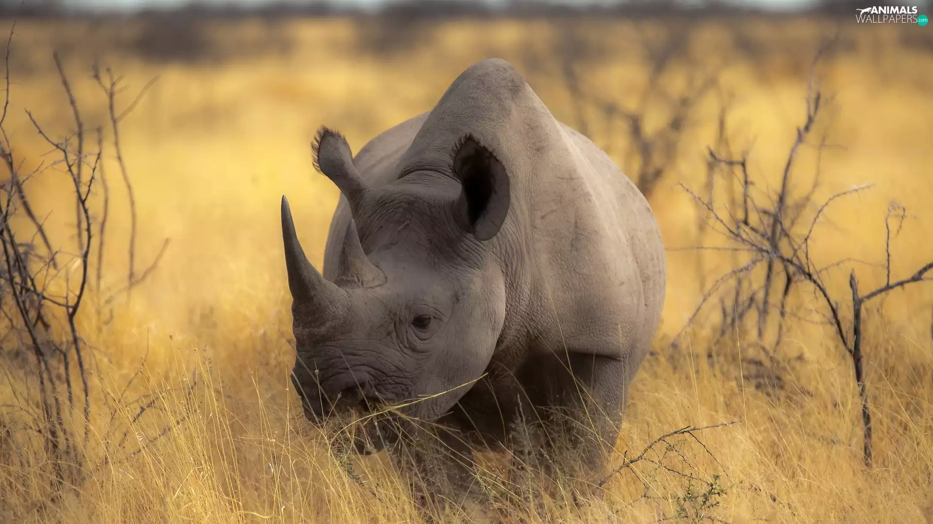 Rhino, fuzzy, background, savanna