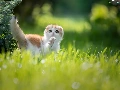 white and red, Scottish Fold, grass, cat