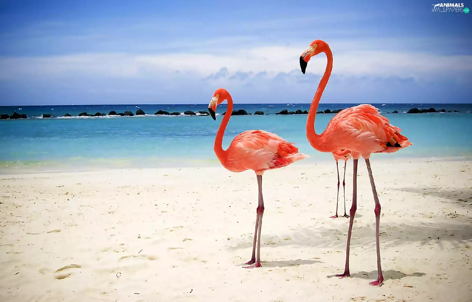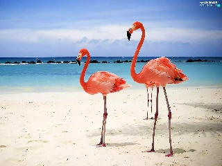 Beaches, Sky, Flamingos, sea