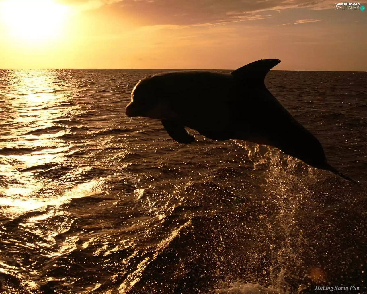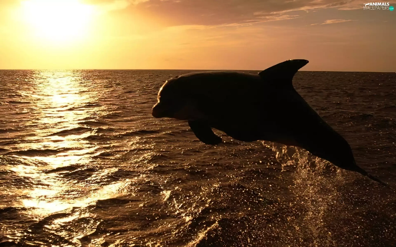 dolphin, Great Sunsets, sea