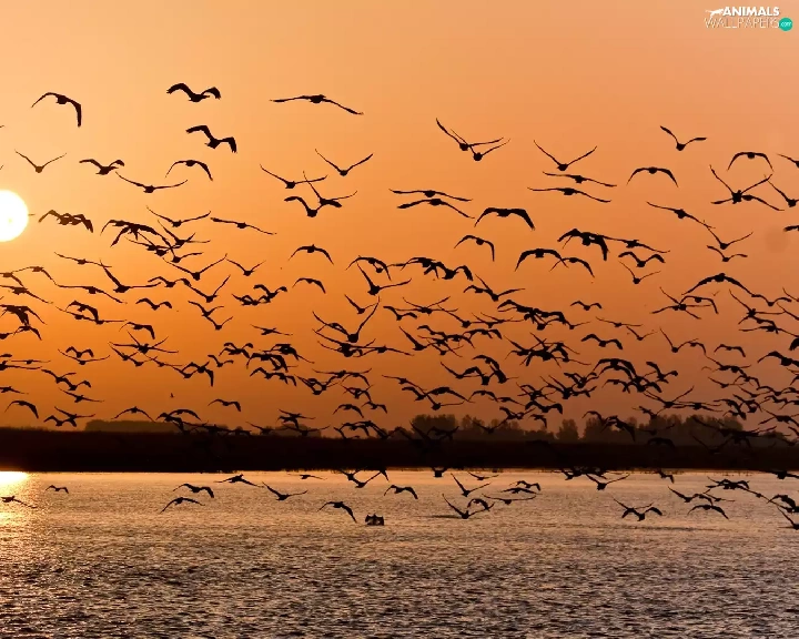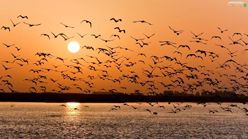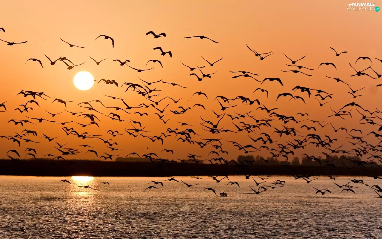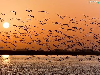 gulls, Great Sunsets, sea
