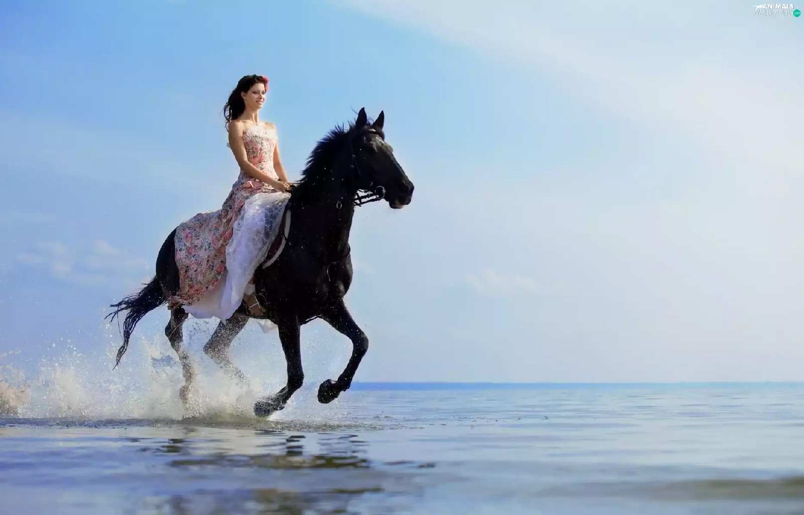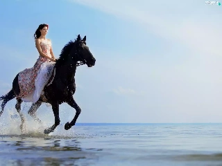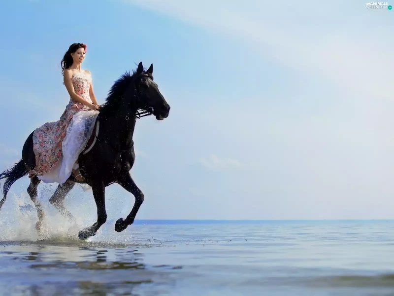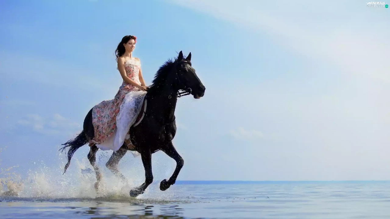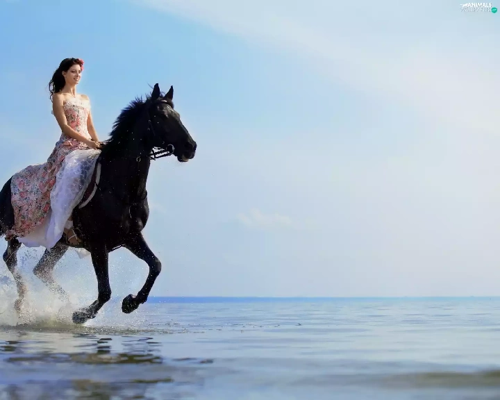sea, Women, Horse