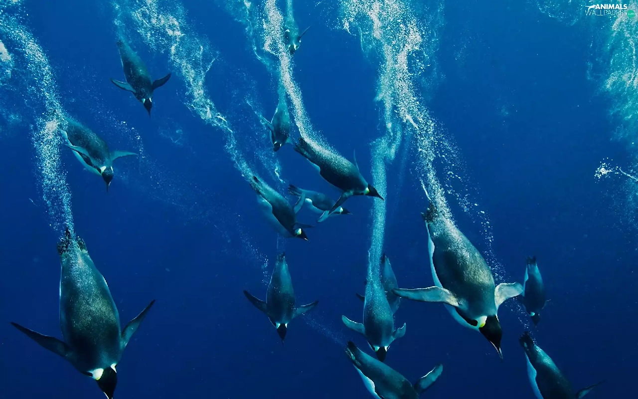 sea, diving, penguin