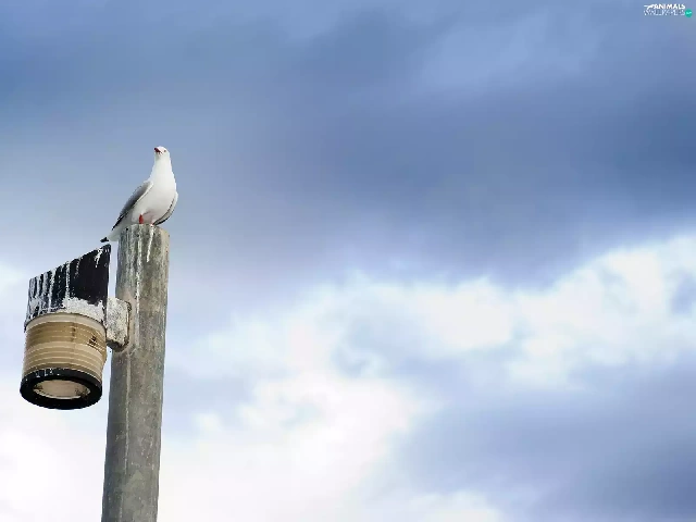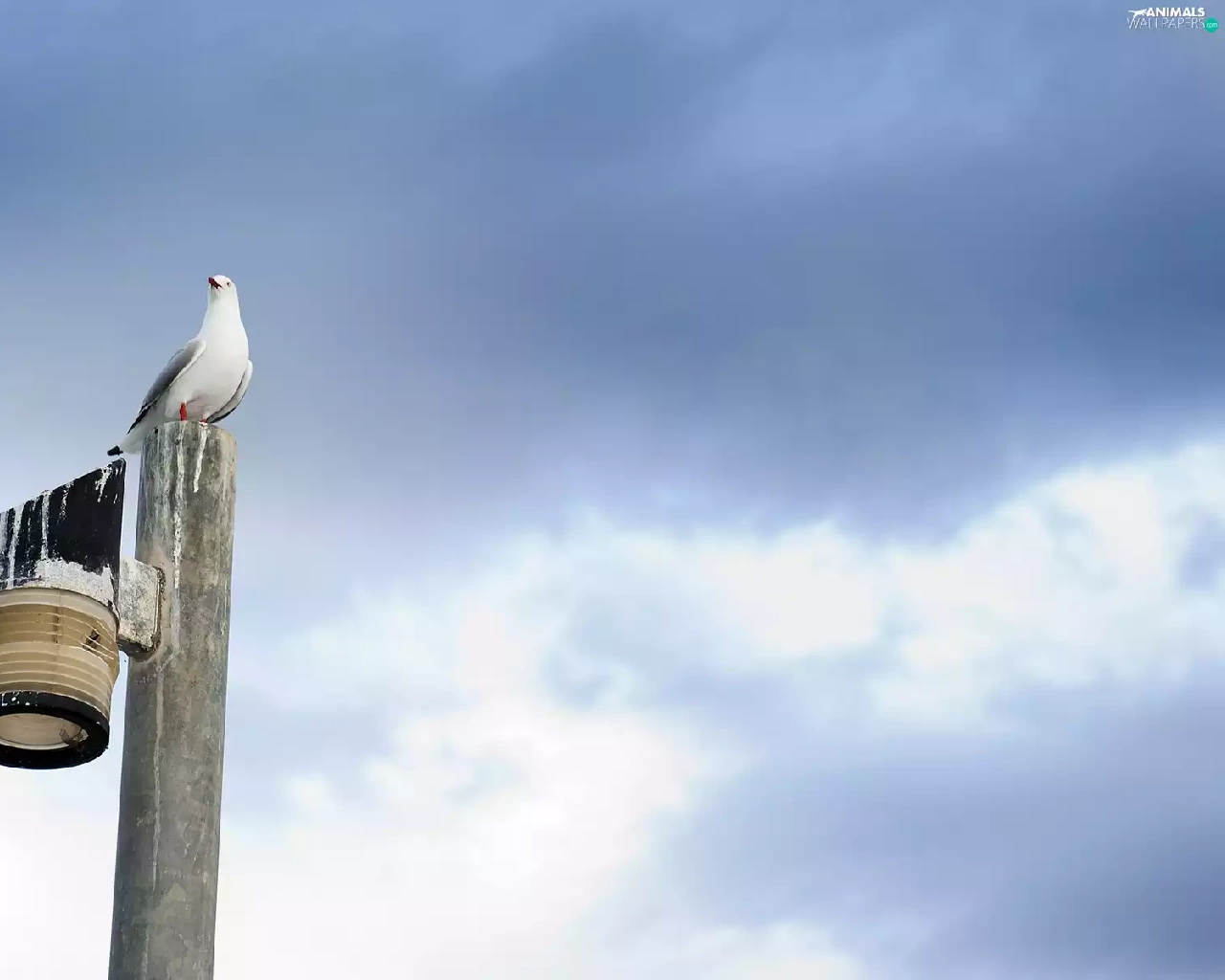 seagull, Sky, clouds