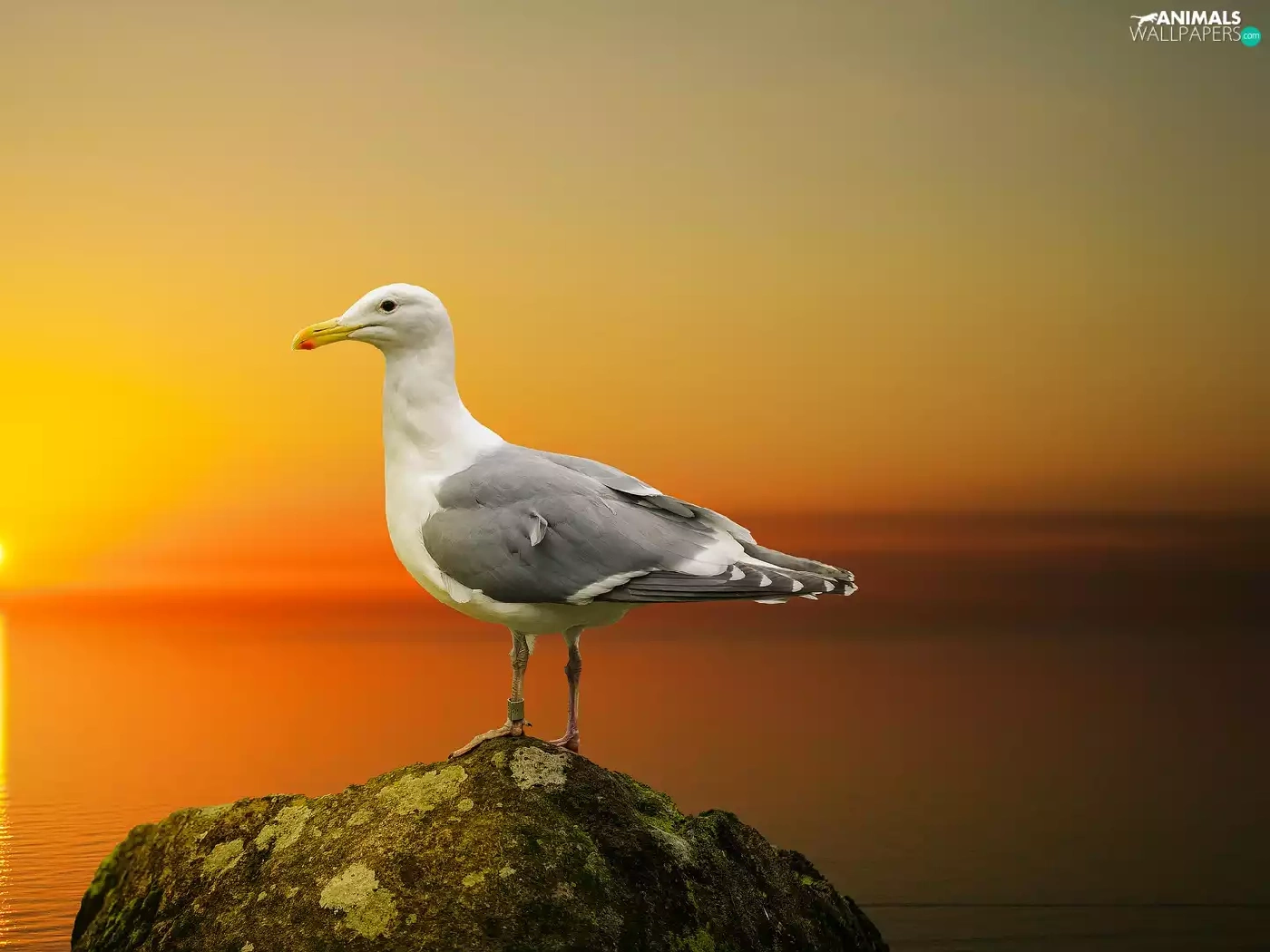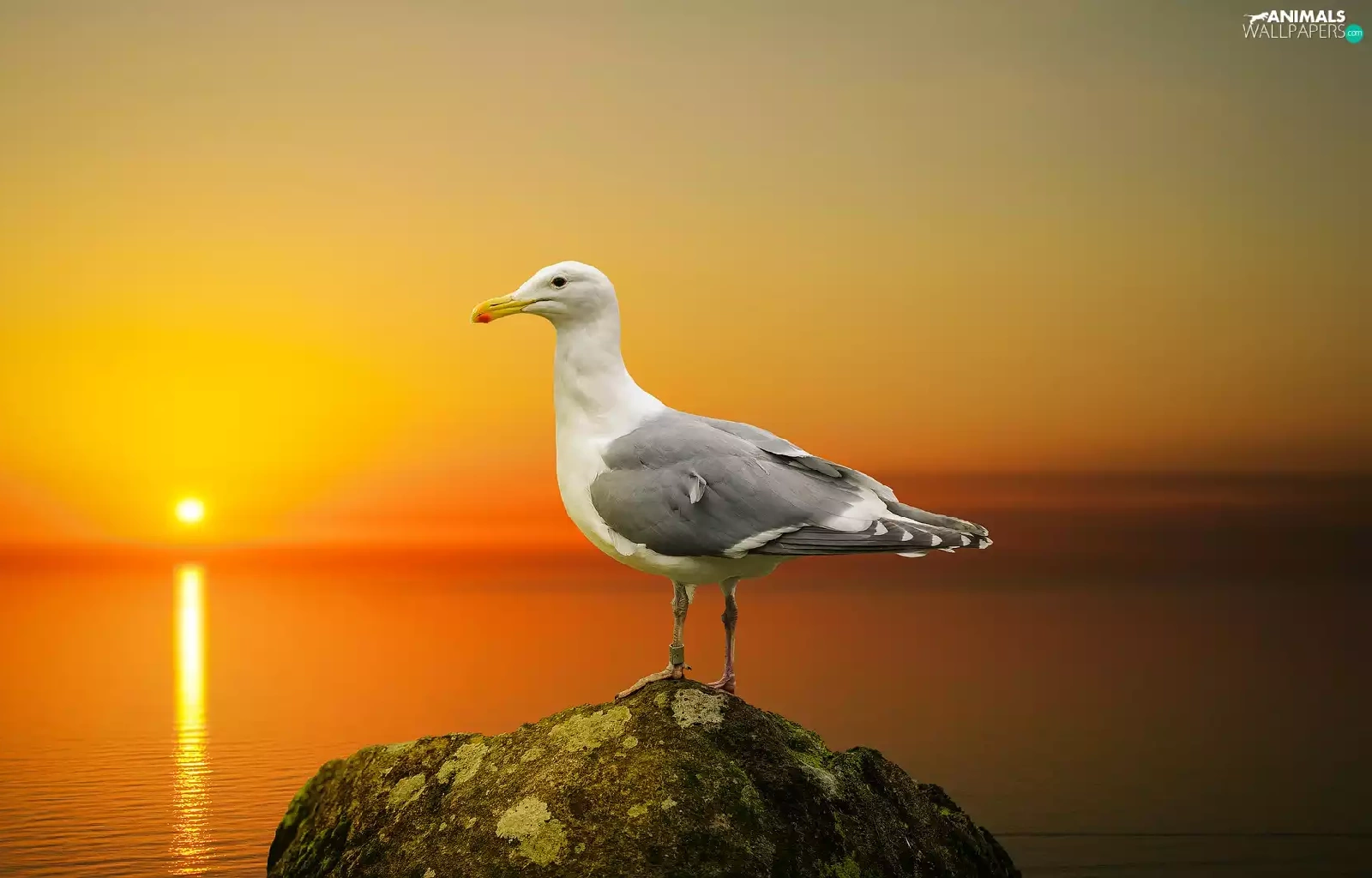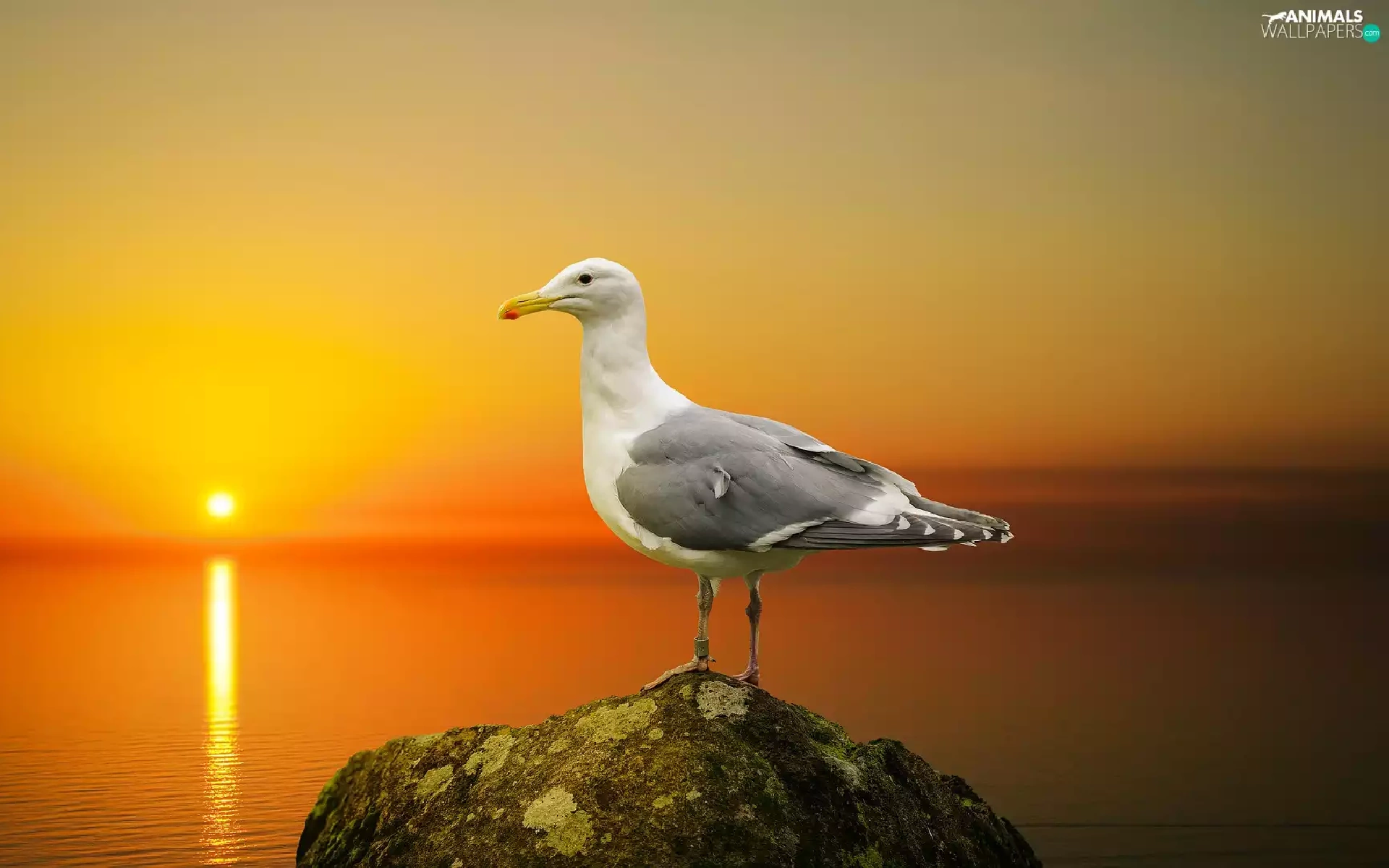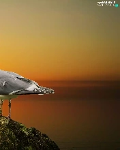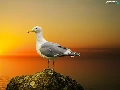 sea, seagull, Great Sunsets, Stone