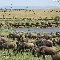 grass, Antelope, Migration, Serengeti, water, wildebeest