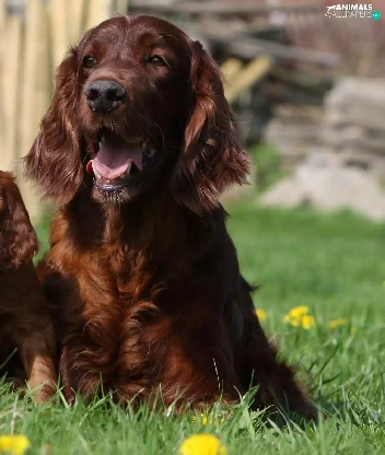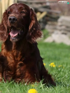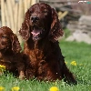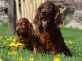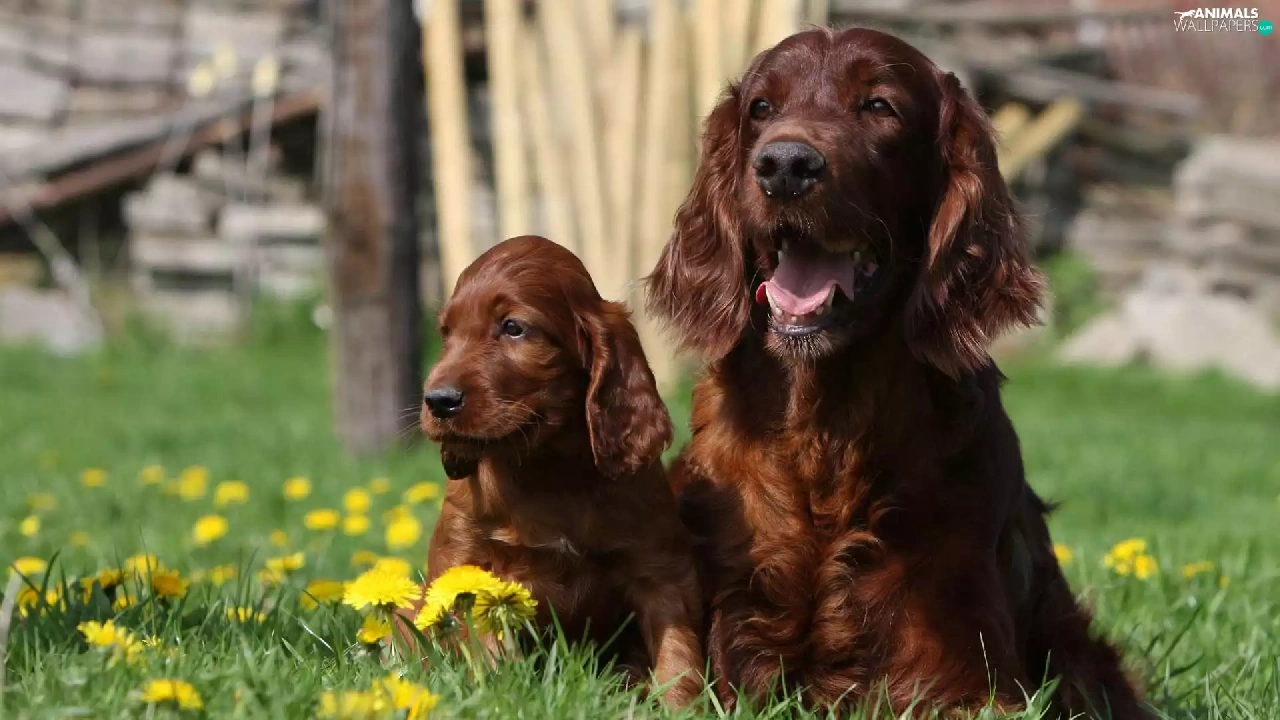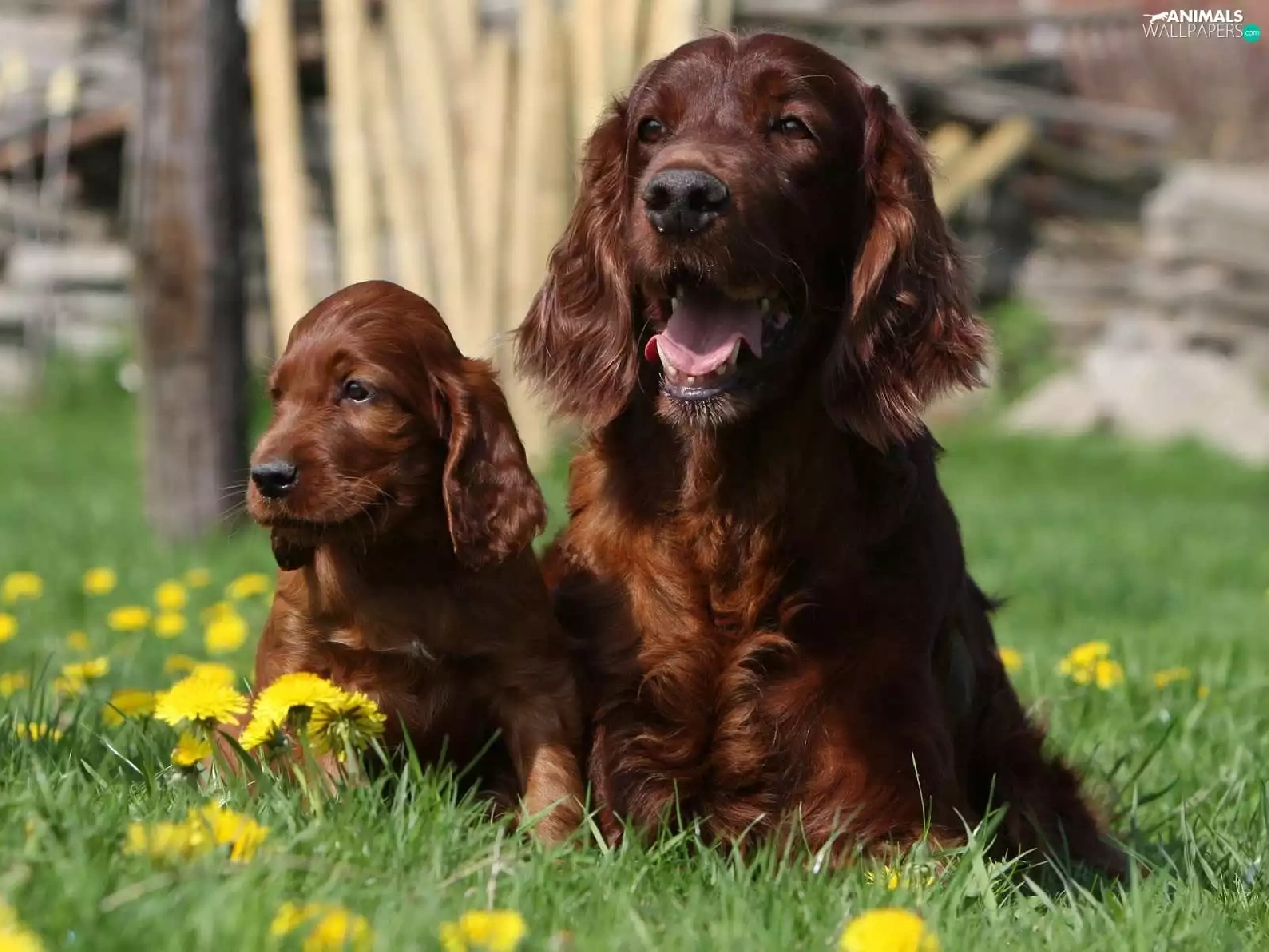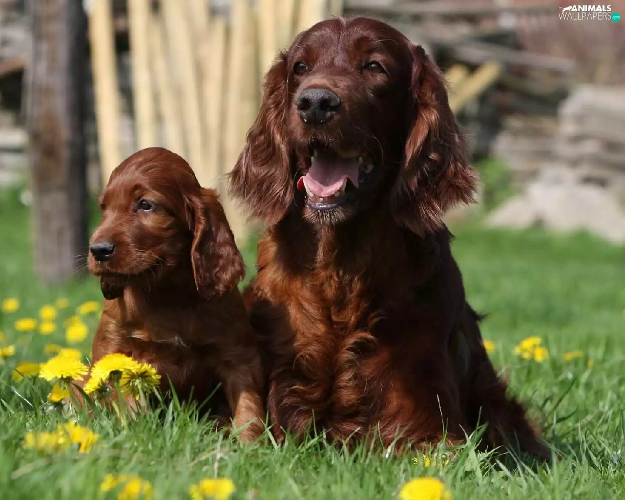 Setters, Dogs, grass, puppies, Two cars, Irish, sow-thistle