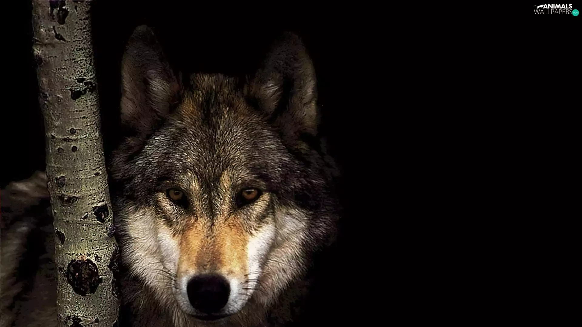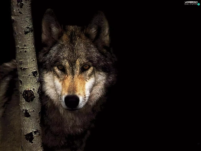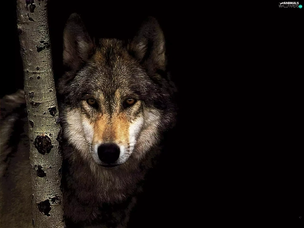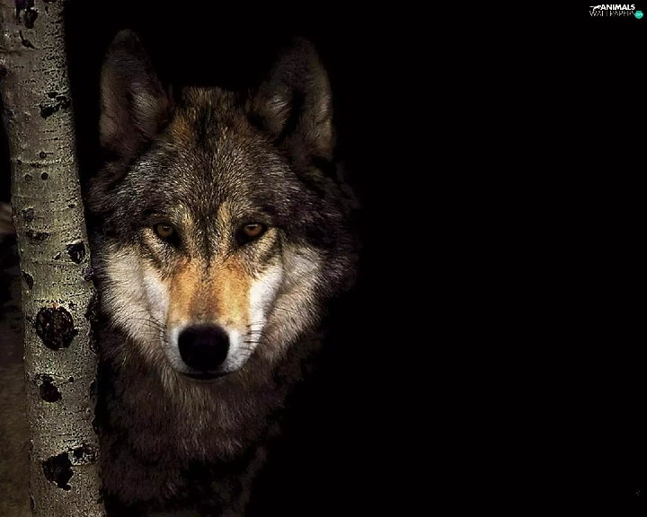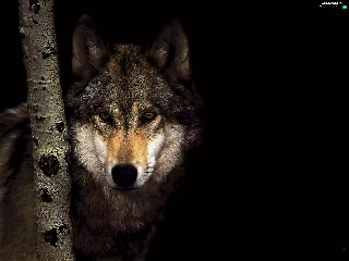 shadow, Wolf, trees